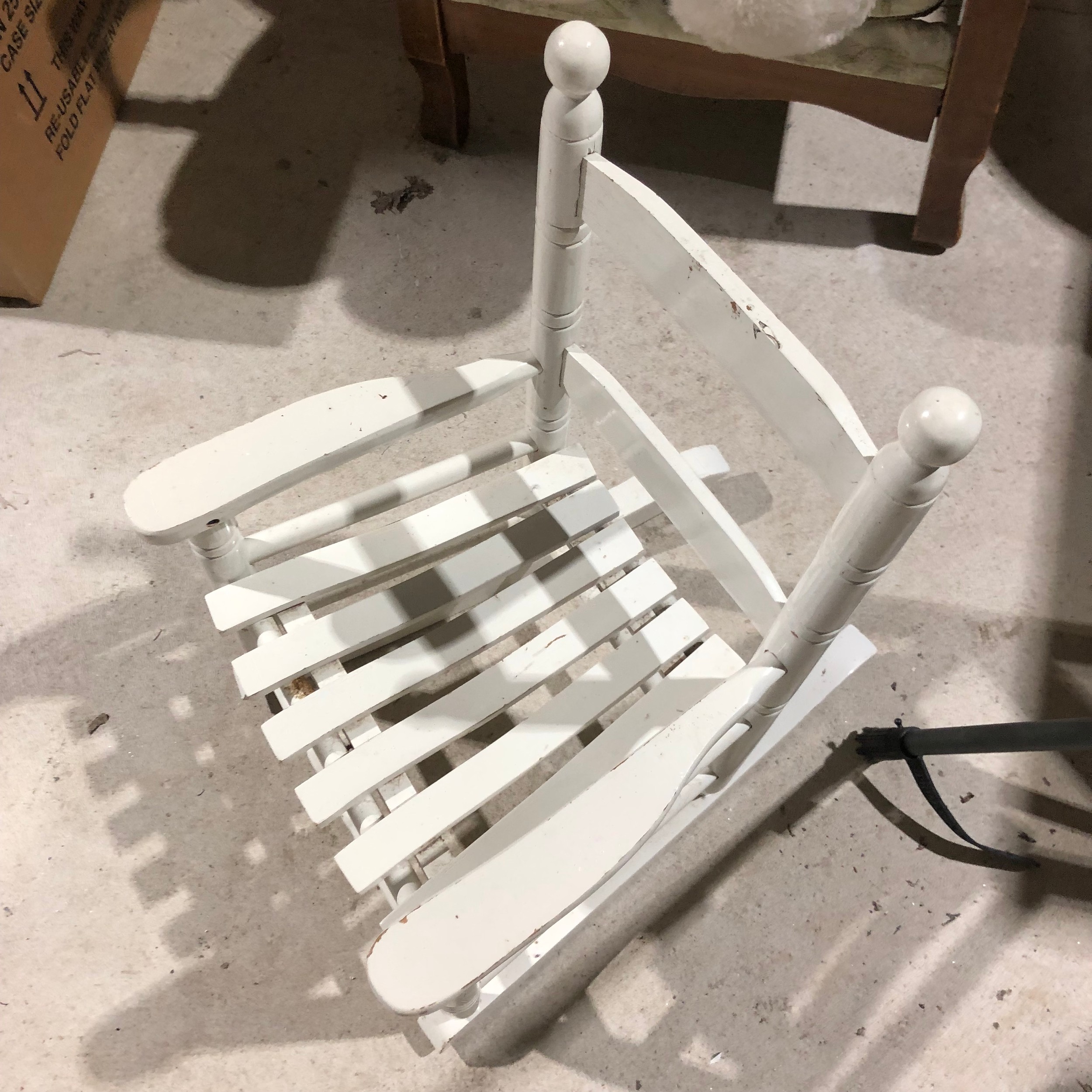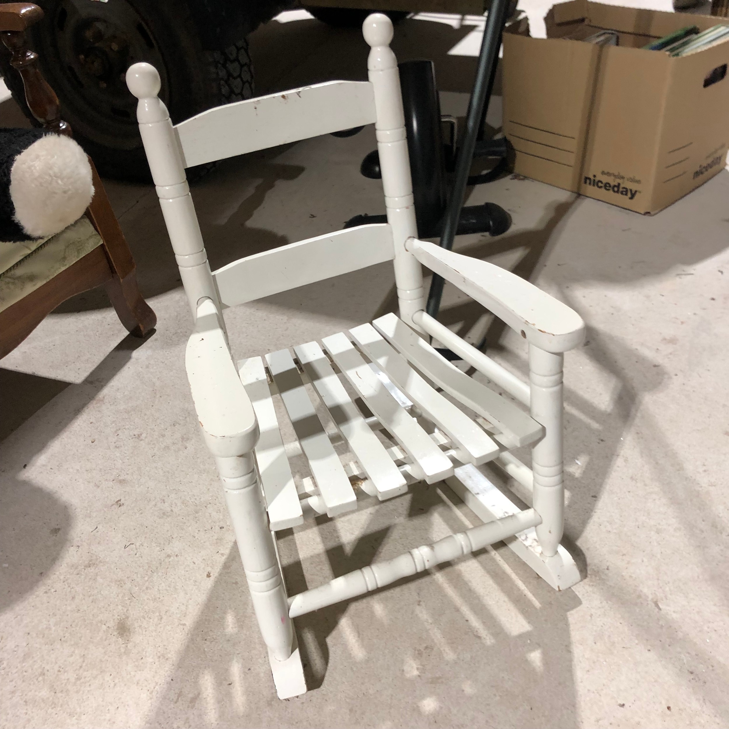 Childs wooden rocking chair painted white.