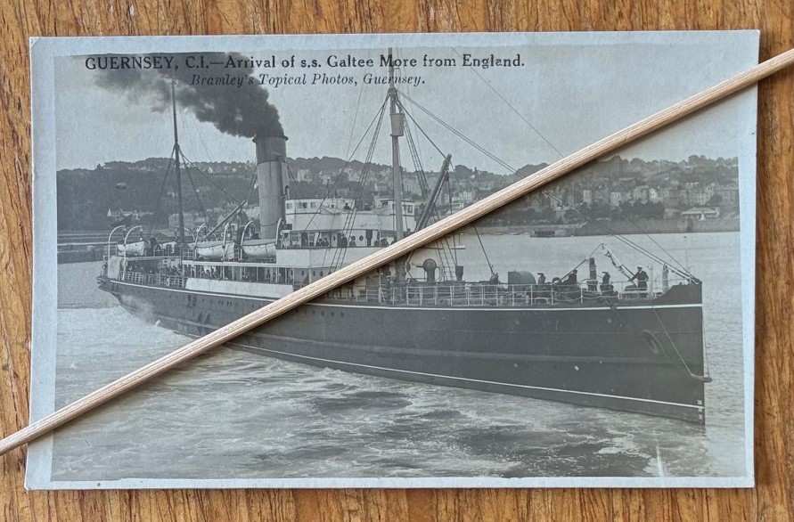 Real photographic postcard by Thomas Bramley Guernsey, Arrival of the Galtee More.