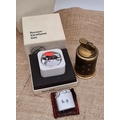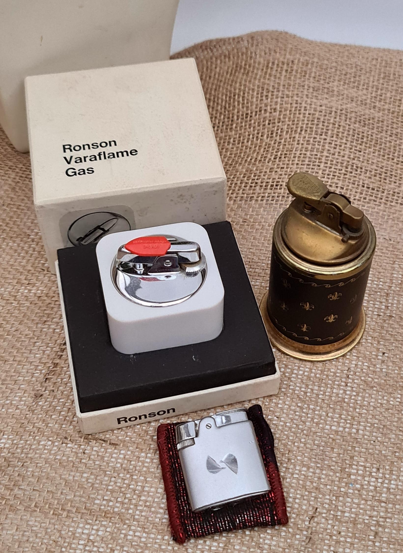 Vintage 3 x Assorted Lighters Includes a Boxed Ronson Varaflame Gas Quadrille Table Lighter, A Ronson Pocket Lighter and Another Lighter. Shipping is available. Please ask for a quote before bidding. Where possible we combine shipping costs. Remember, if you are the highest bidder above reserve on this Lot you have bought the item and are legally responsible for the item. Viewing is recommended in either person or via video link. Contact us to arrange.