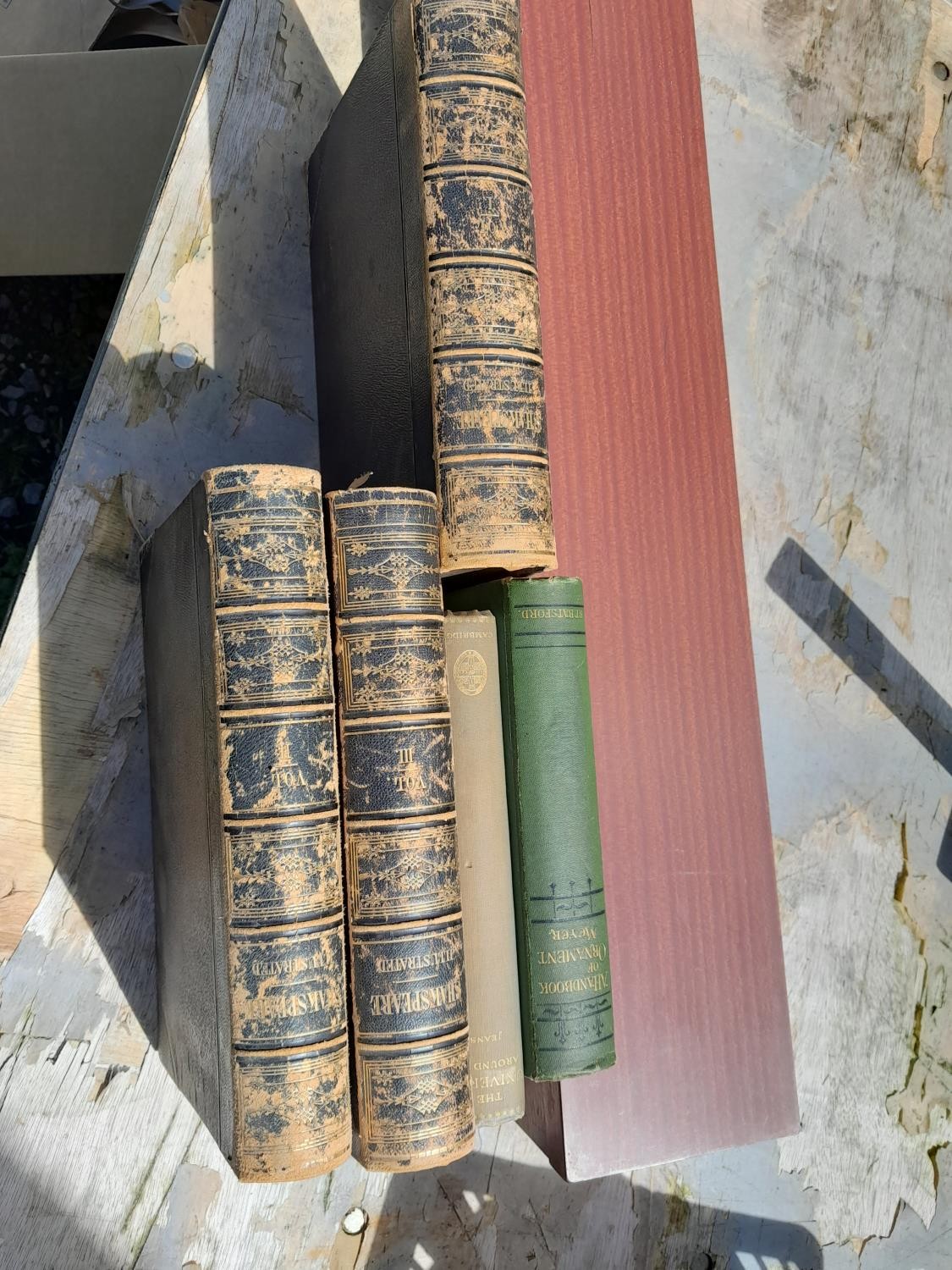 3 x volumes of Shakespeare, other volumes and boxed tripod