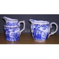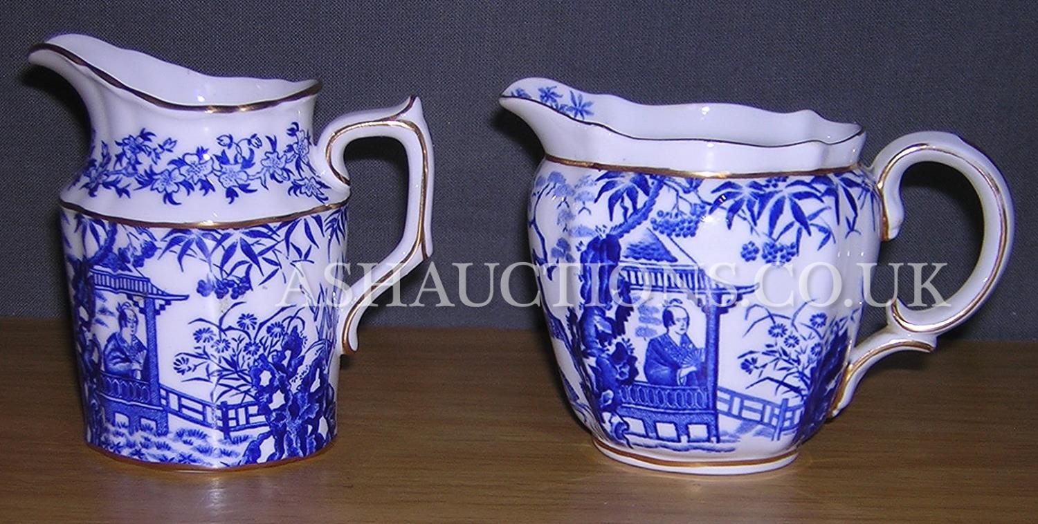 ROYAL CROWN DERBY CHINA CREAM JUGS (2) IN THE BLUE MIKADO DESIGN