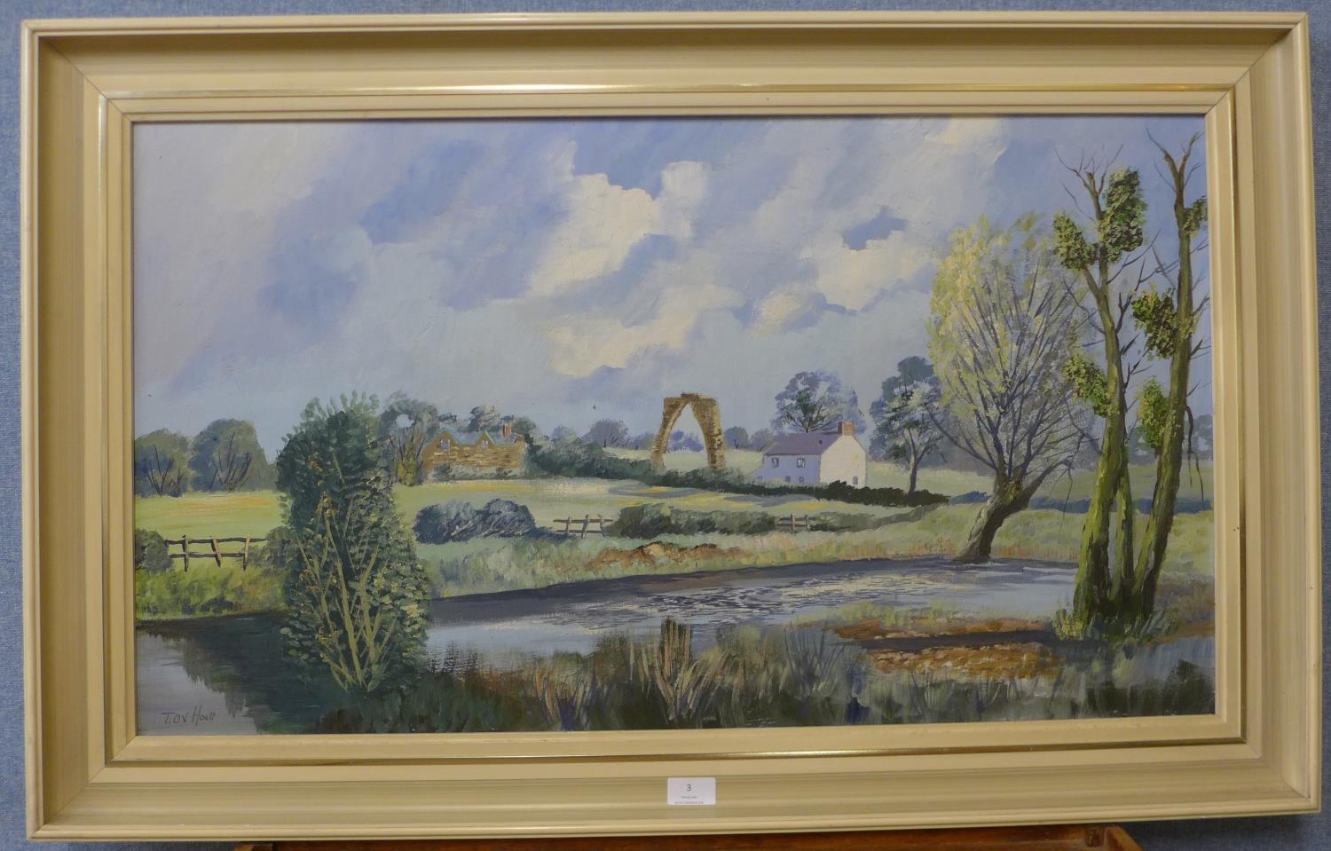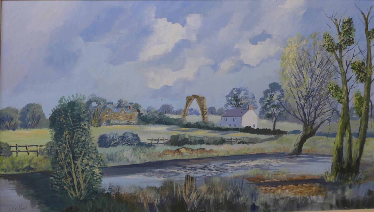 T.O.V. Hoult, rural landscape, oil on board 49 x 87cms