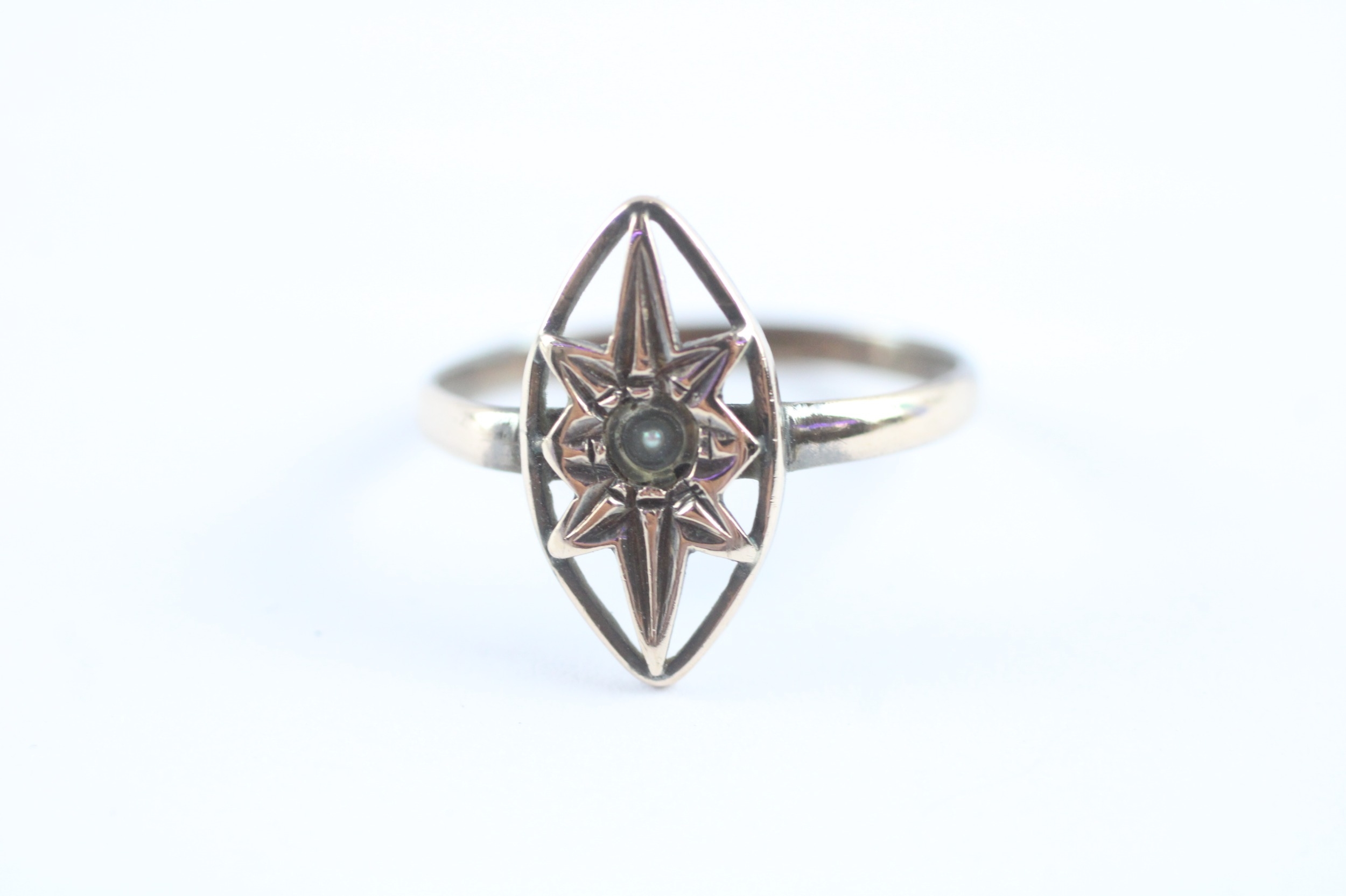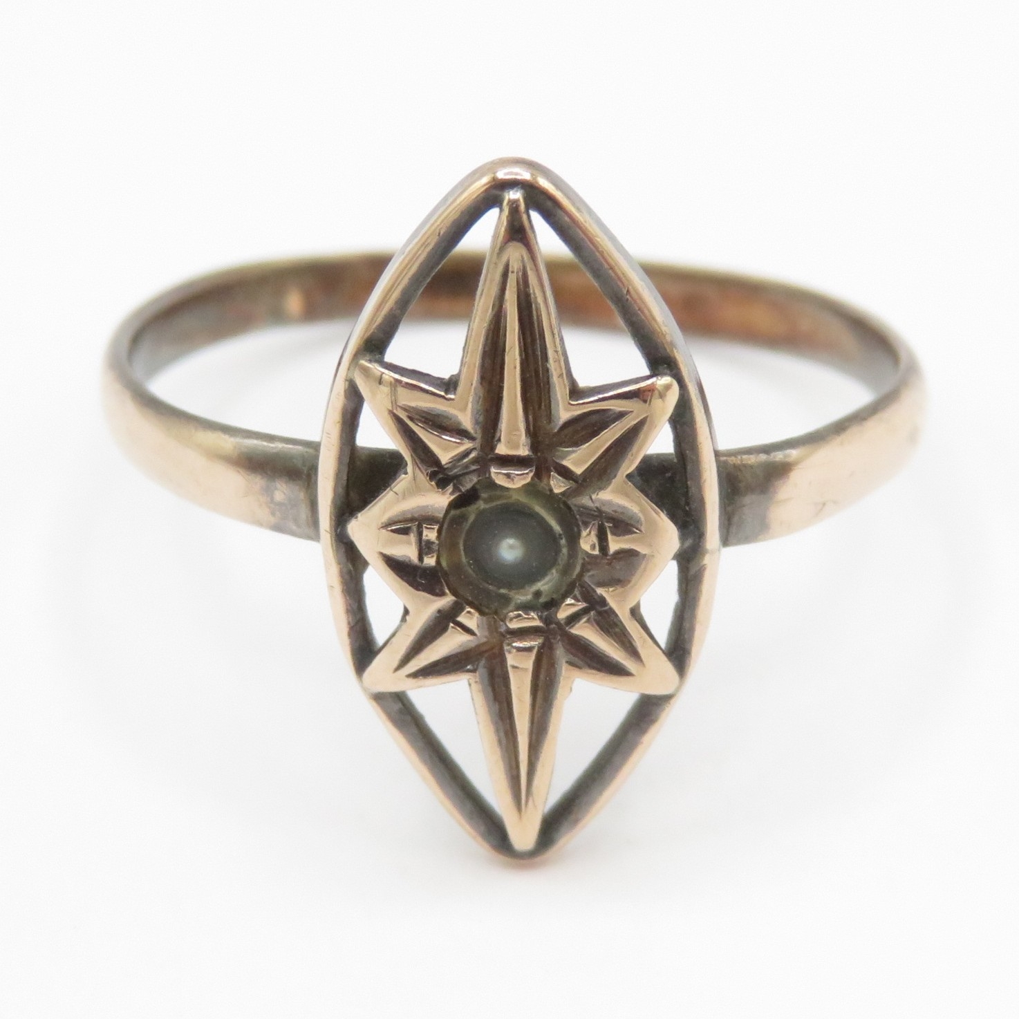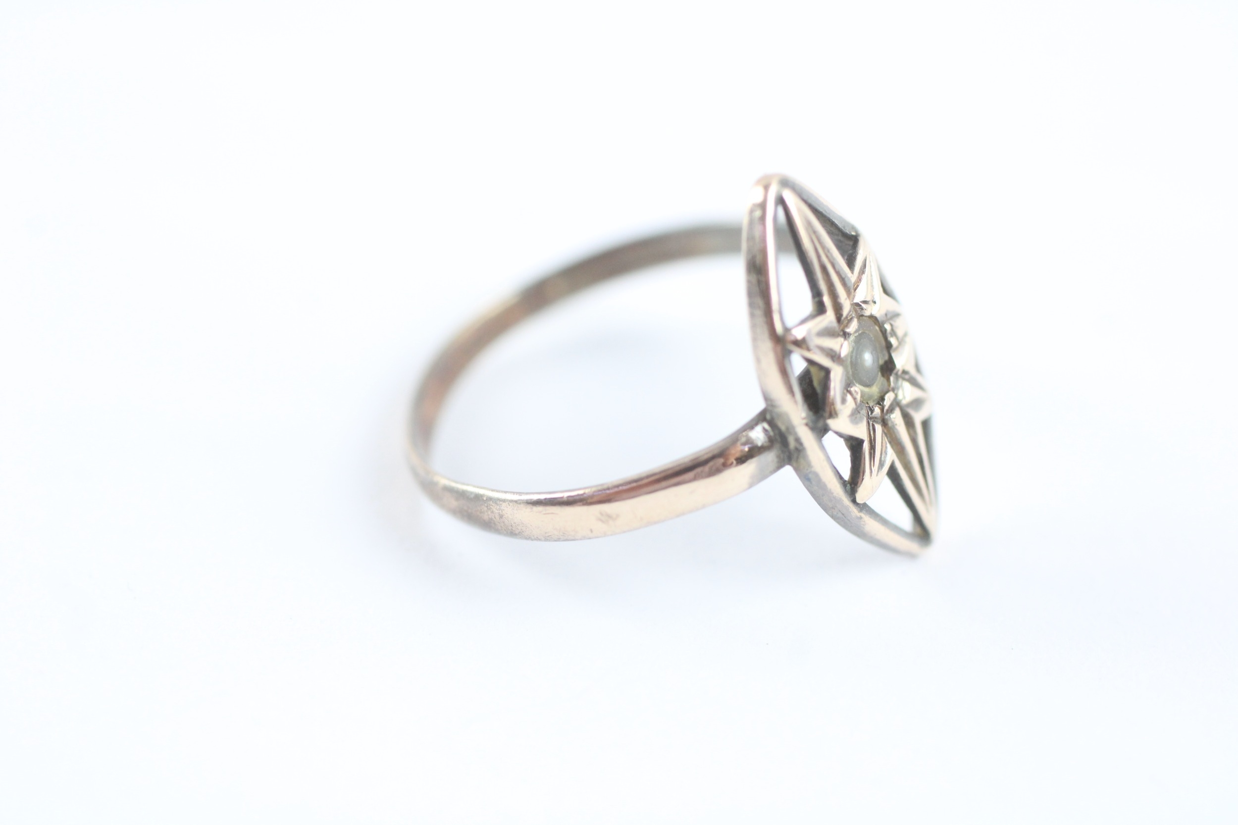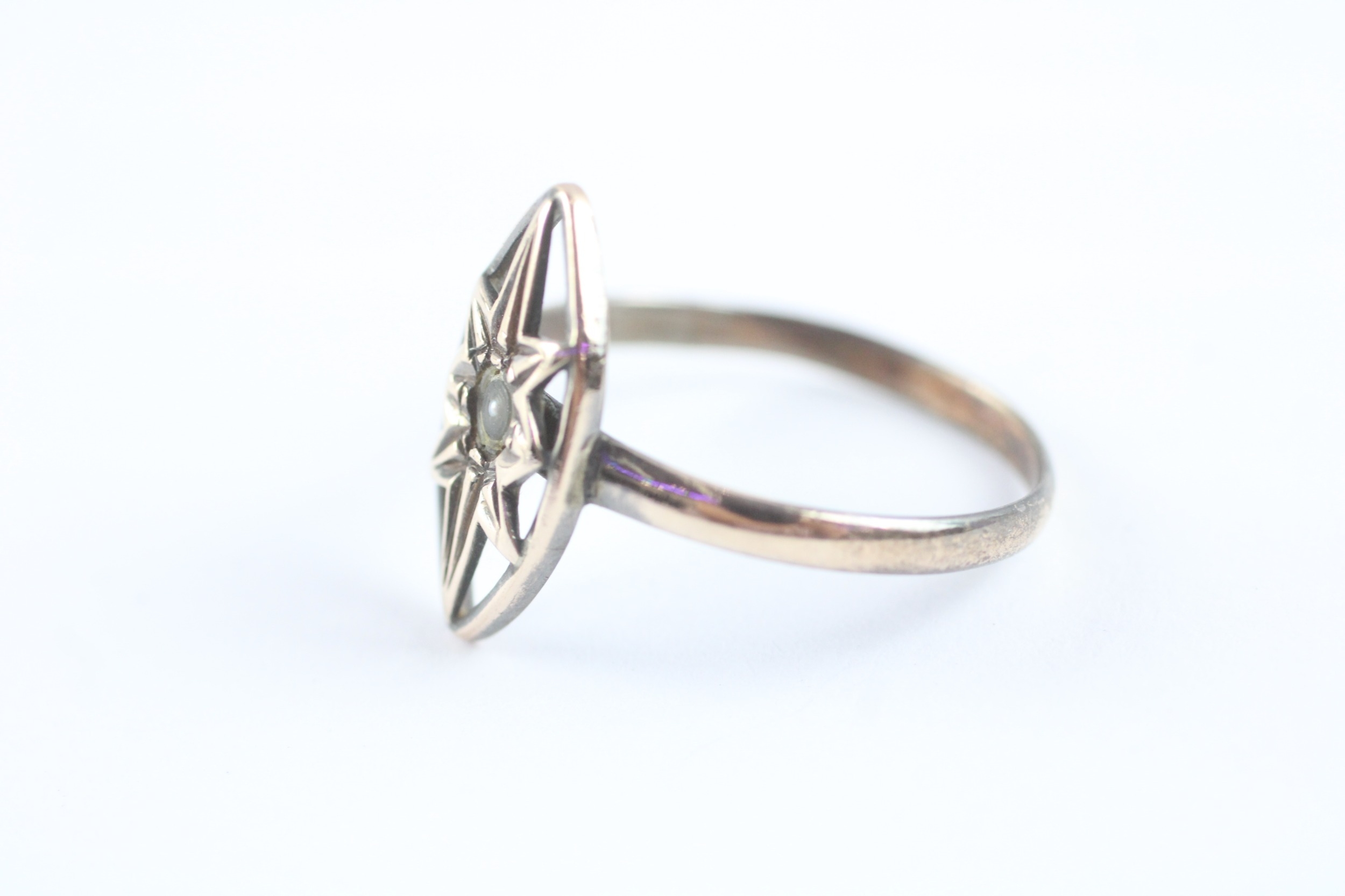 9ct gold antique split pearl ring (1.5g) Size N