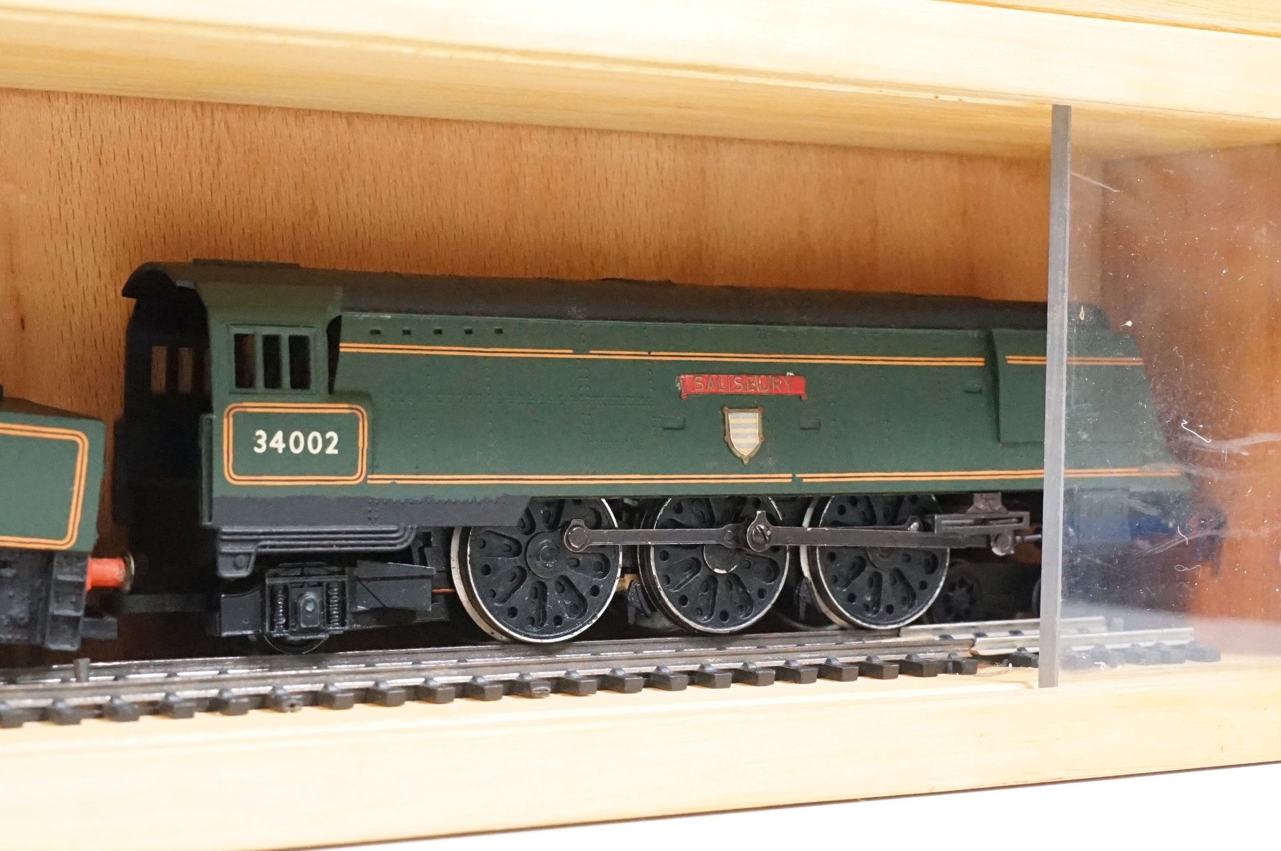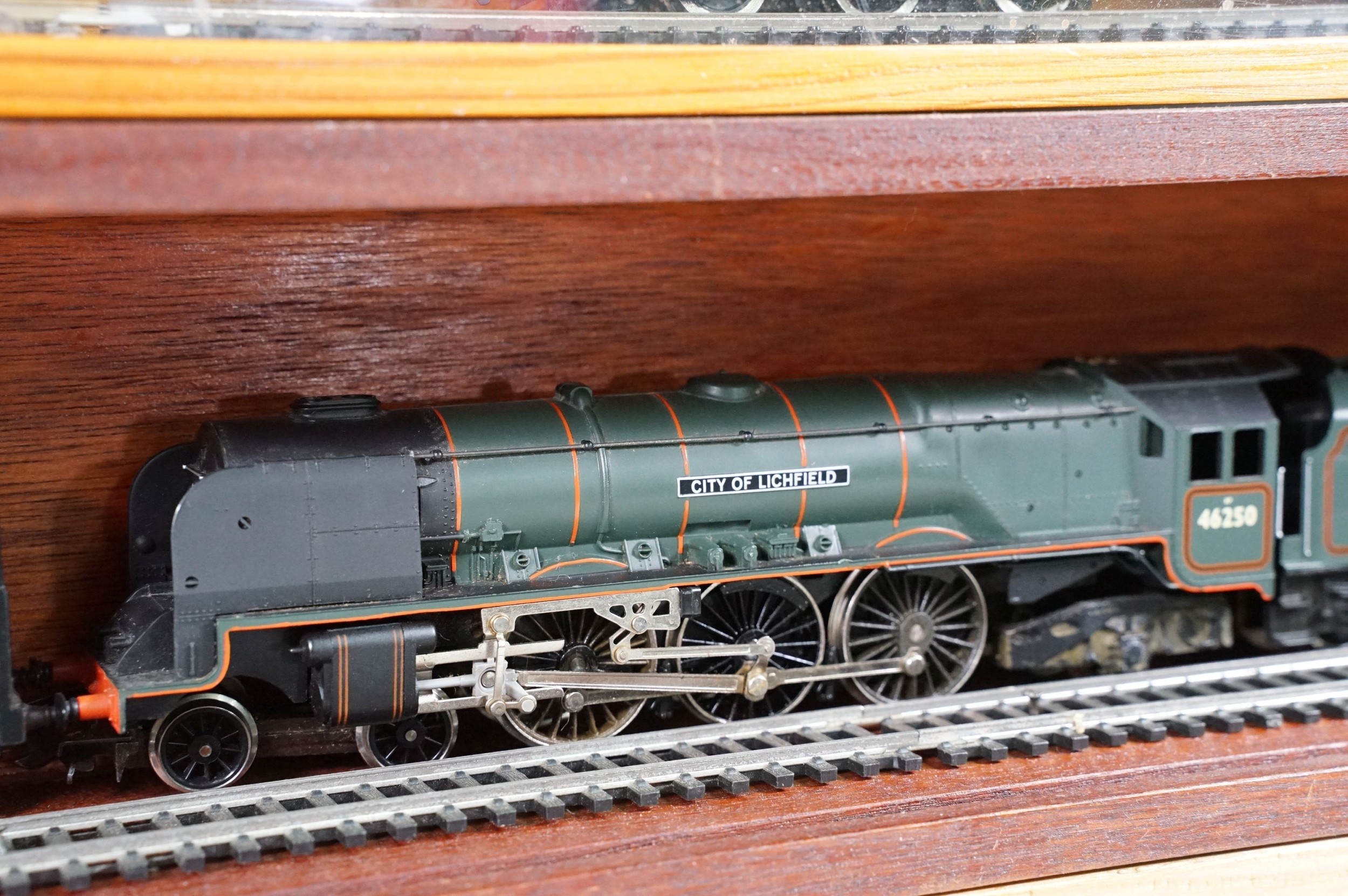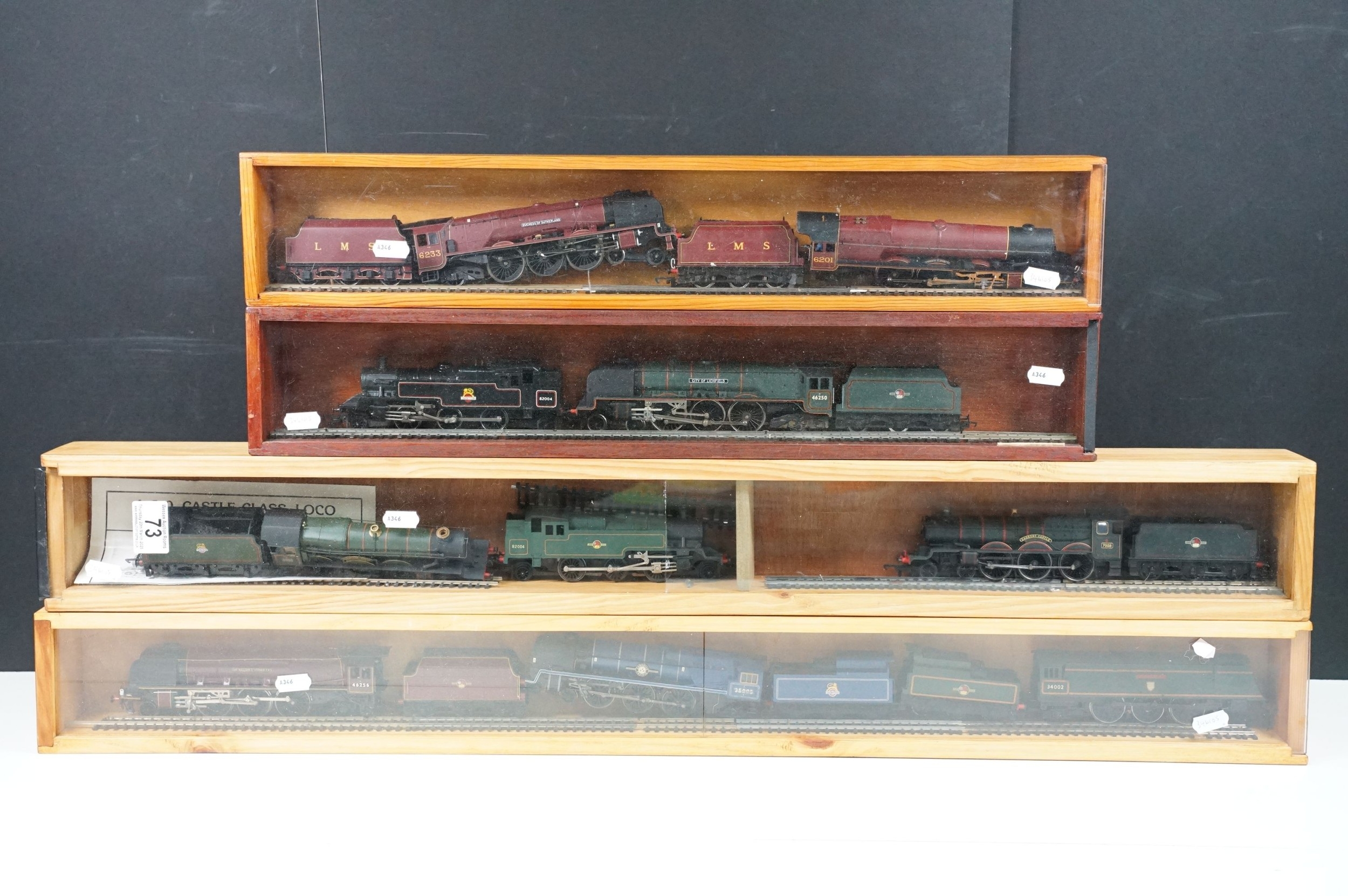 10 OO gauge locomotives to include Dapol Dorchester Castle, Hornby Cadbury Castle, Hornby City of Lichfield, Triang R59 82004, Hornby Duchess of Sutherland, Hornby Sir William A Stanier FRS, Hornby Canadian Pacific 35005, Hornby Princess Elizabeth and Hornby Salisbury, contained within 4 x display boxes