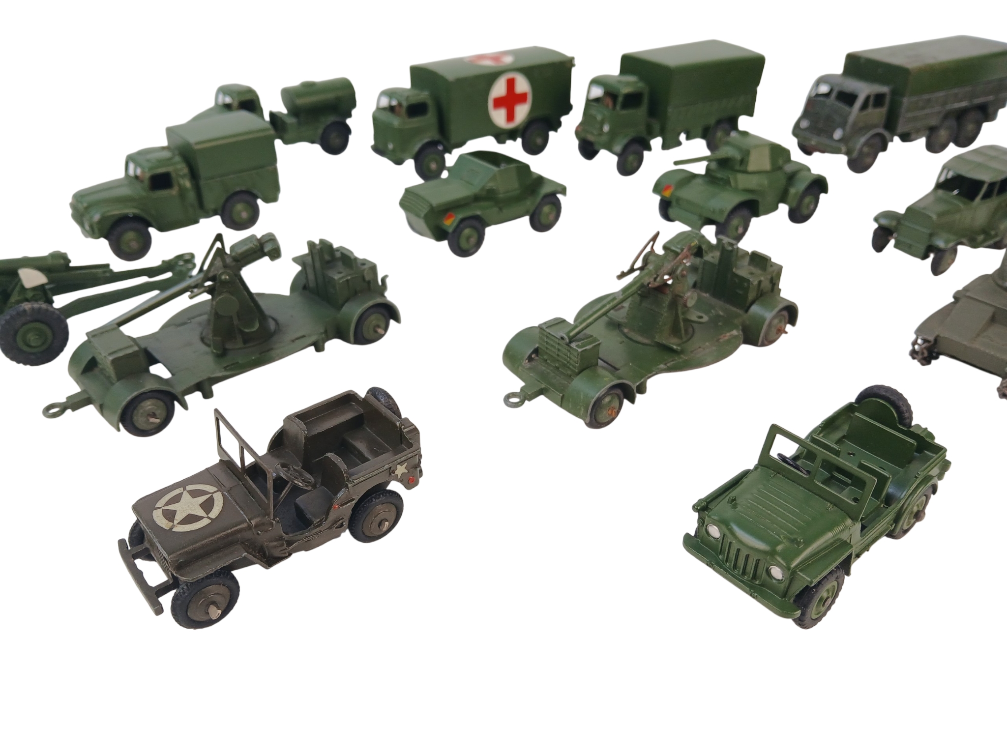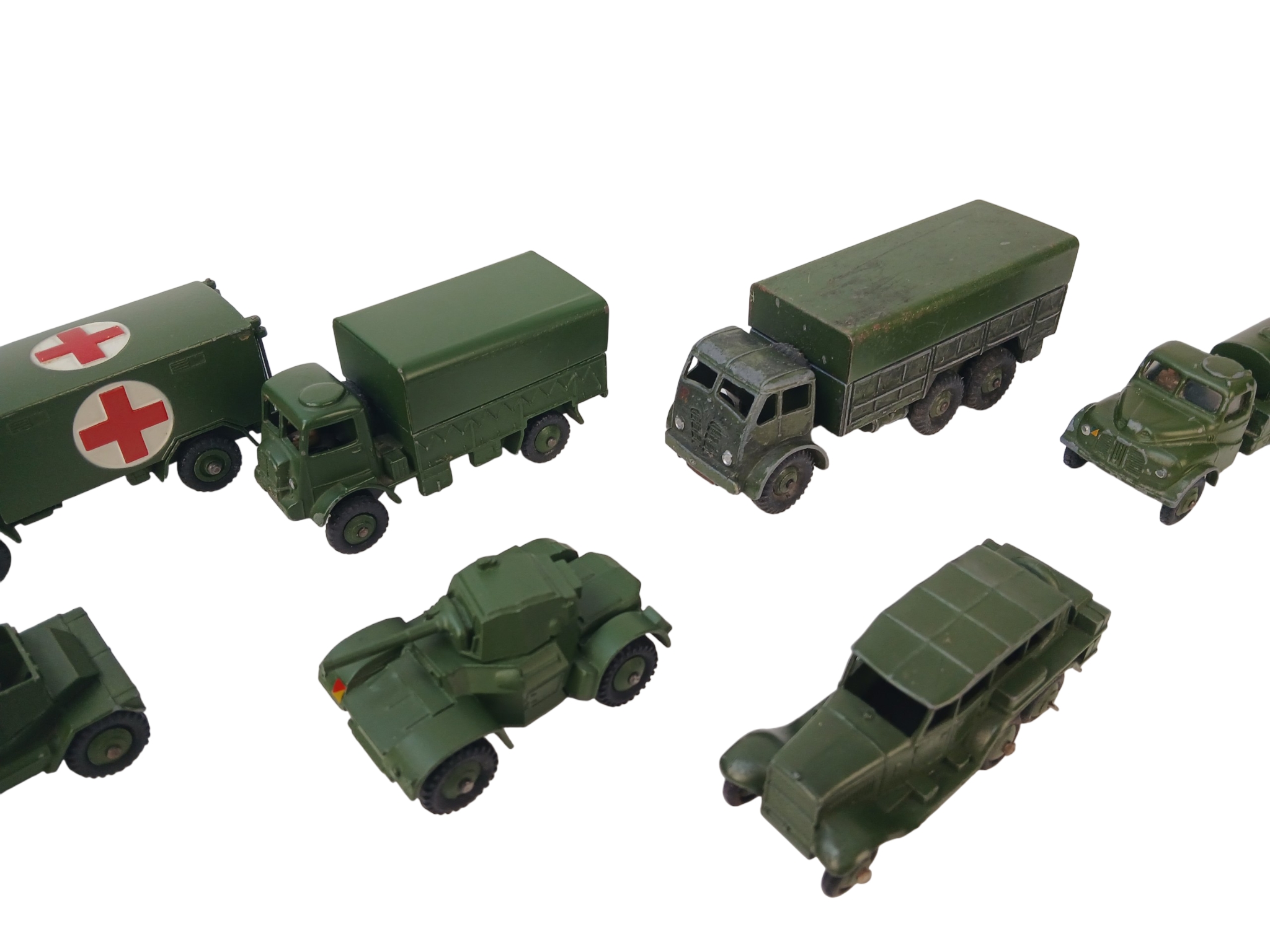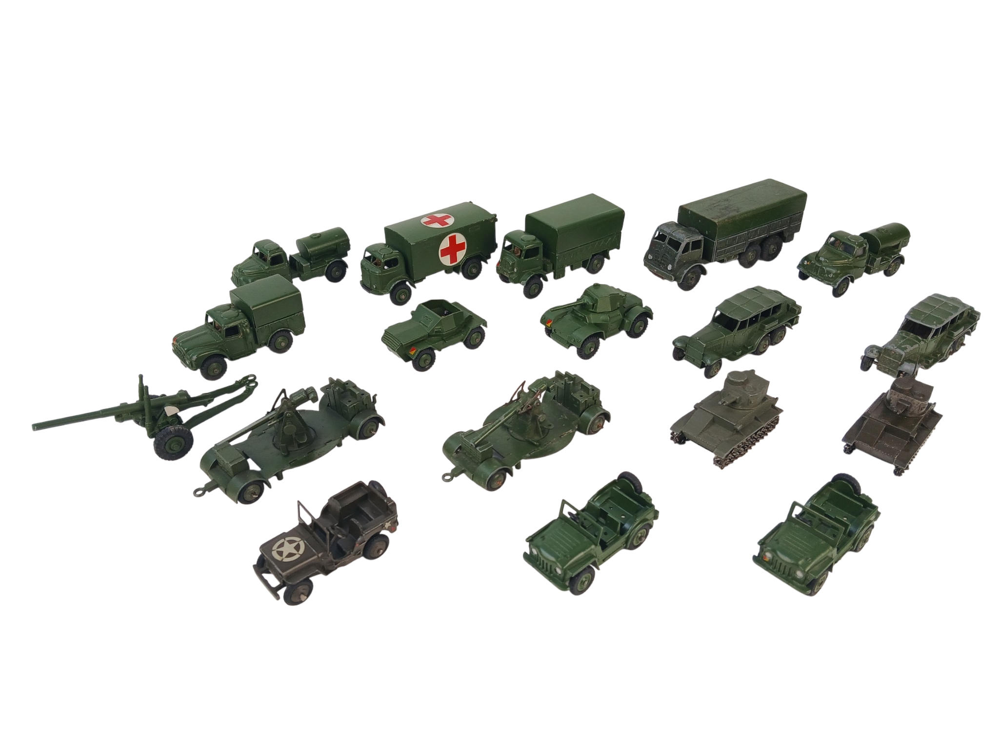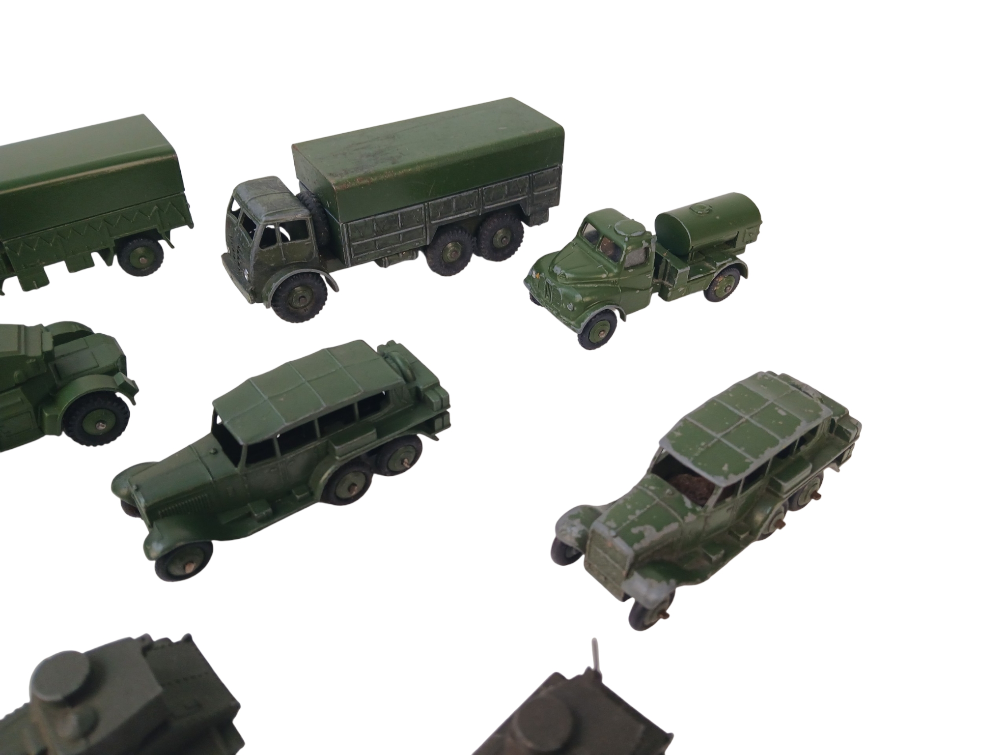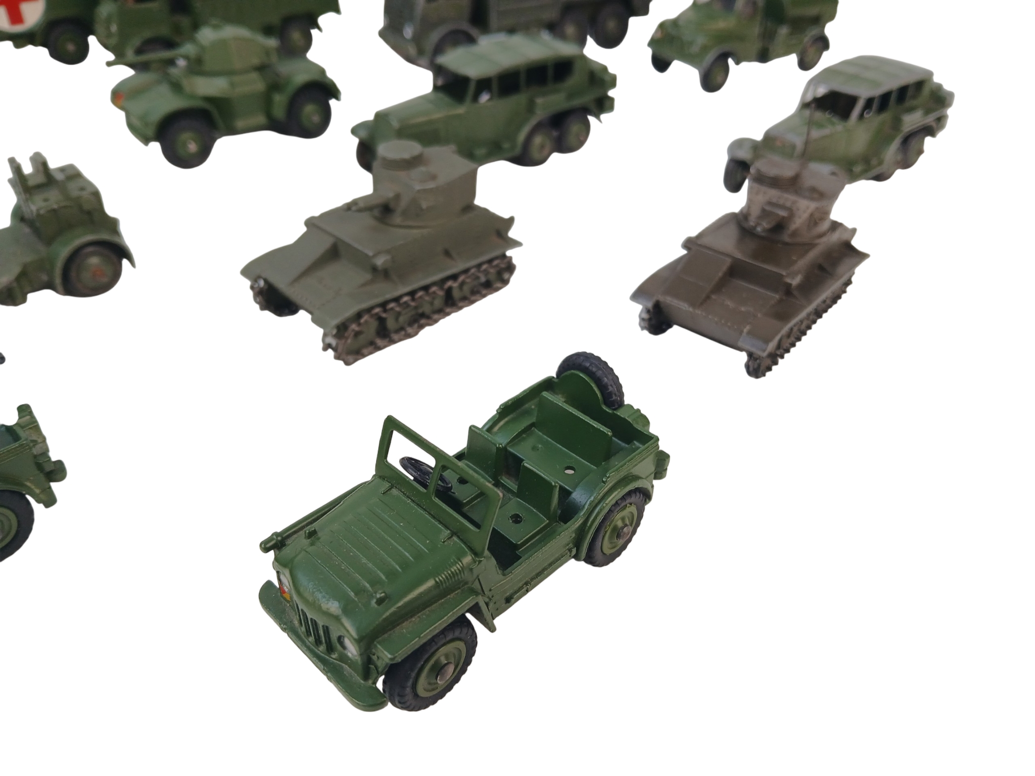 Quantity of Unboxed Dinky Toys Diecast Military Vehicles including 152A Light Tank and 152B Reconnaissance Car