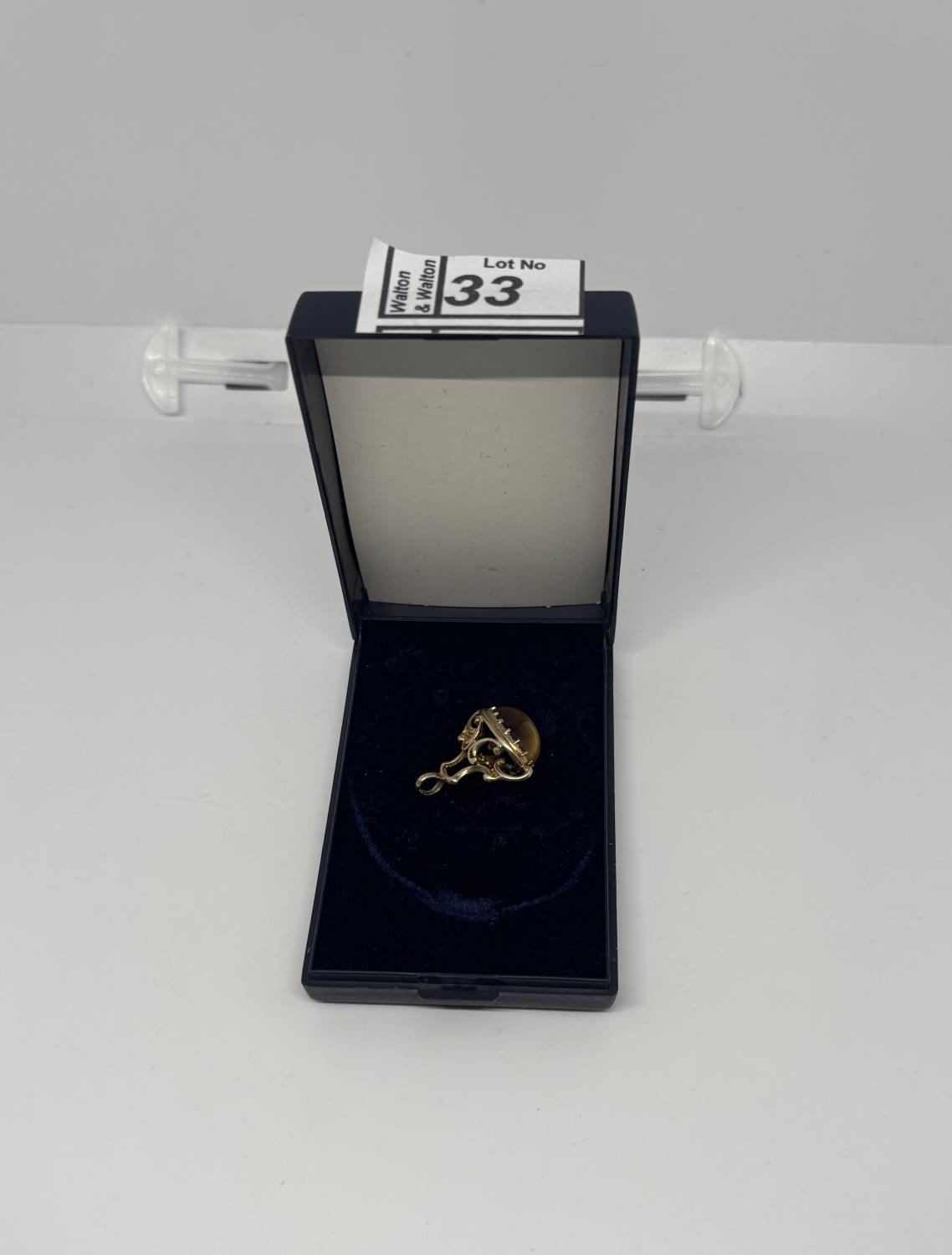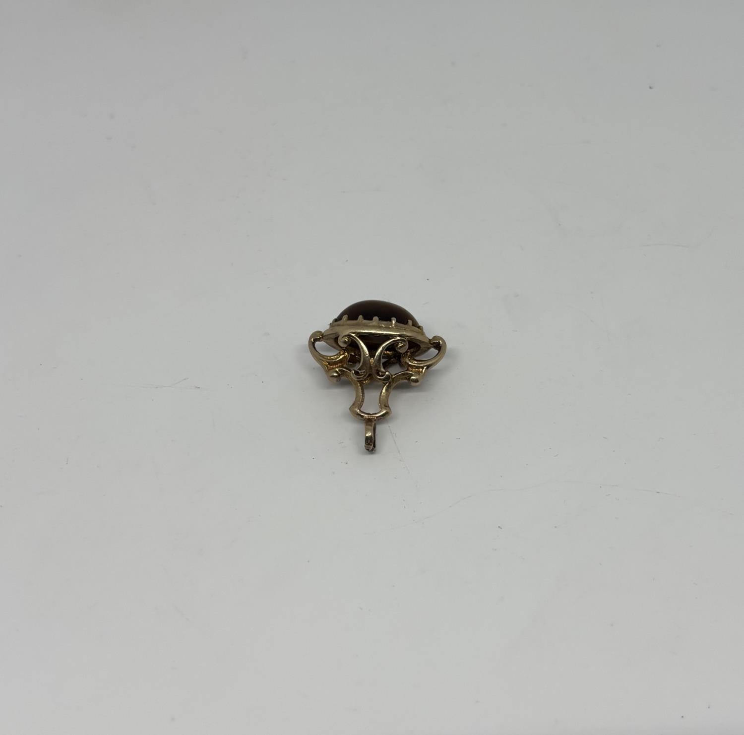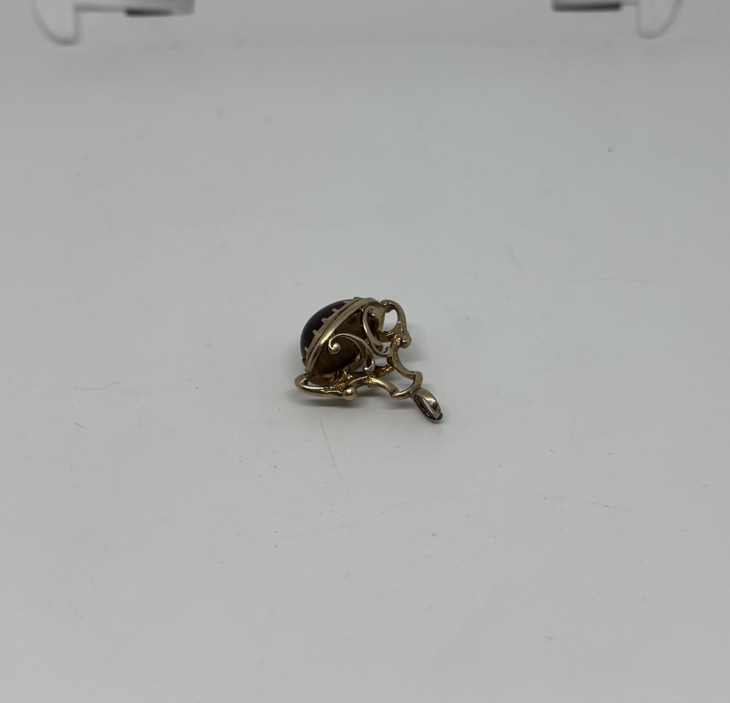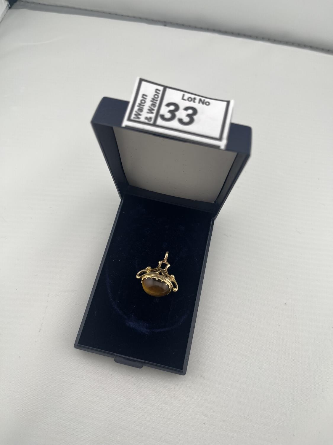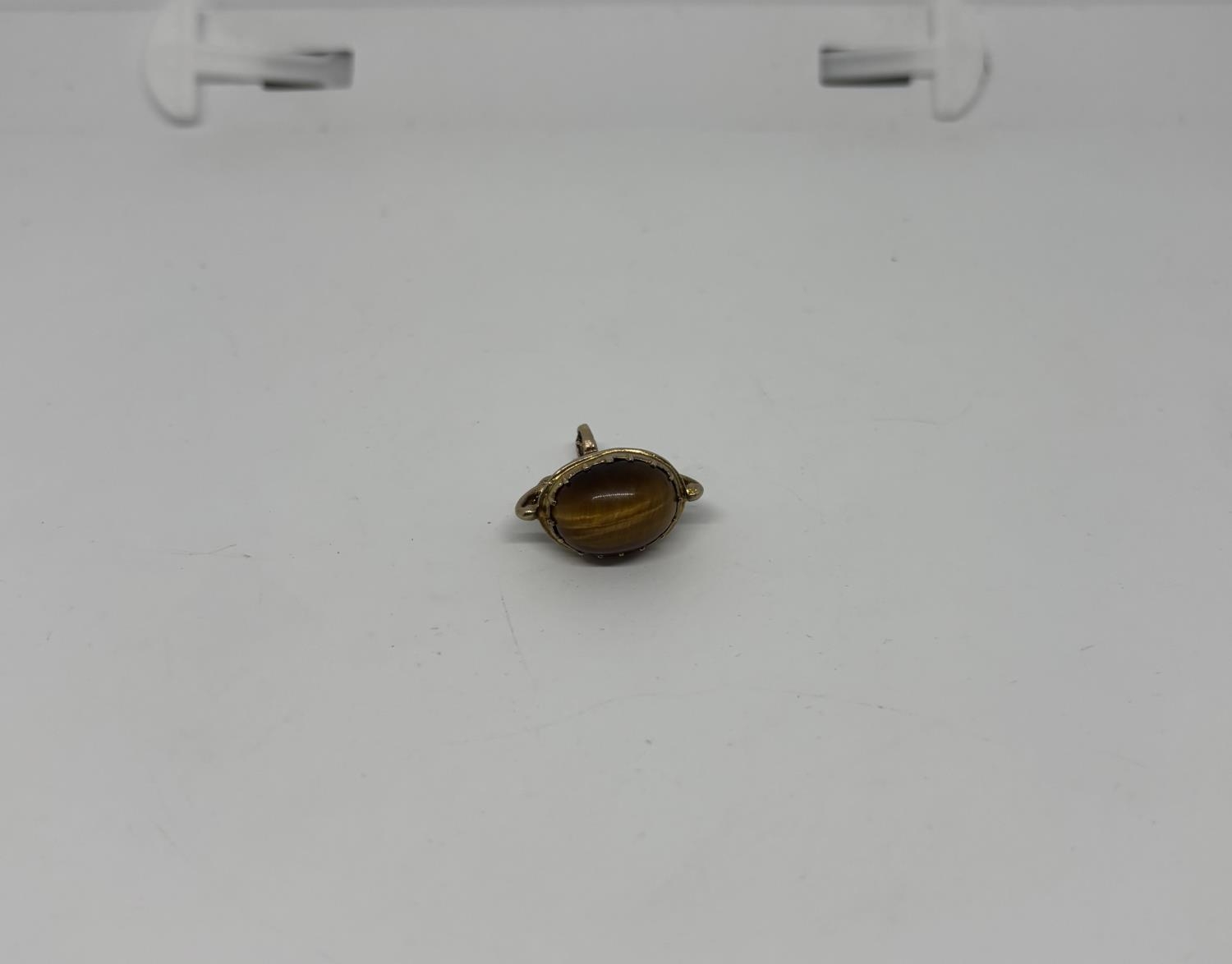 9ct Gold Albert charm featuring a tiger's eye, 5.5g - Only 10% buyer's premium