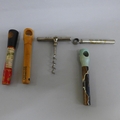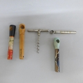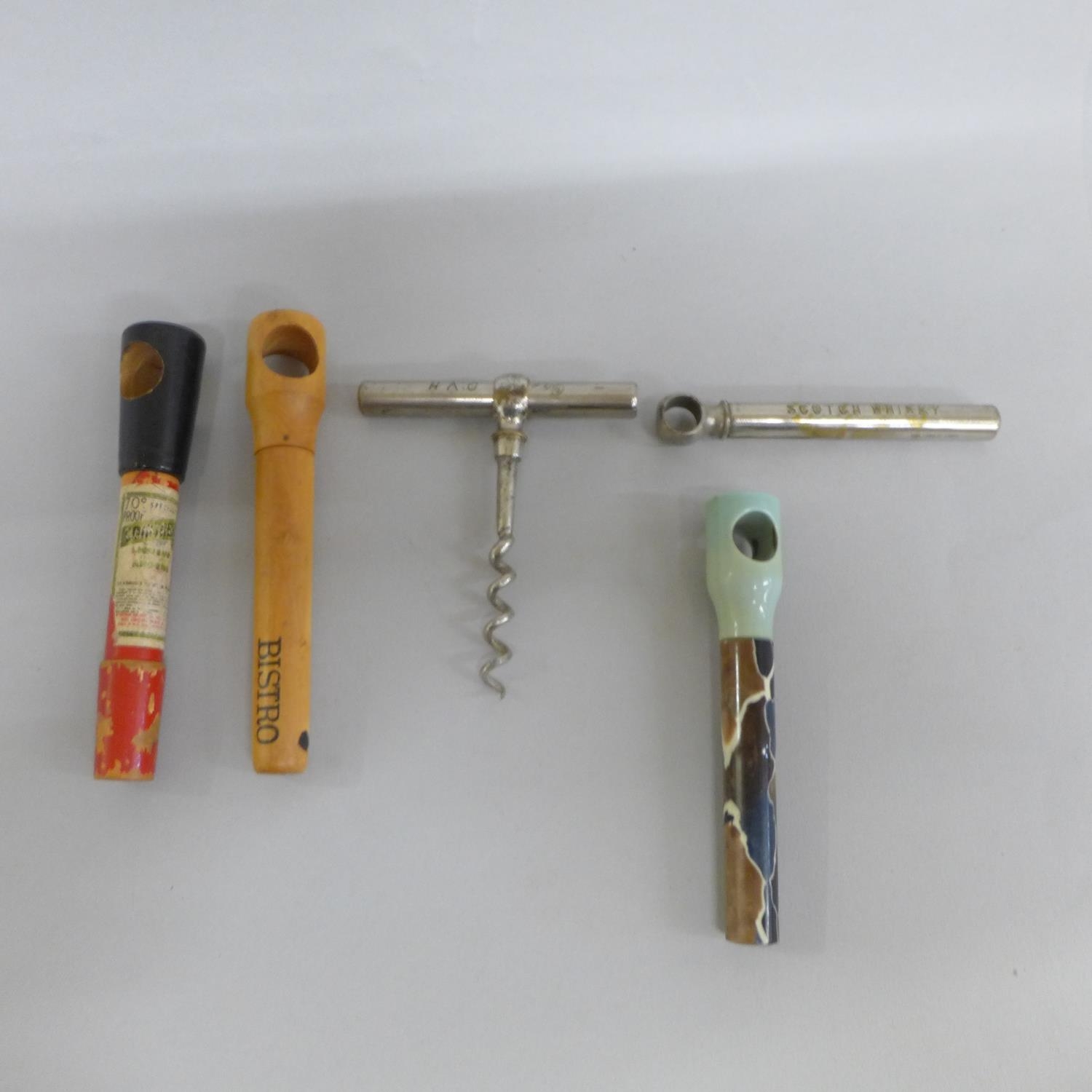 Five vintage picnic corkscrews (four advertising and one Bakelite)