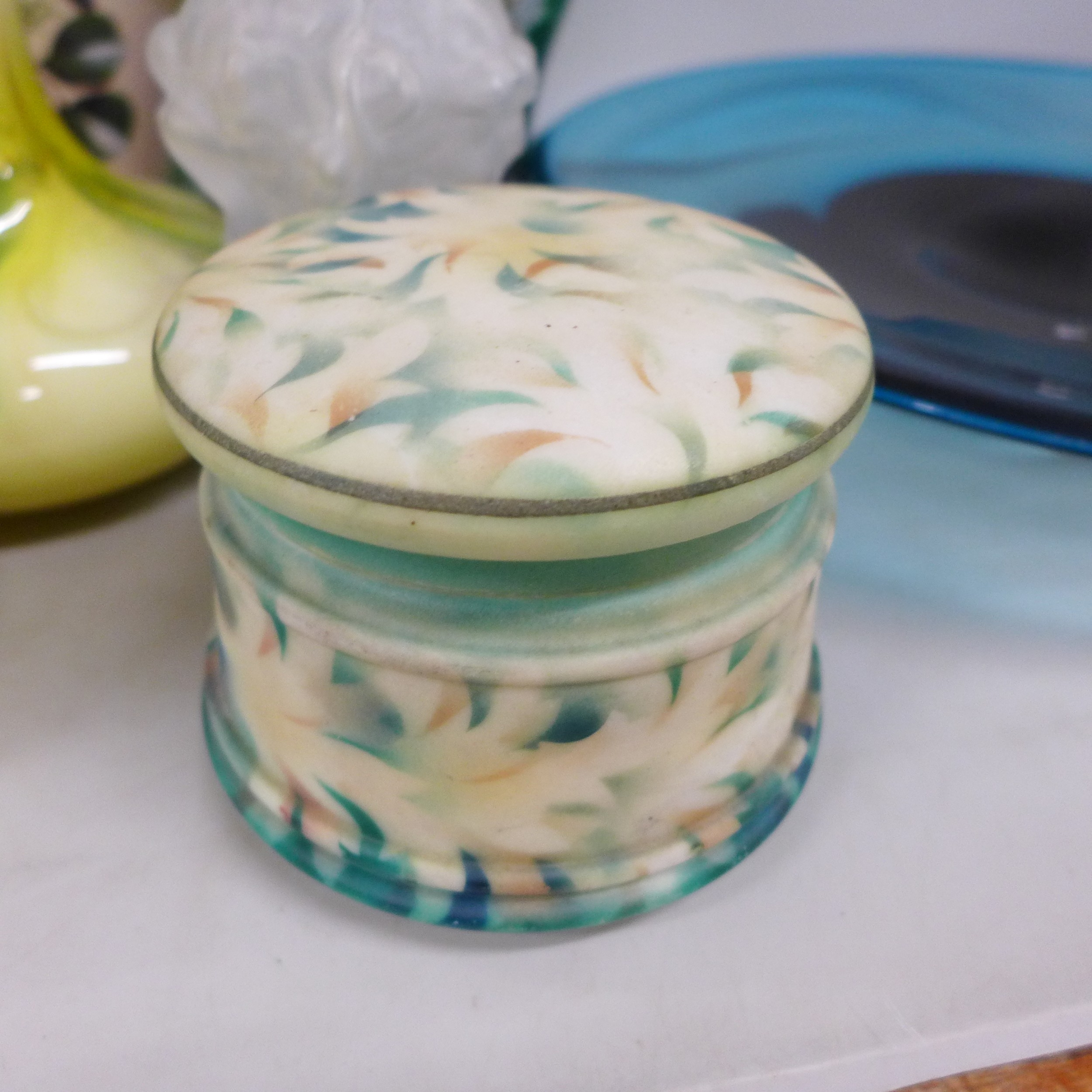 A collection of glass items to include Murano, hand blown large dish, Victorian glass, posy vases, a 1960s Sklo Union glass mid century vase, an Art Deco Desna Czech Nudes vase, etc.
