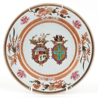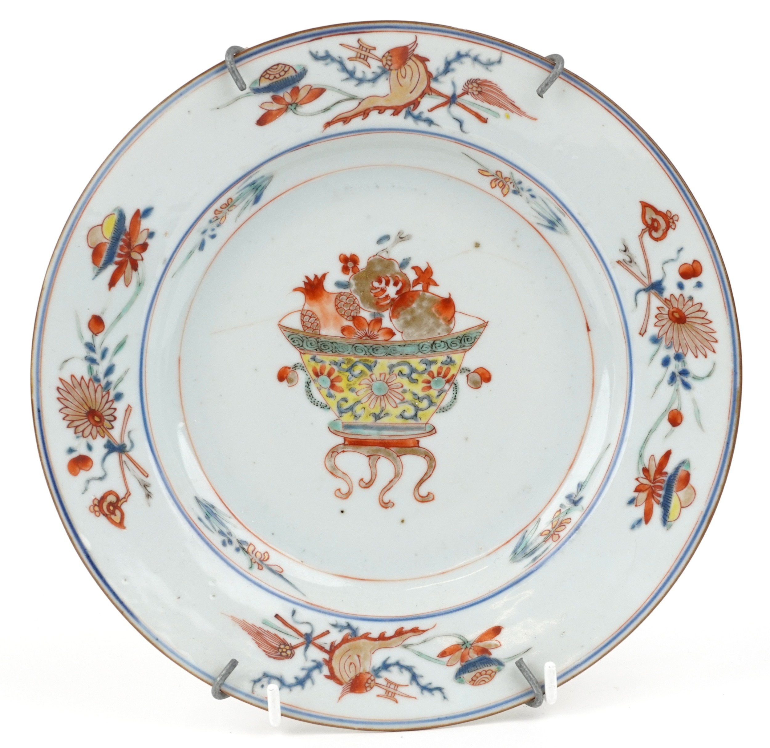 A Chinese porcelain plate hand painted with flowers, 22cm in diameter.