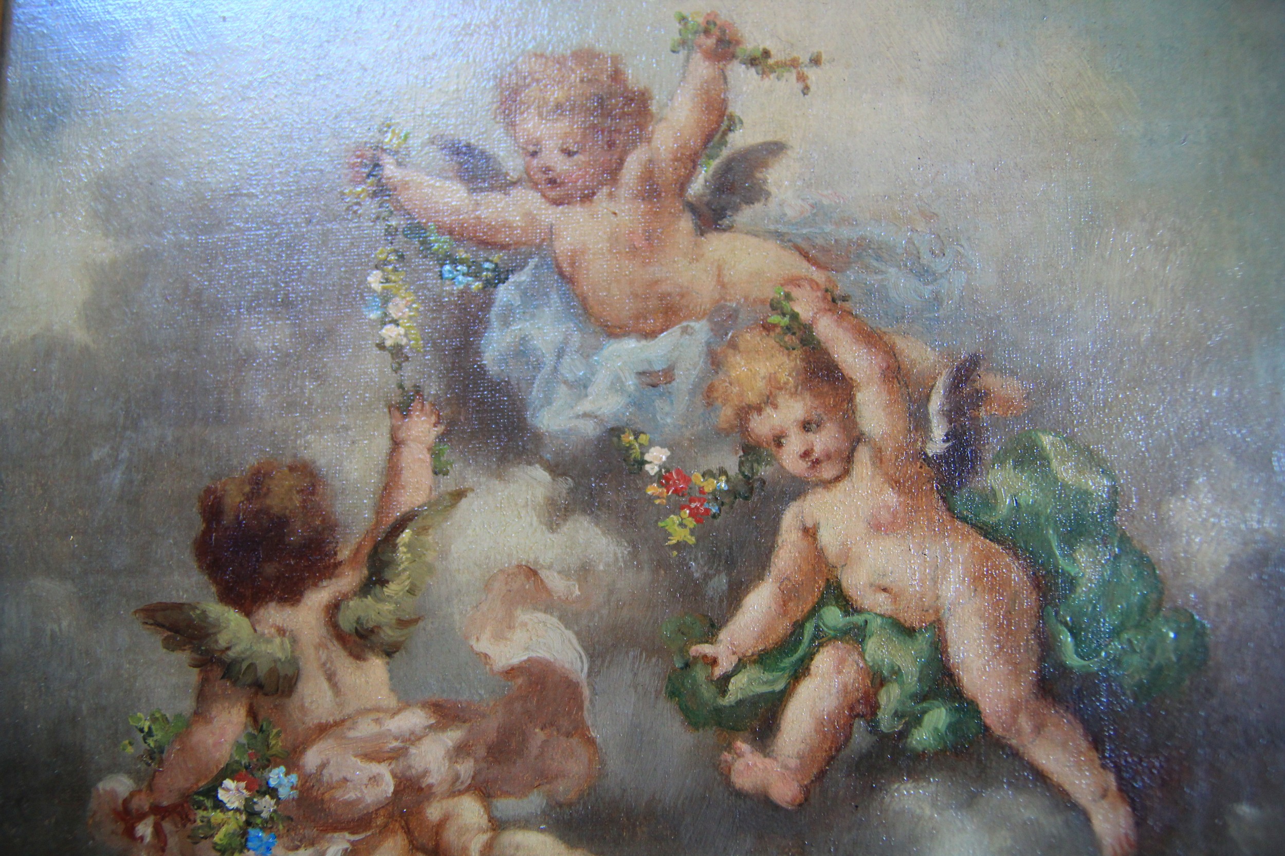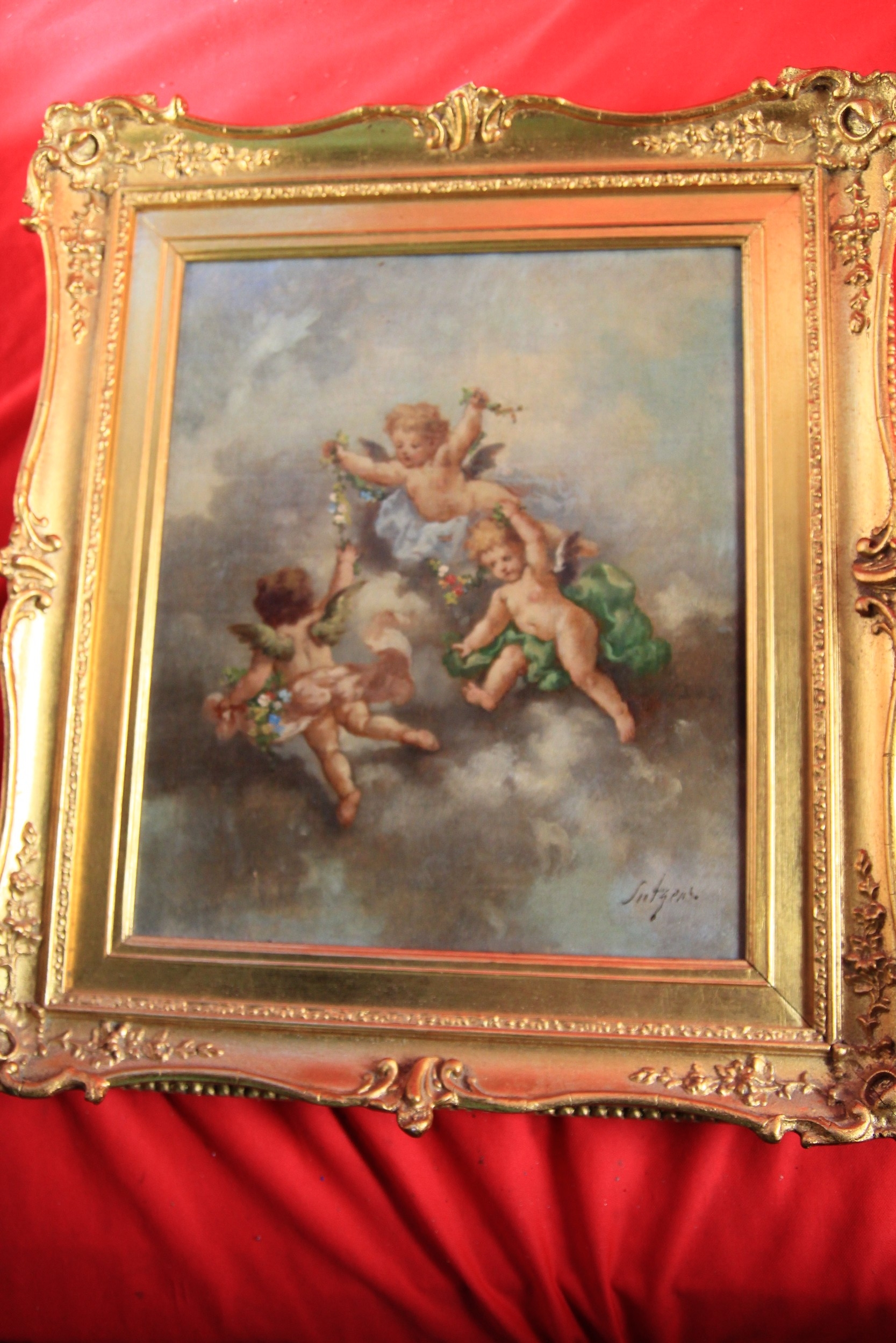 Another Cherubs at play painting by Charles Henry Lutens of a similar size sharing a similar style of frame .