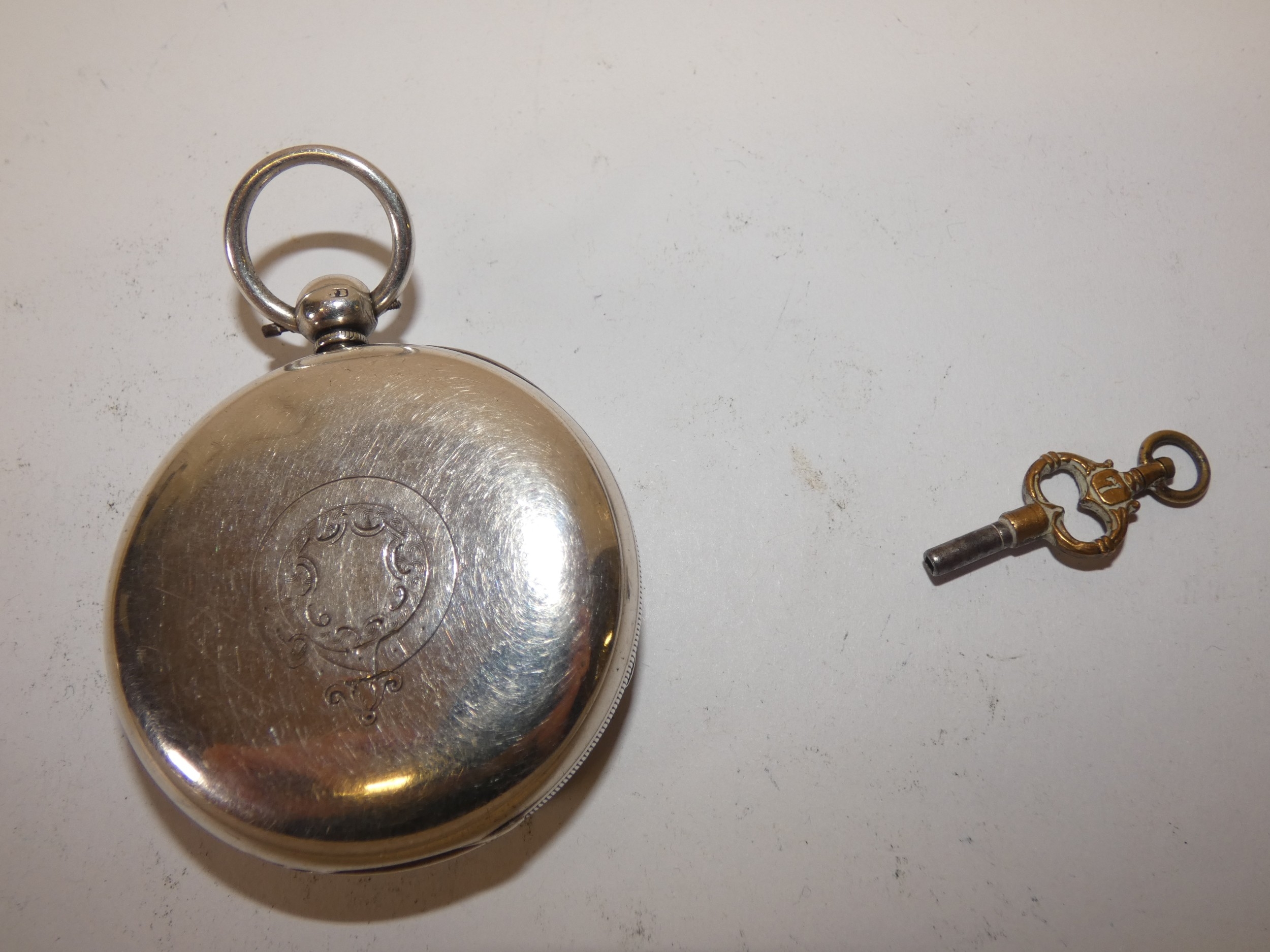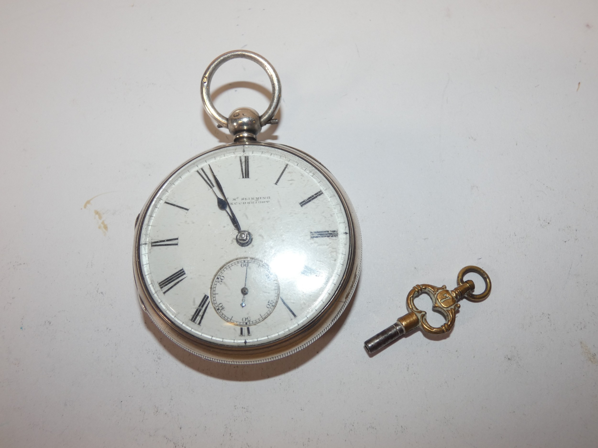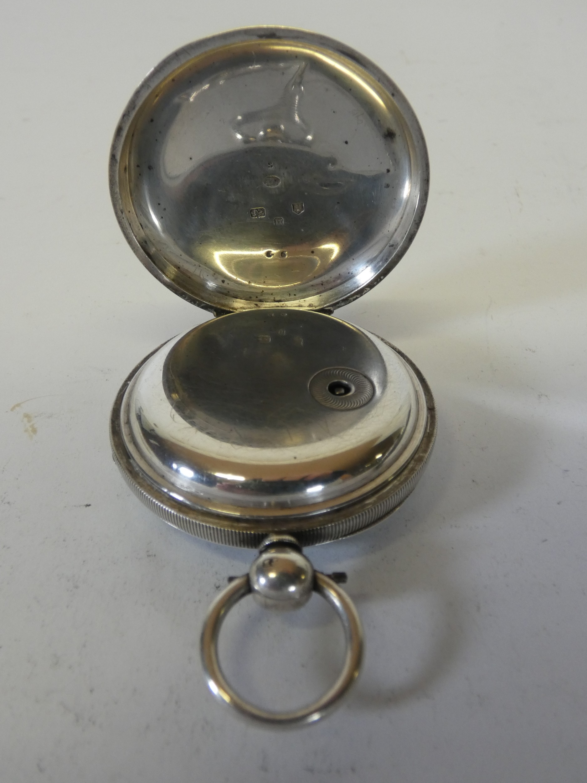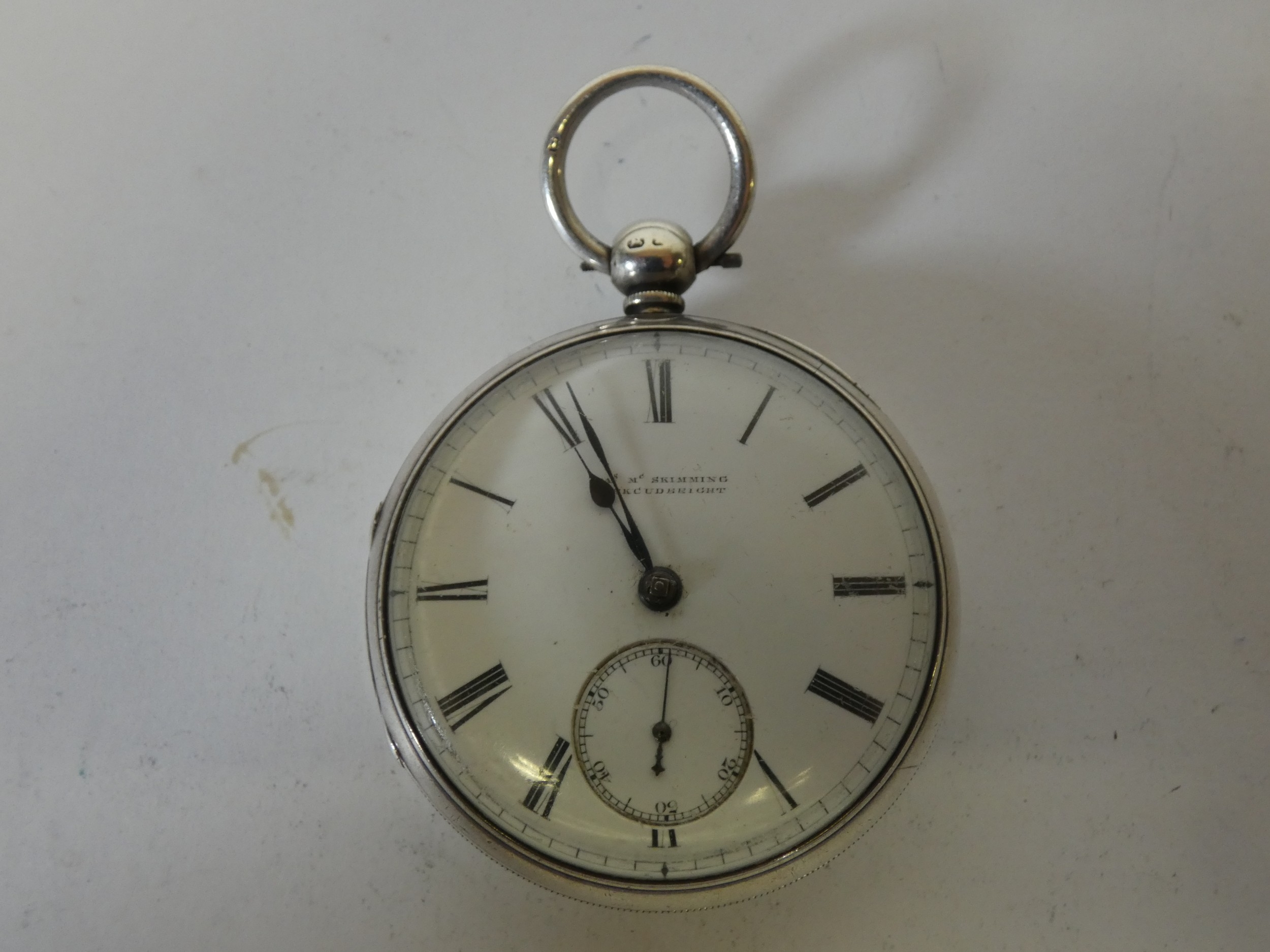 Late Victorian 925 silver cased open face fusee keywind pocket watch, named to the dial for Jas McSkimming, Kirkcudbright.