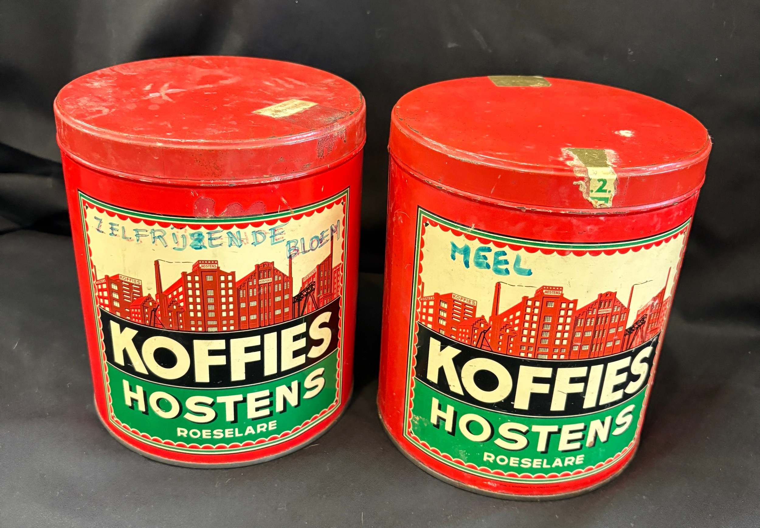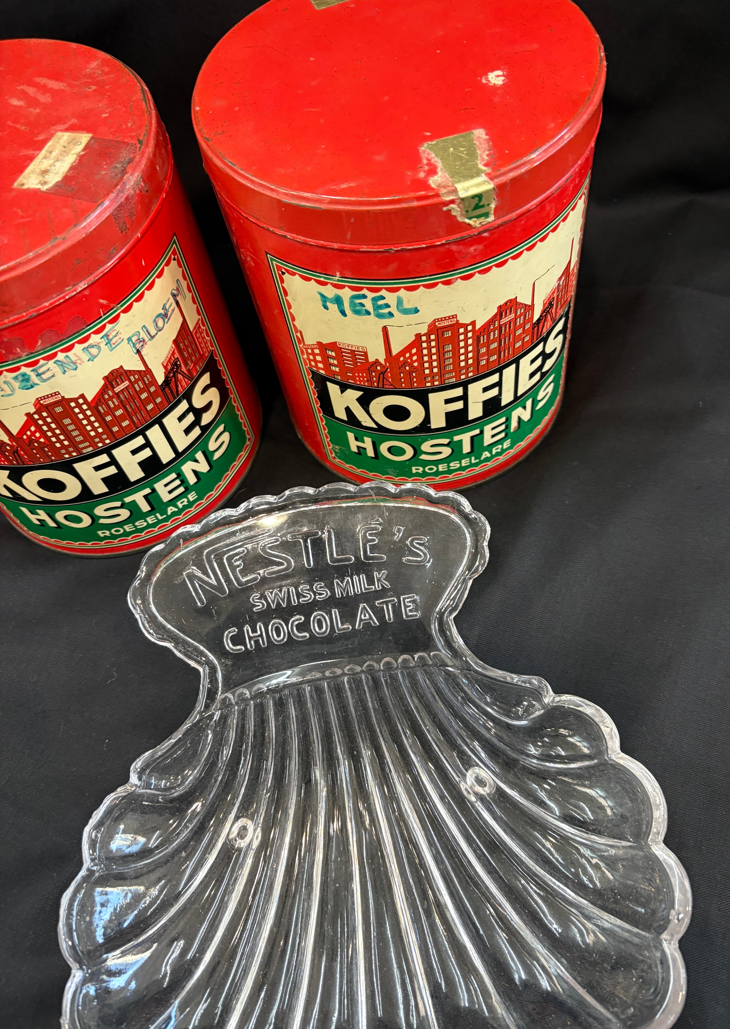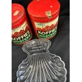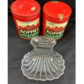 Three vintage advertising pieces to Koffies Hostens lidded t...