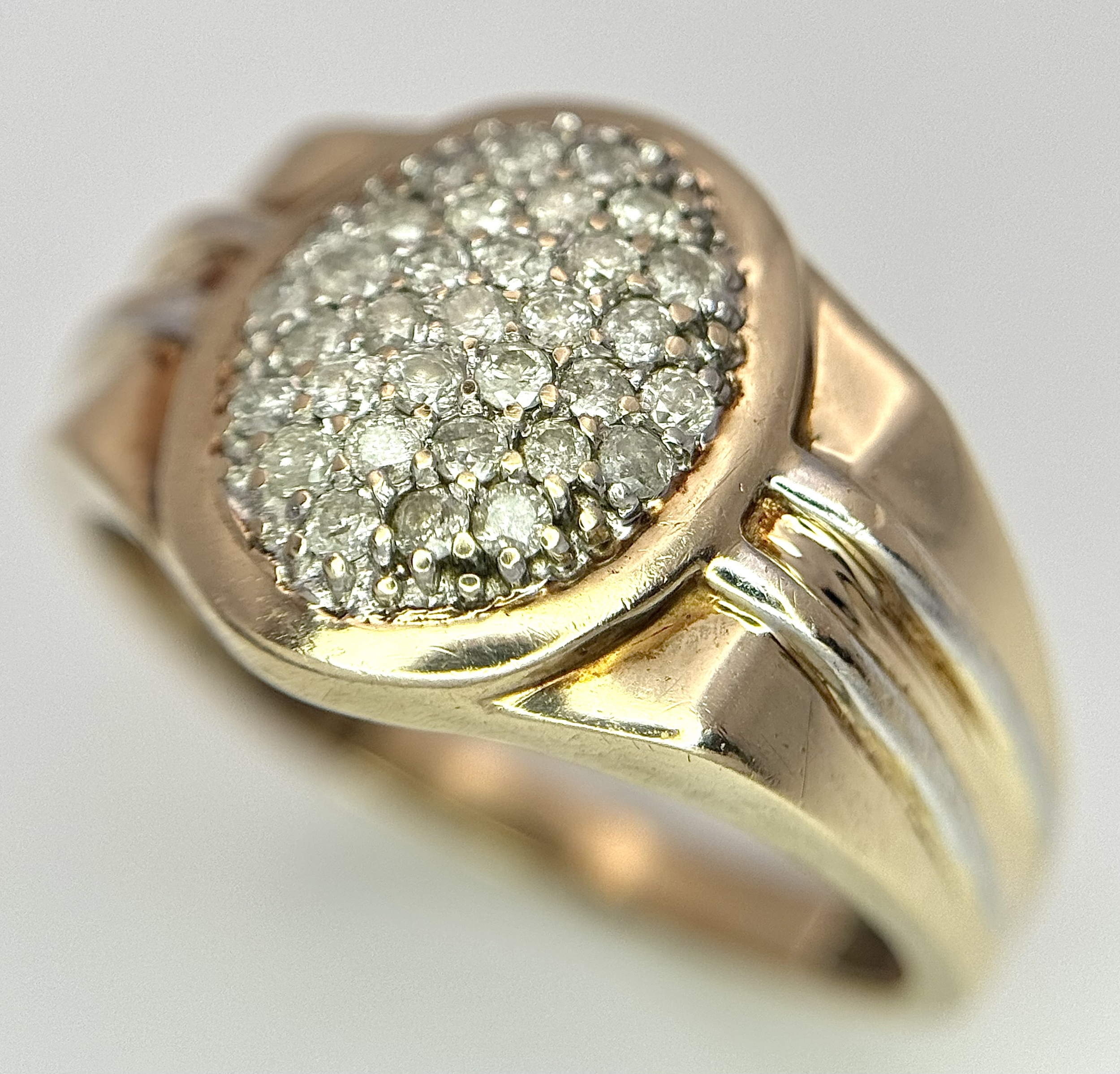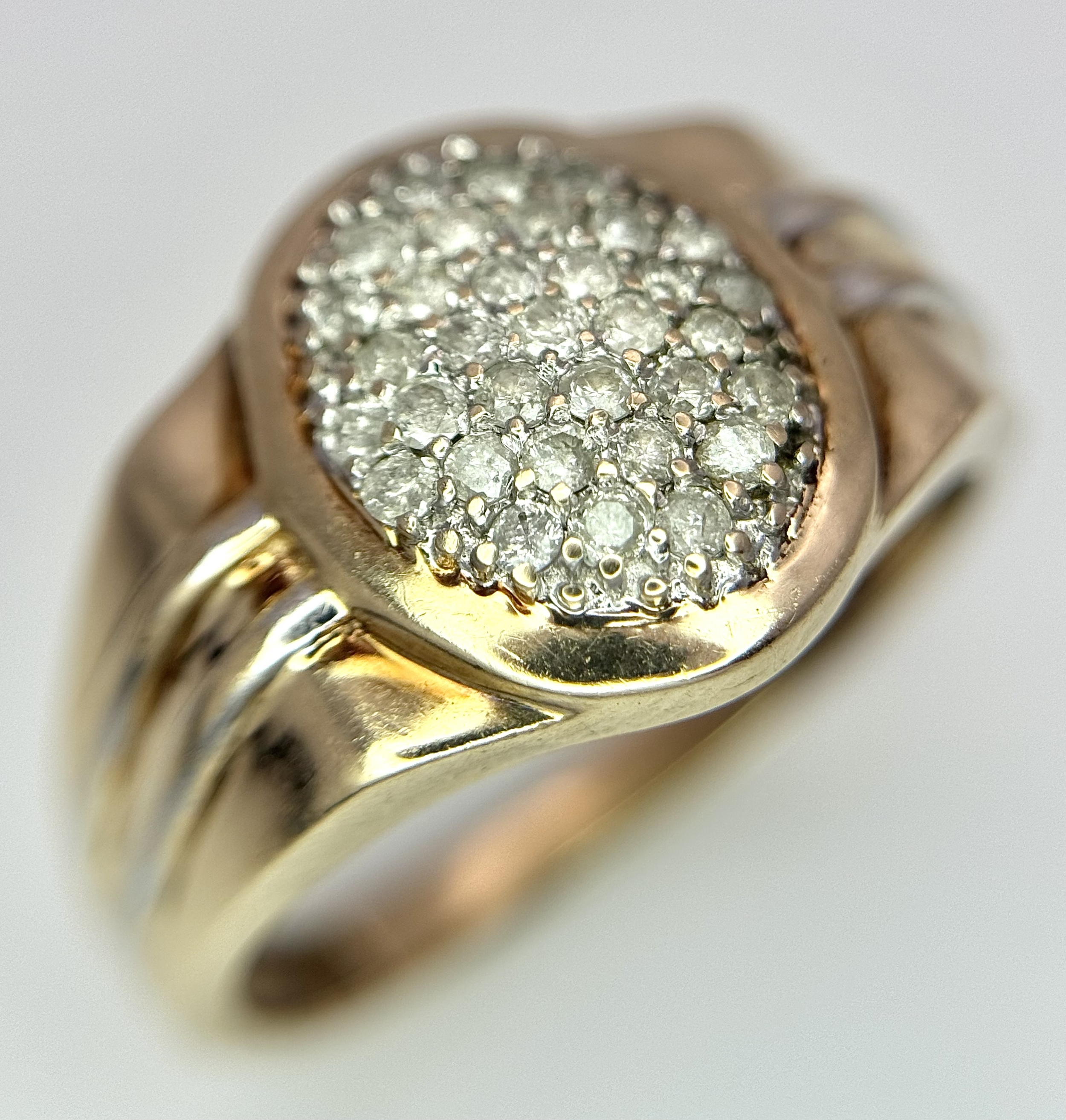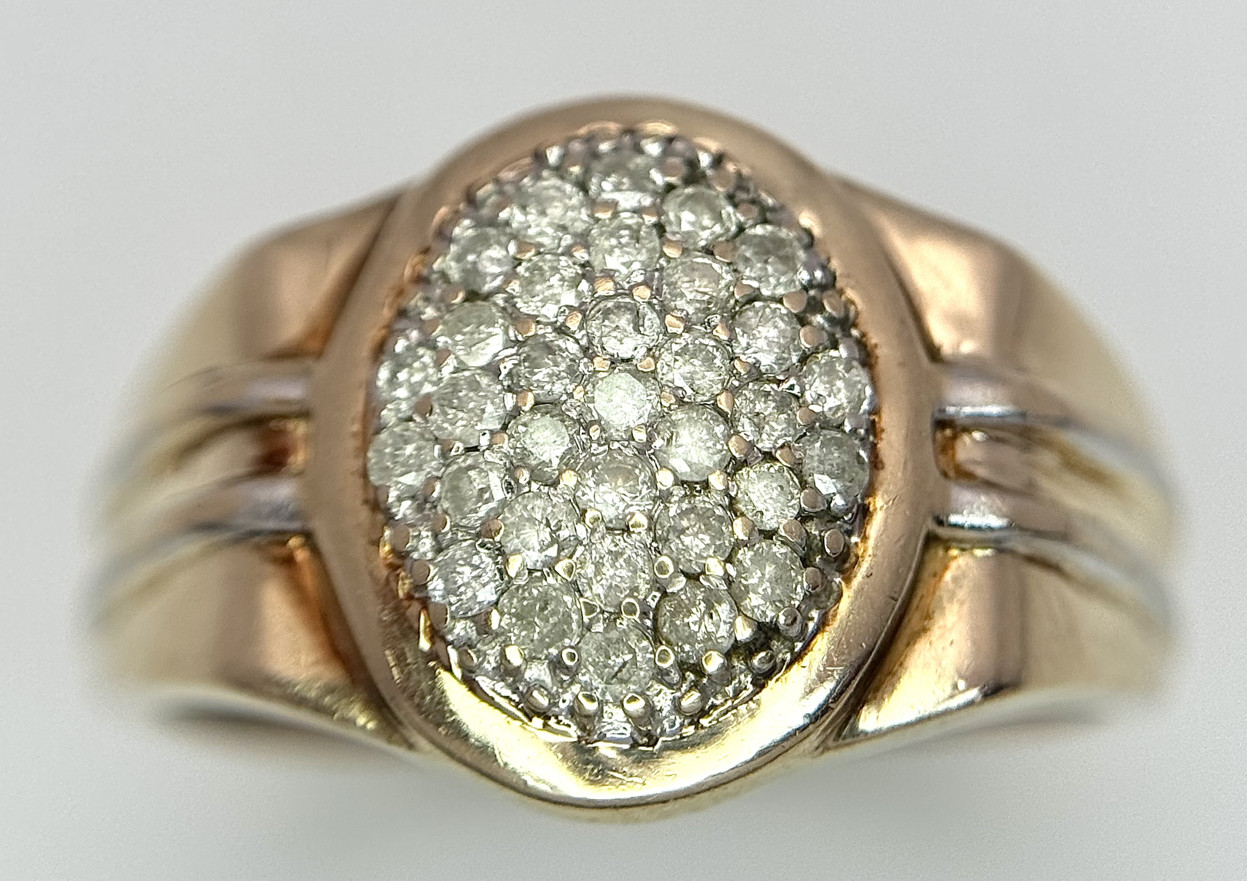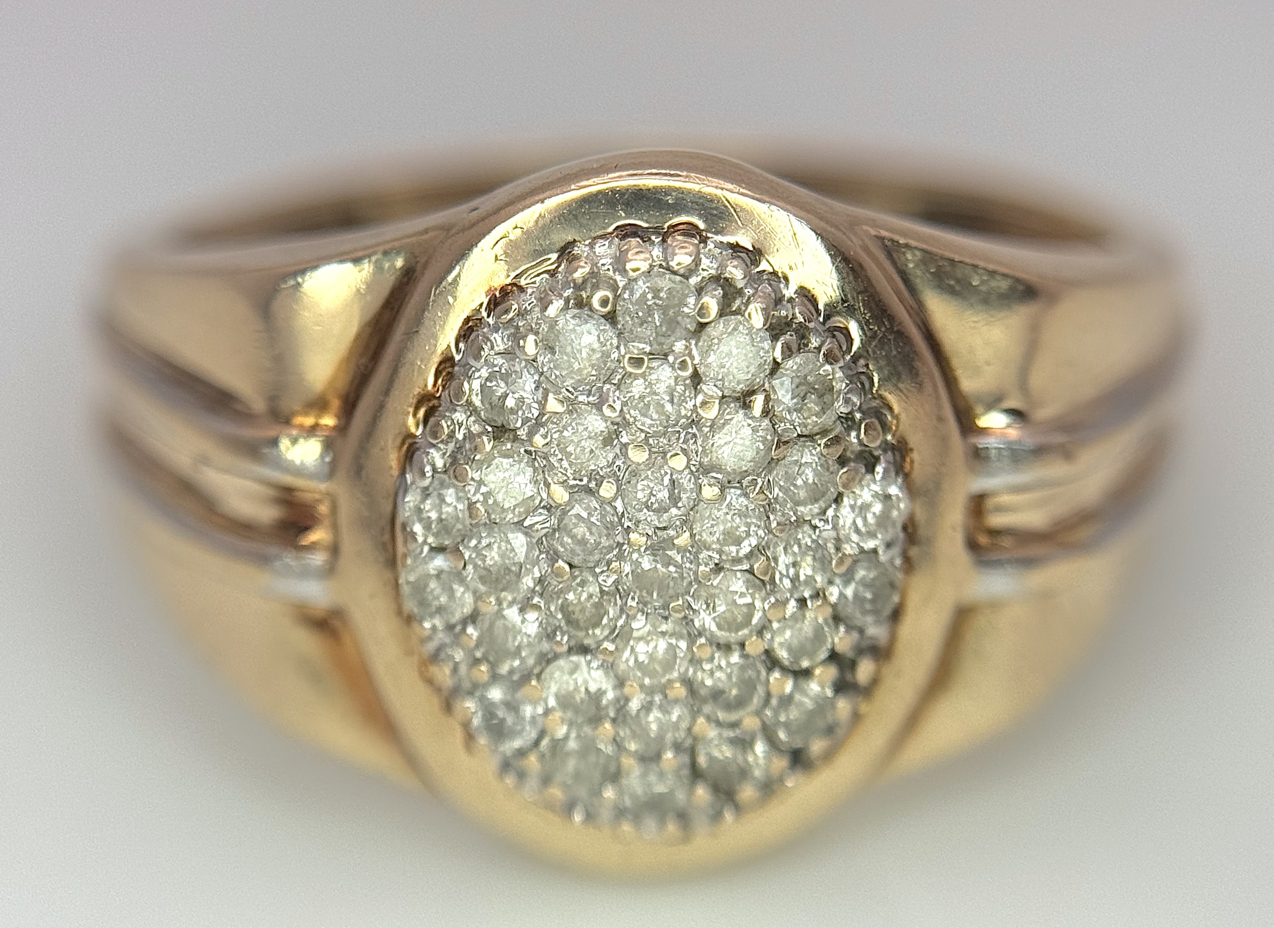 A 9K YELLOW GOLD DIAMOND SET RING. 0.35CTW, 3.3G TOTAL WEIGHT. SIZE V. Ref: SC 2001