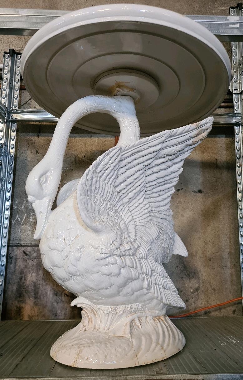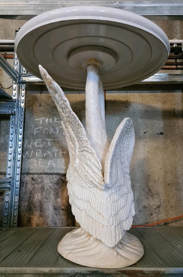 Wow-tastic vintage Casa Fina white glazed ceramic swan sculpture table! It’s absolutely stunning, previously restored by Nicholas Dimbleby and now needs the table top fixing. Approx H70cm.