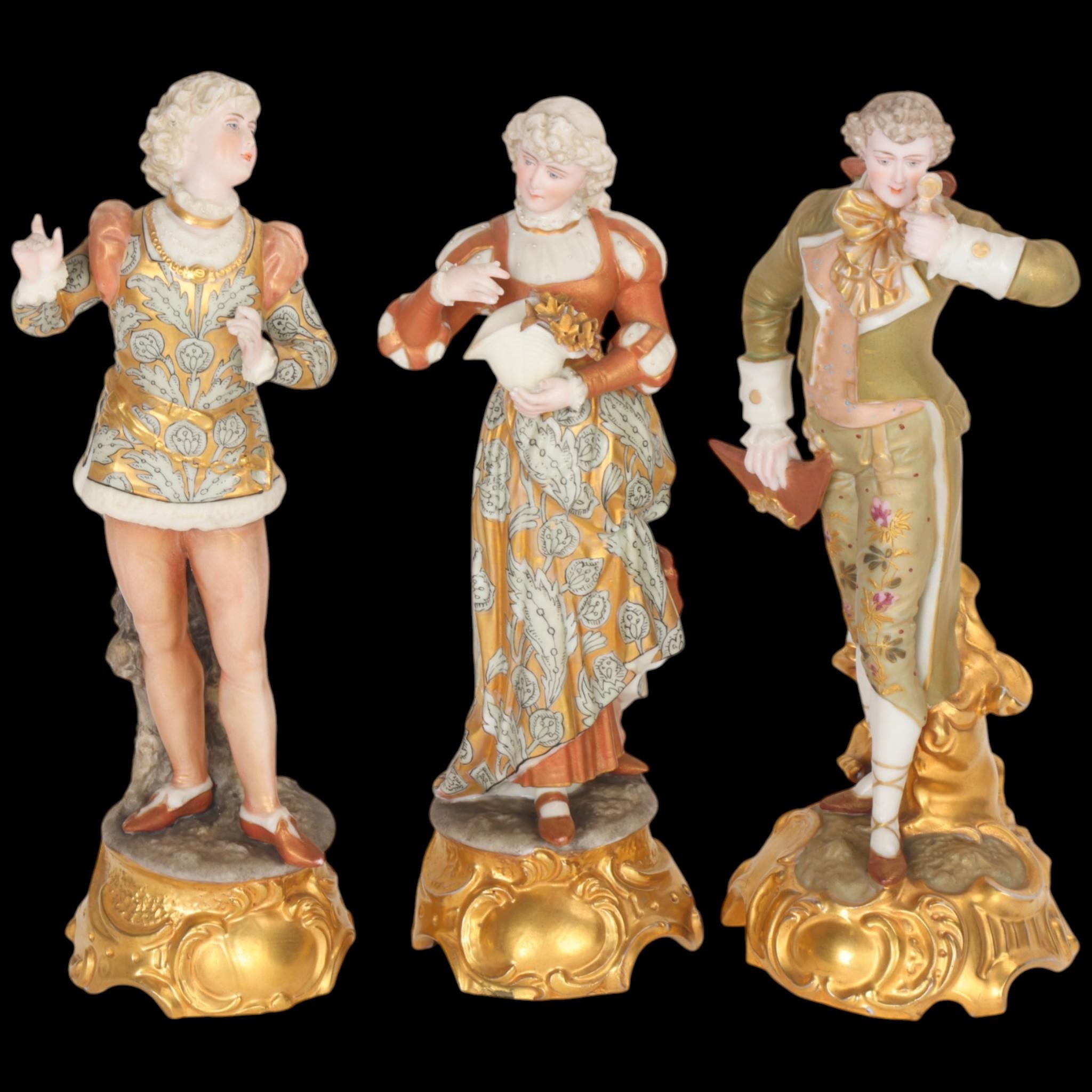 3 x 19th century German porcelain figures, height 21cm