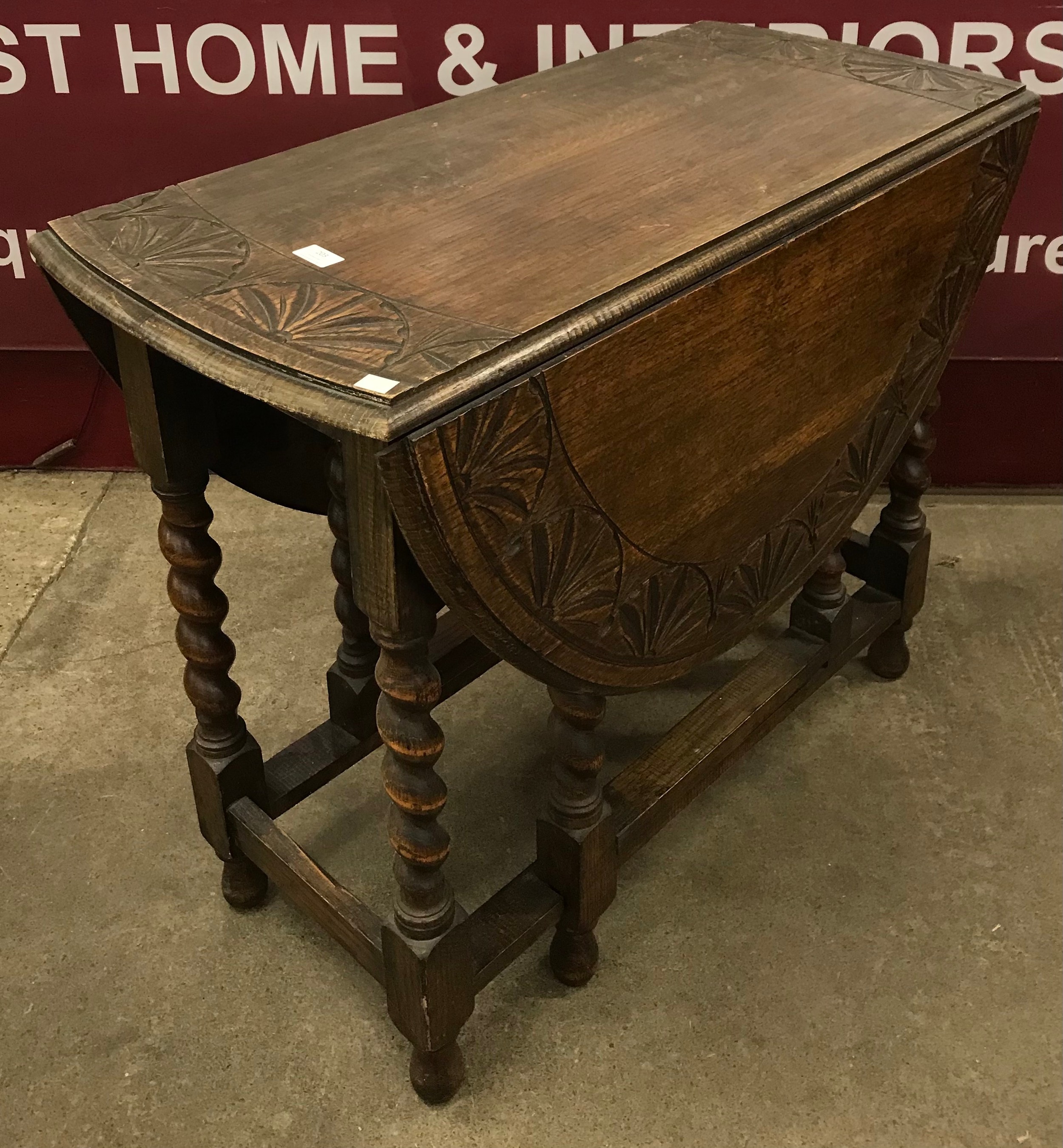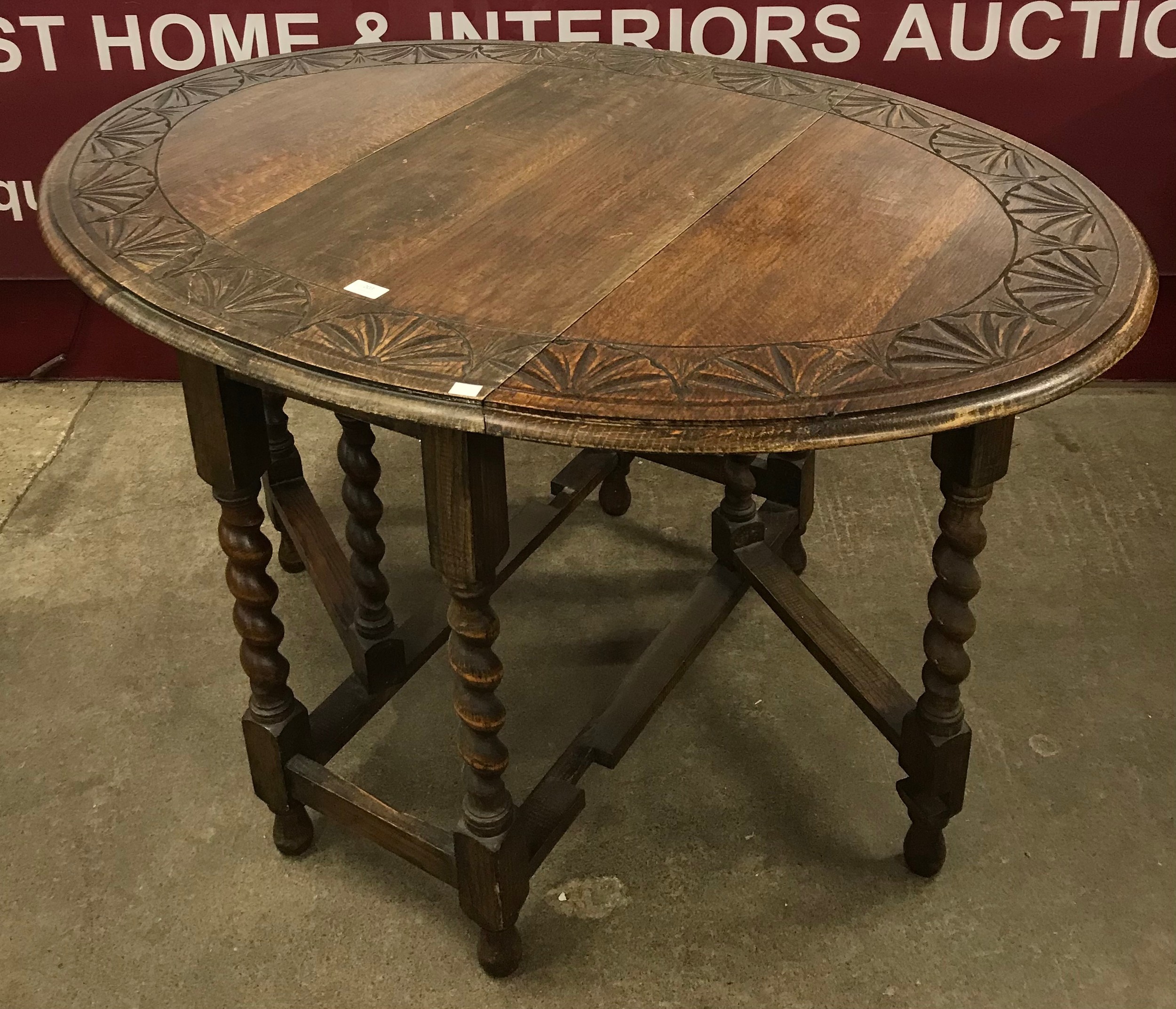 An early 20th Century carved oak barleytwist gateleg table