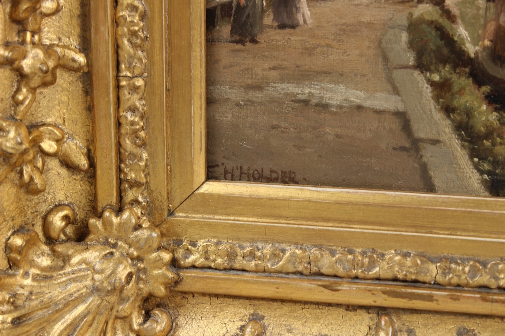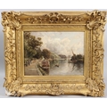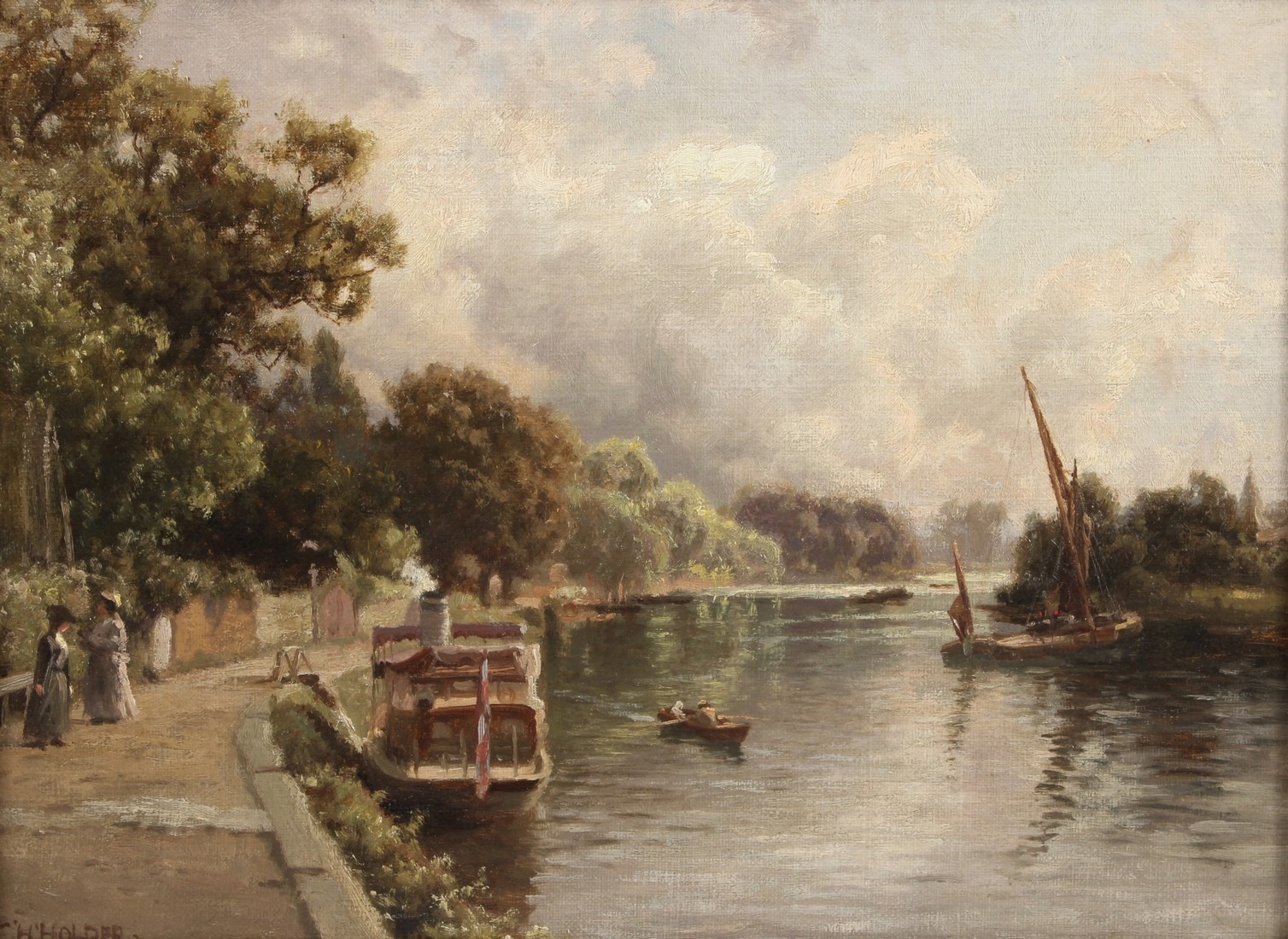 EDWARD HENRY HOLDER (1847-1922) River bank scene oil on canvas signed 21 x 28.5cm