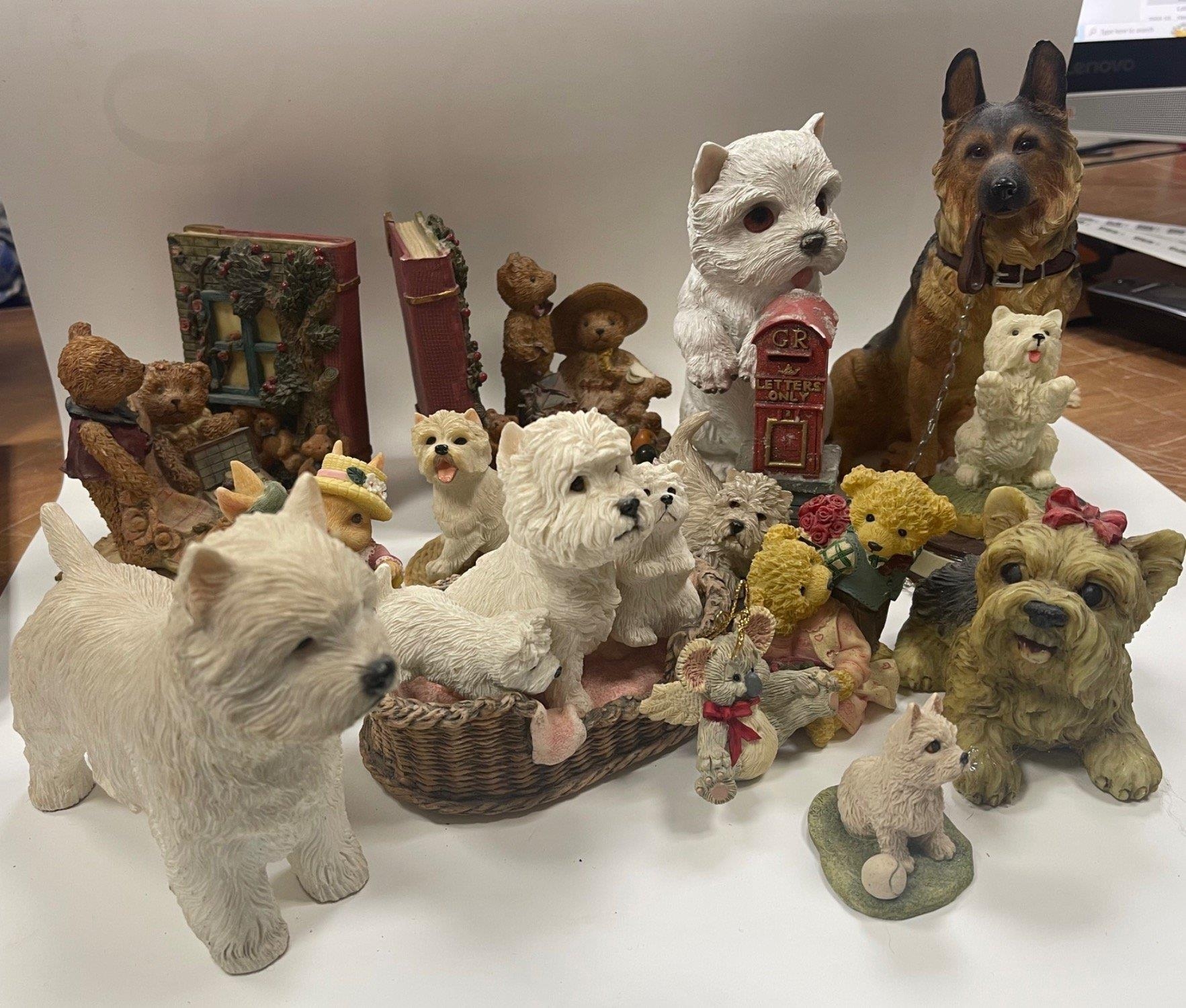 A large collection of SCOTTIE DOGS mainly ornaments to include a cute set of Teddy Bear bookends dimension 13cm height by Regency Fine Arts and so much more