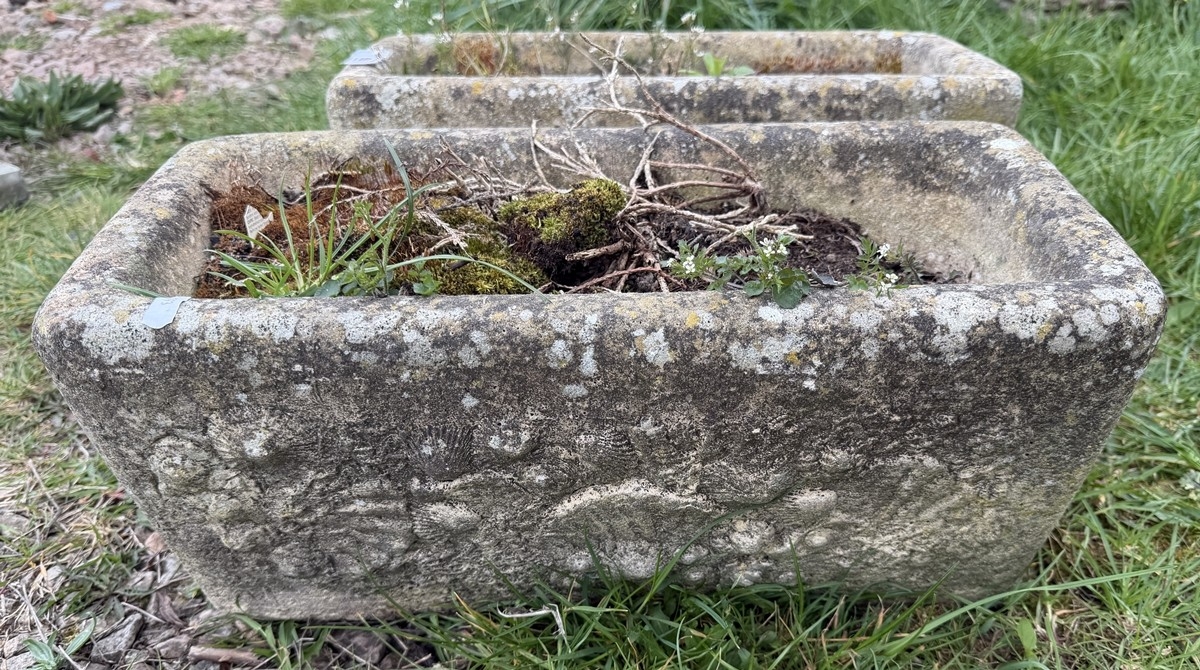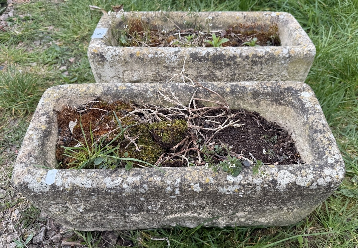 Two small stone troughs