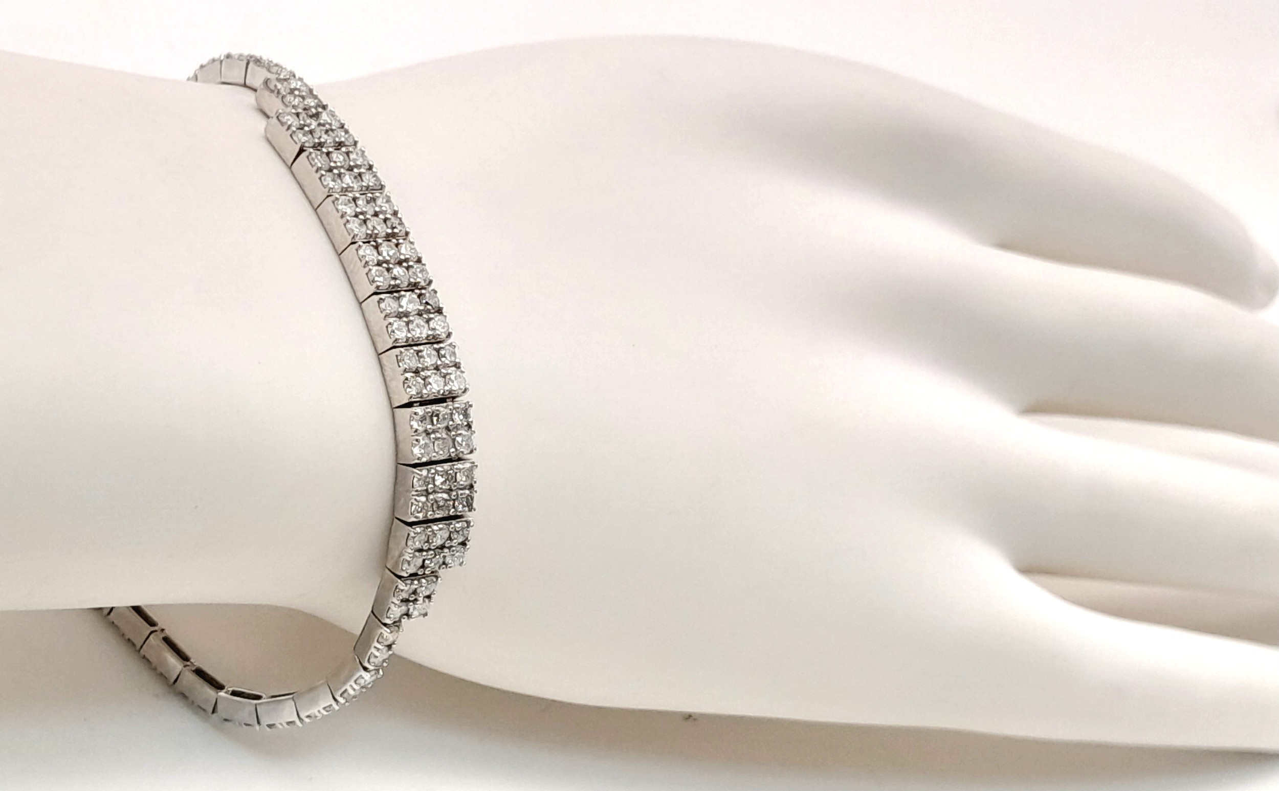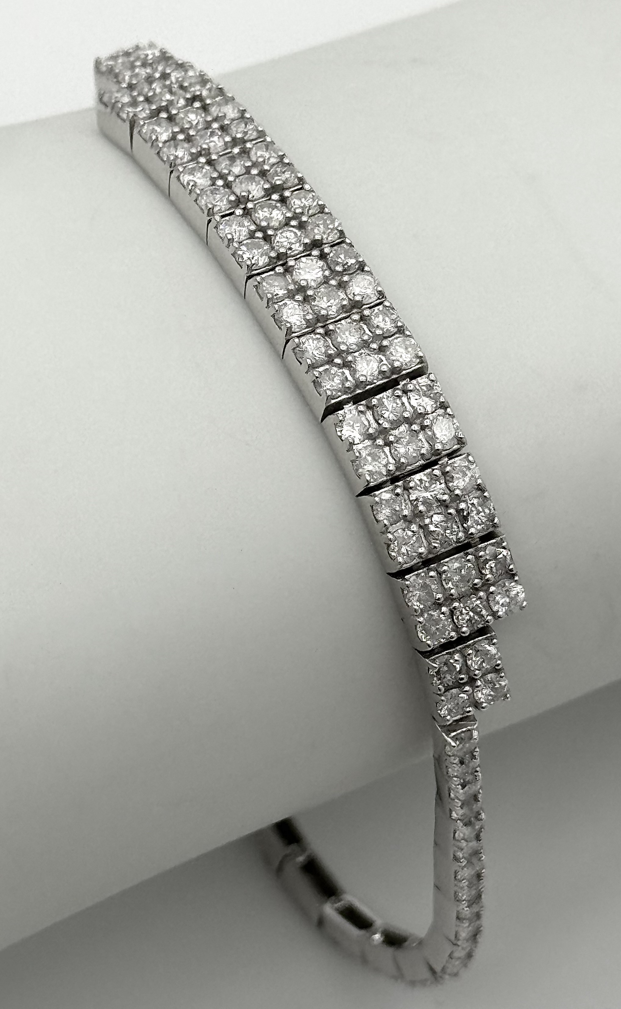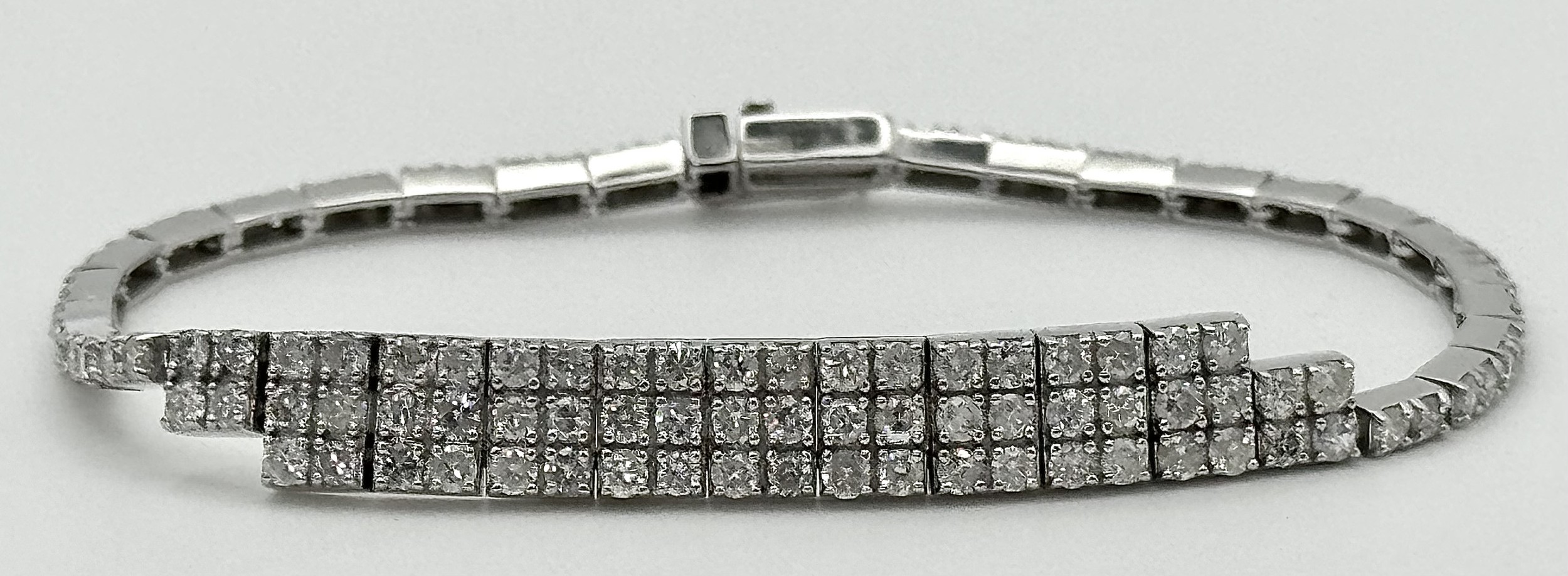 A 14K White Gold Diamond Bracelet. 3.5ctw of round brilliant cut diamonds in a Tetrus-esque design. 18cm length. 10.3g total weight. Ref: NL3/97005.