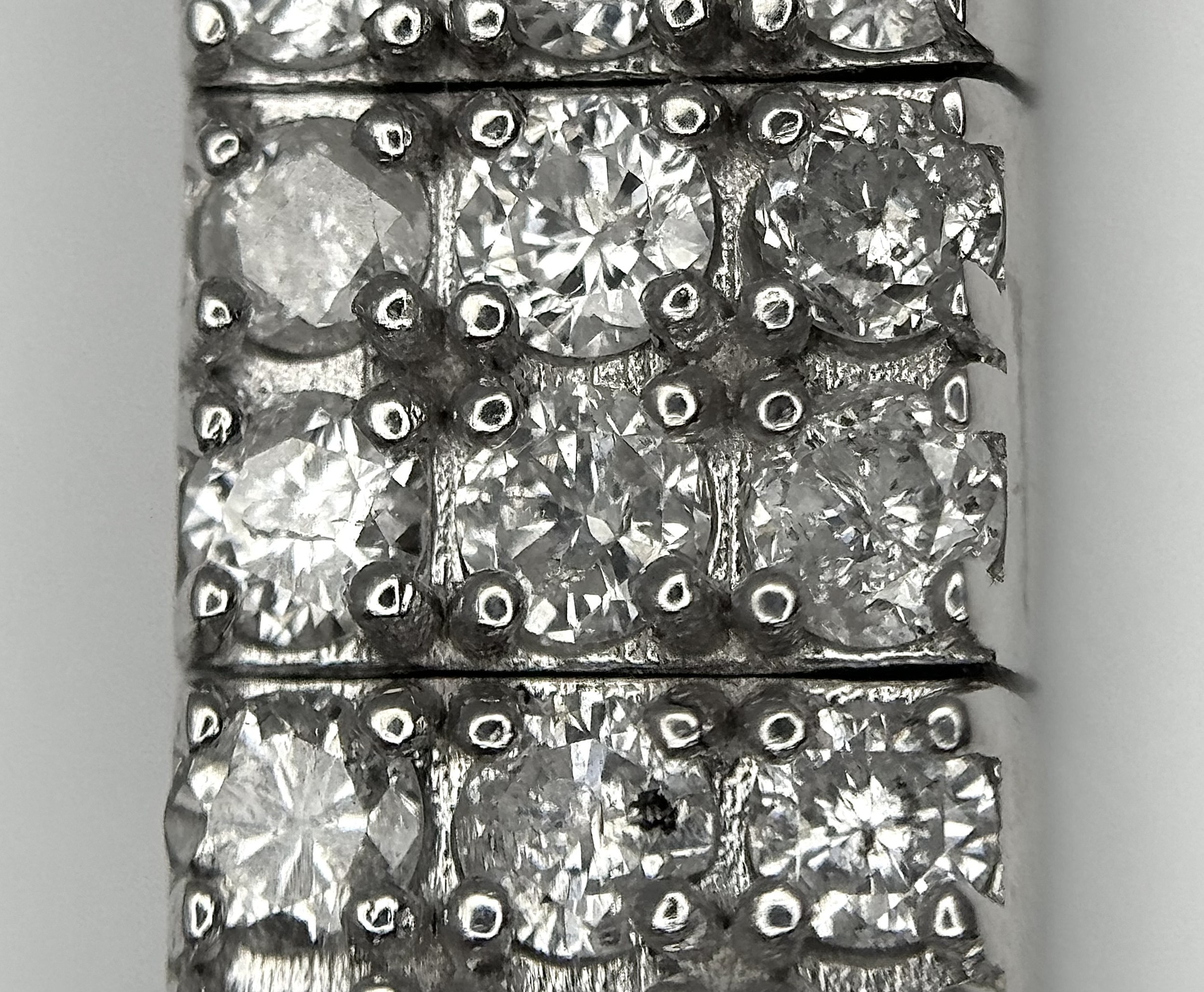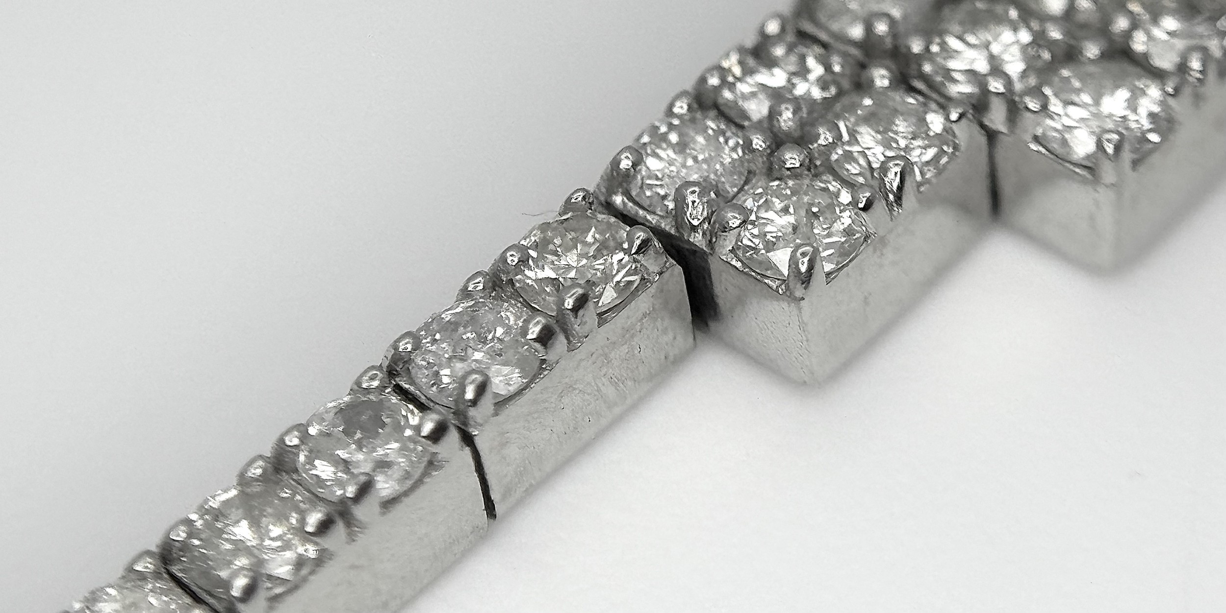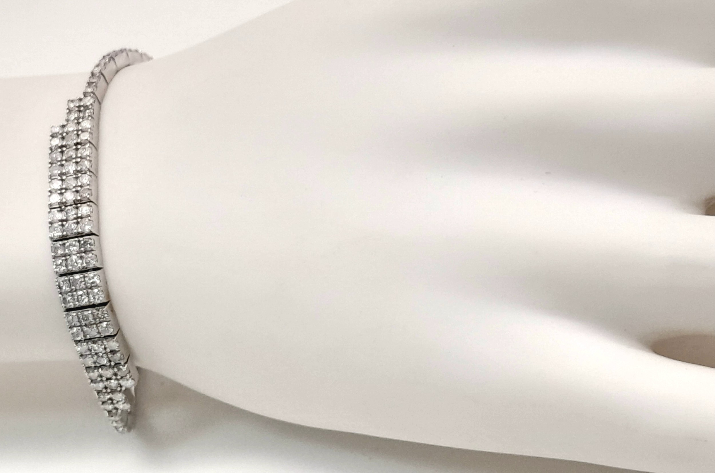 A 14K White Gold Diamond Bracelet. 3.5ctw of round brilliant cut diamonds in a Tetrus-esque design. 18cm length. 10.3g total weight. Ref: NL3/97005.