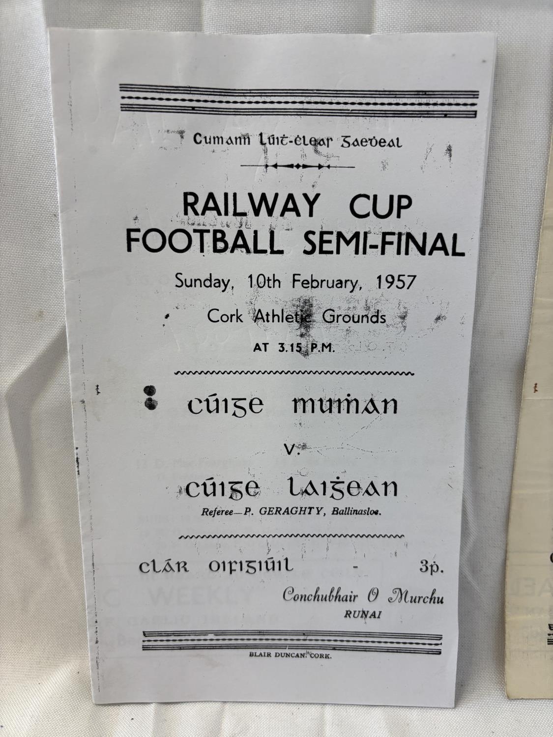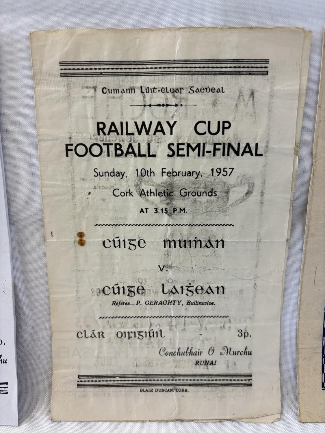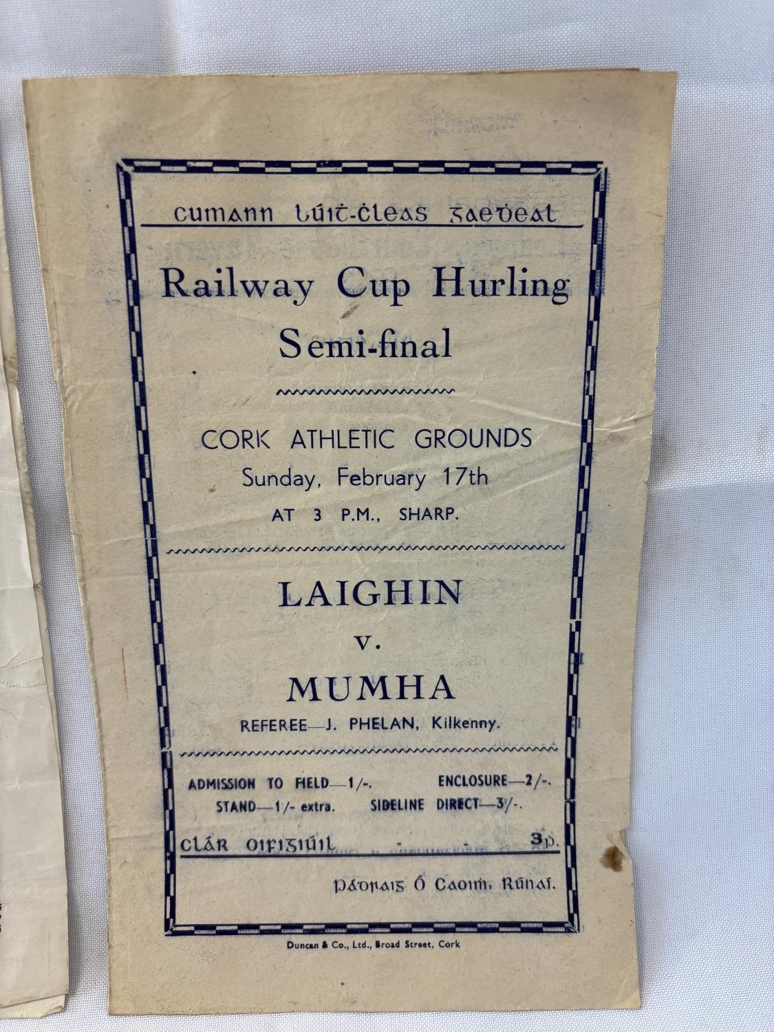 Railway Cup Hurling and Football, two early original programmes and 1 photocopy.