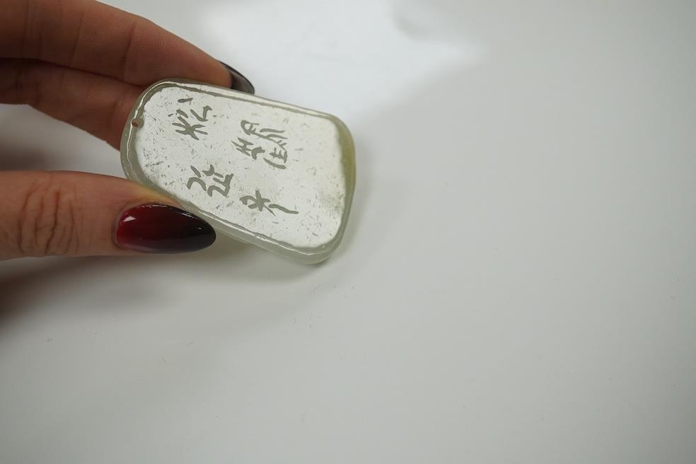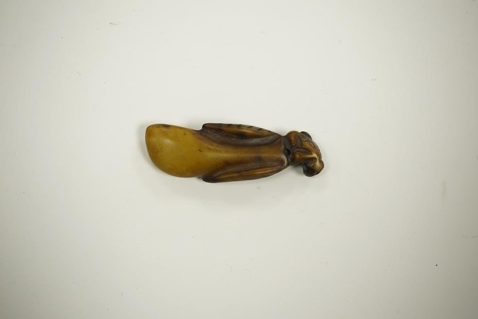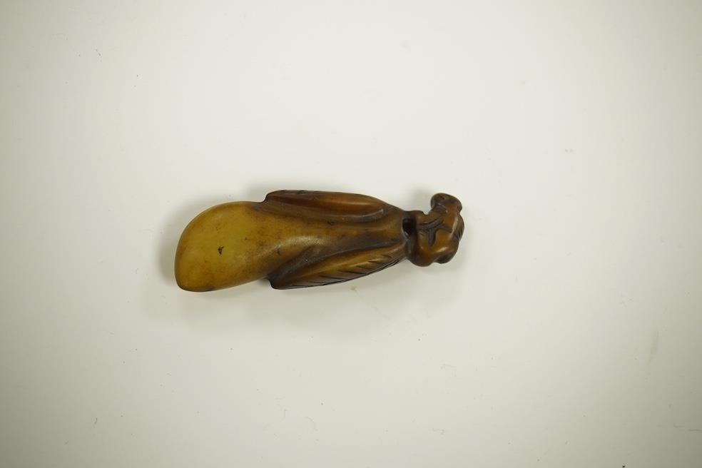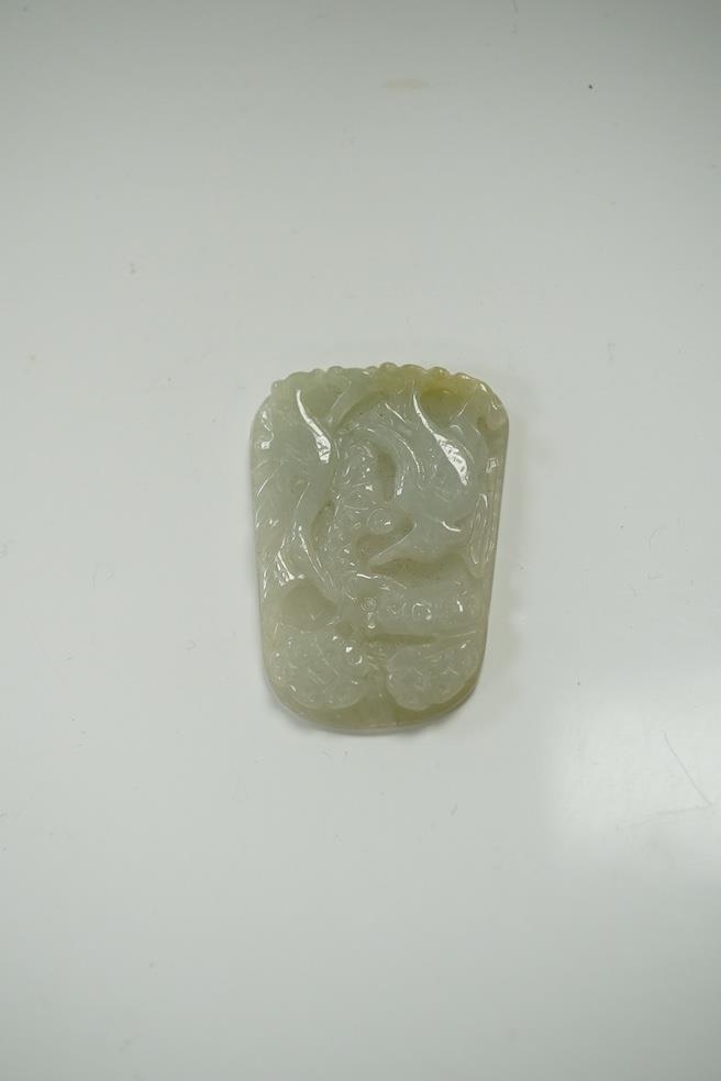 A Chinese jadeite pendant and a carving of a bud, largest 6cm high (2). Condition - good