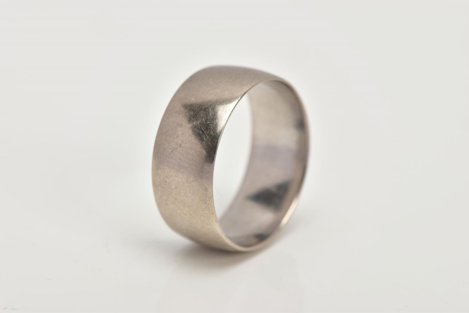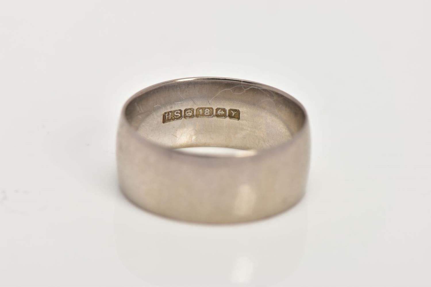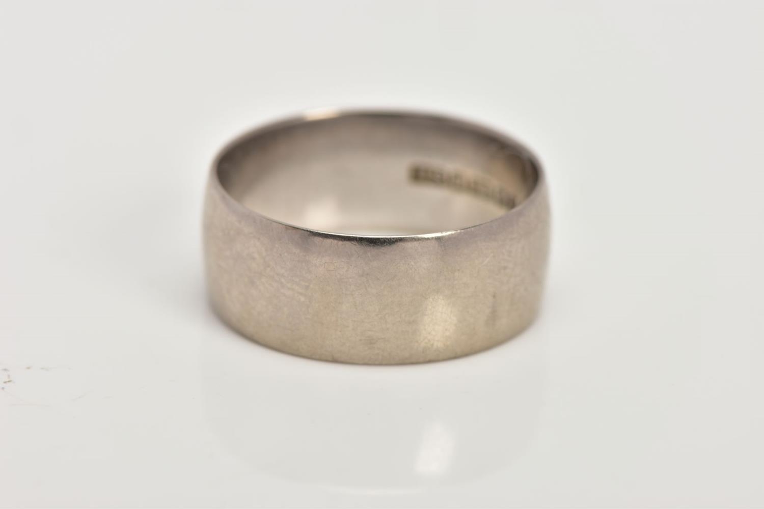 AN 18CT WHITE GOLD WIDE WEDDING BAND, of a plain polished design, approximate width 2.4mm, hallmarked 18ct gold Birmingham, ring size centring on L, approximate gross weight 5.8 grams (condition report: general light wear, overall condition good)