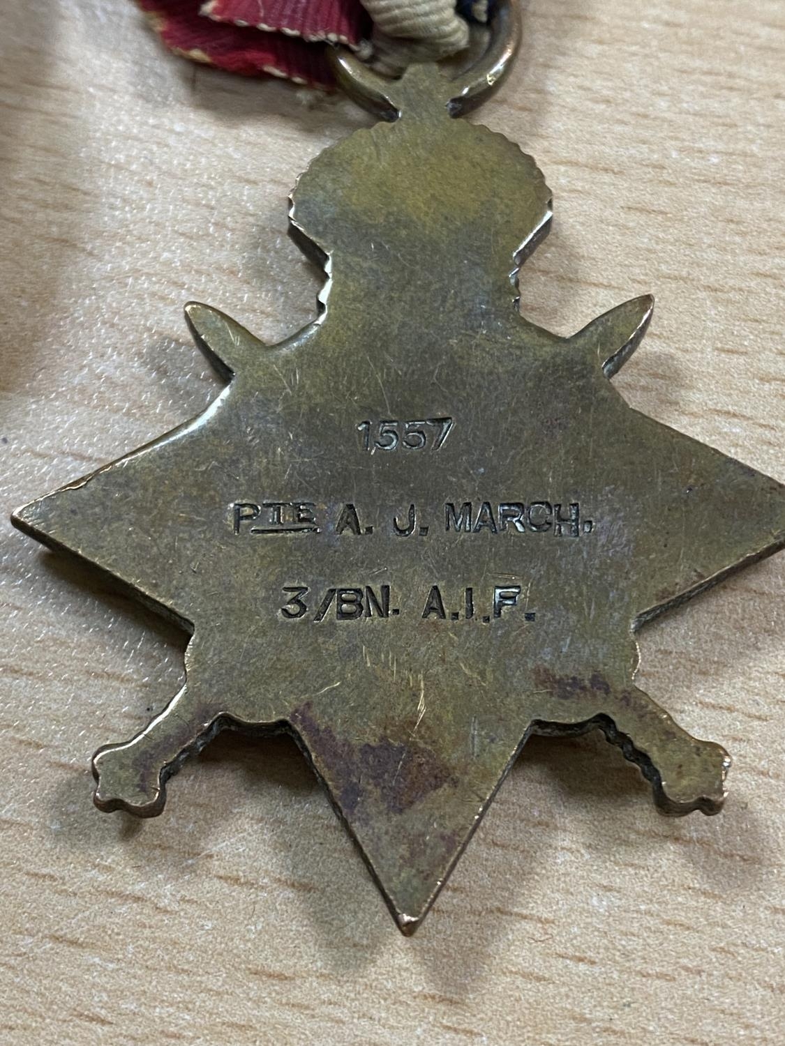 1X WW1 MEDAL NAMED TO 114576 PTE. A.J MARCH DURH L.1 & 2X MEDALS TO 1557 A.J MARCH 3/BN A.I.F & 1557 PTE A.J MARCH 3-BN A.I.F