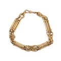 18ct gold hallmarked gate bracelet with textured bar link design, weight 49.9 grams, with lobster clip.