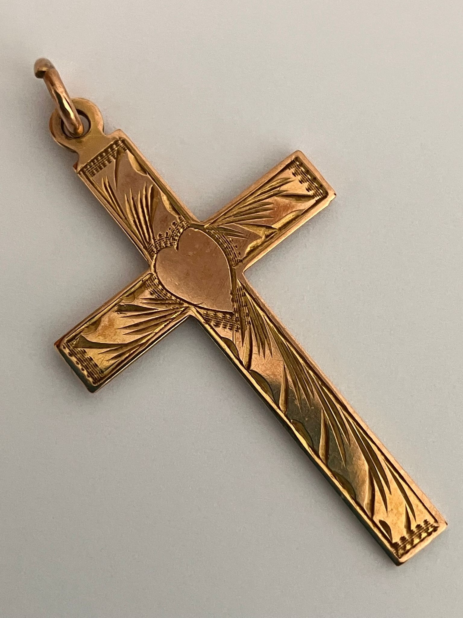 Traditional 9 CARAT GOLD CROSS pendant. Beautifully decorated front. 1.92 grams. 3.5 cm x 2.0 cm. Please see pictures.