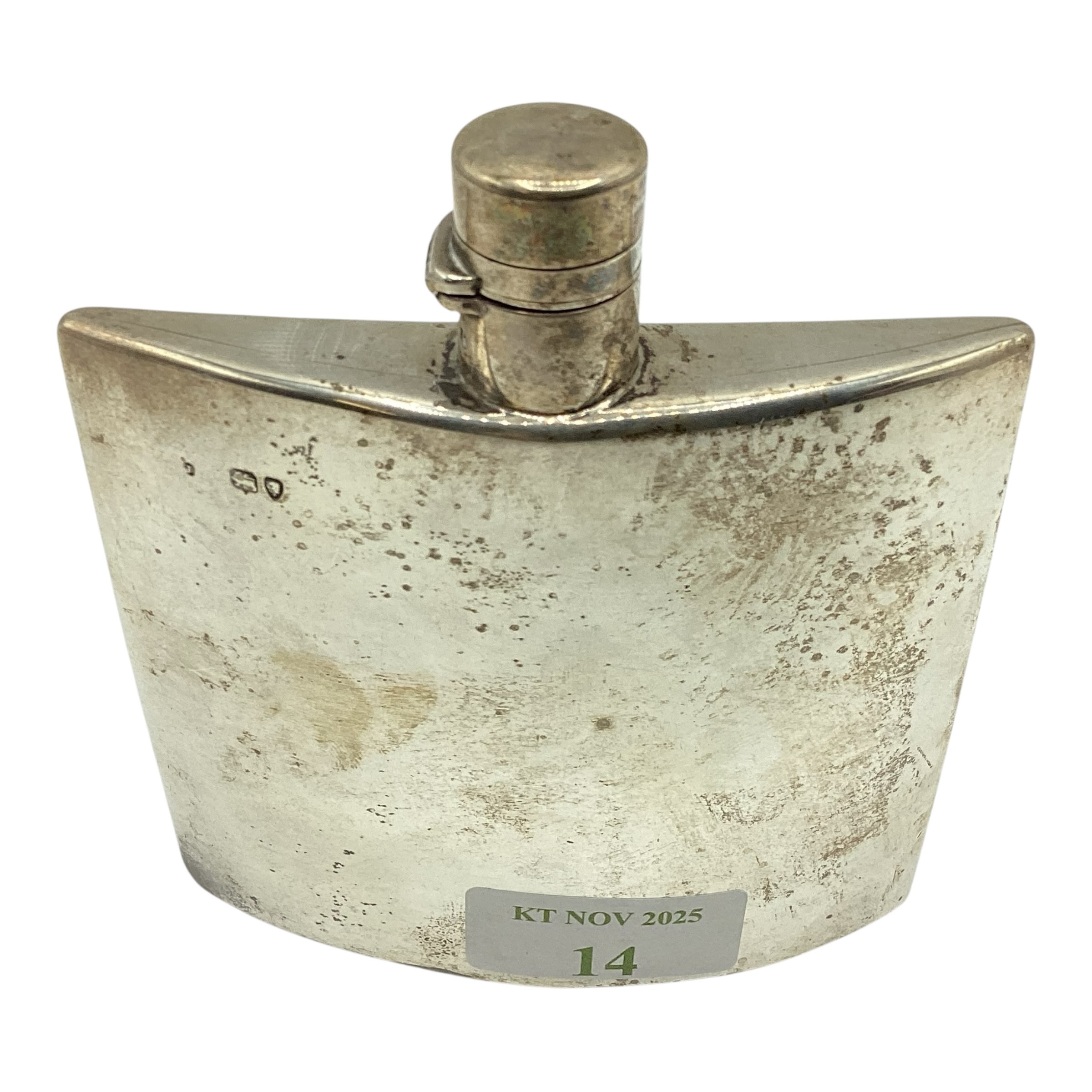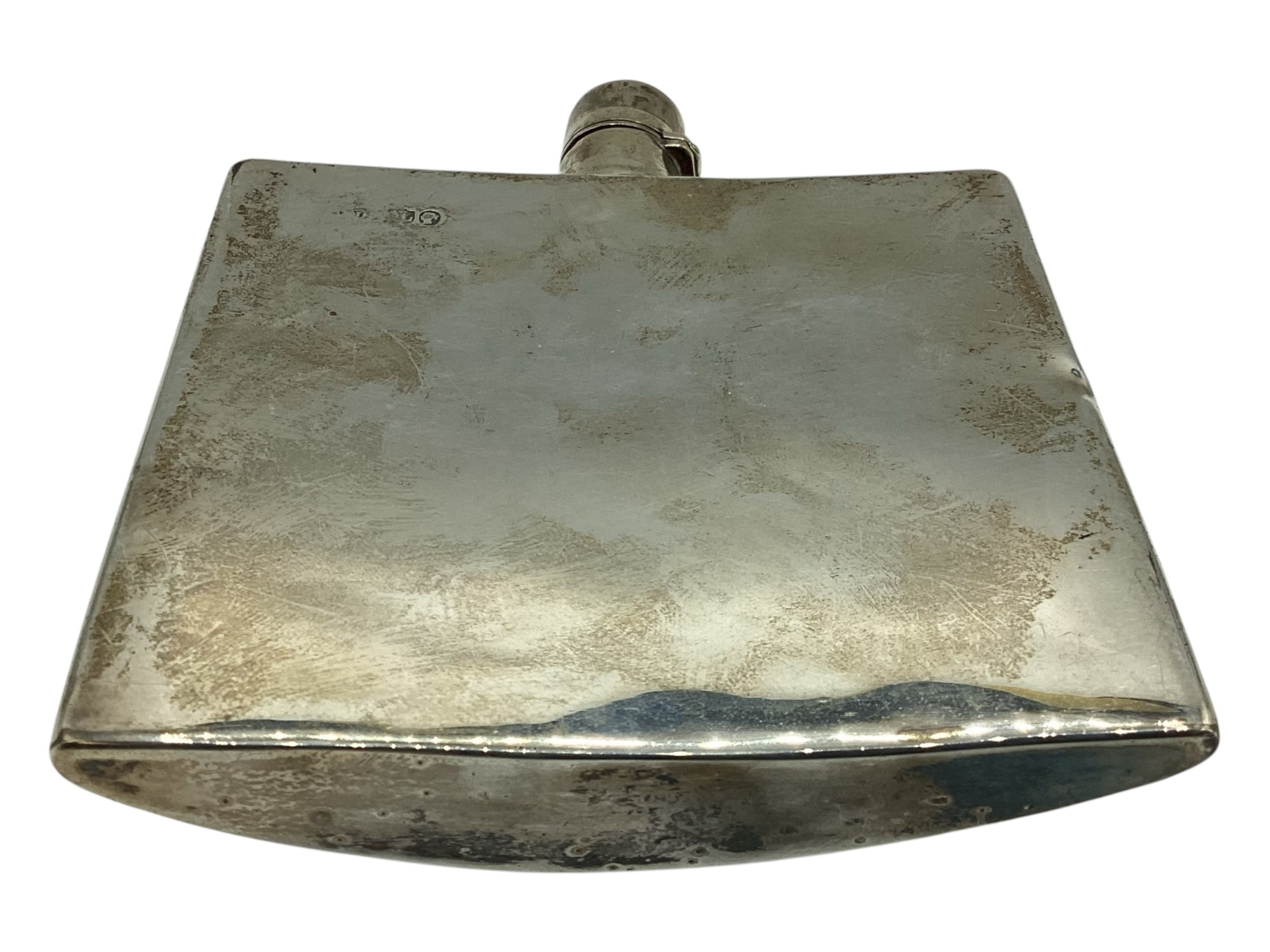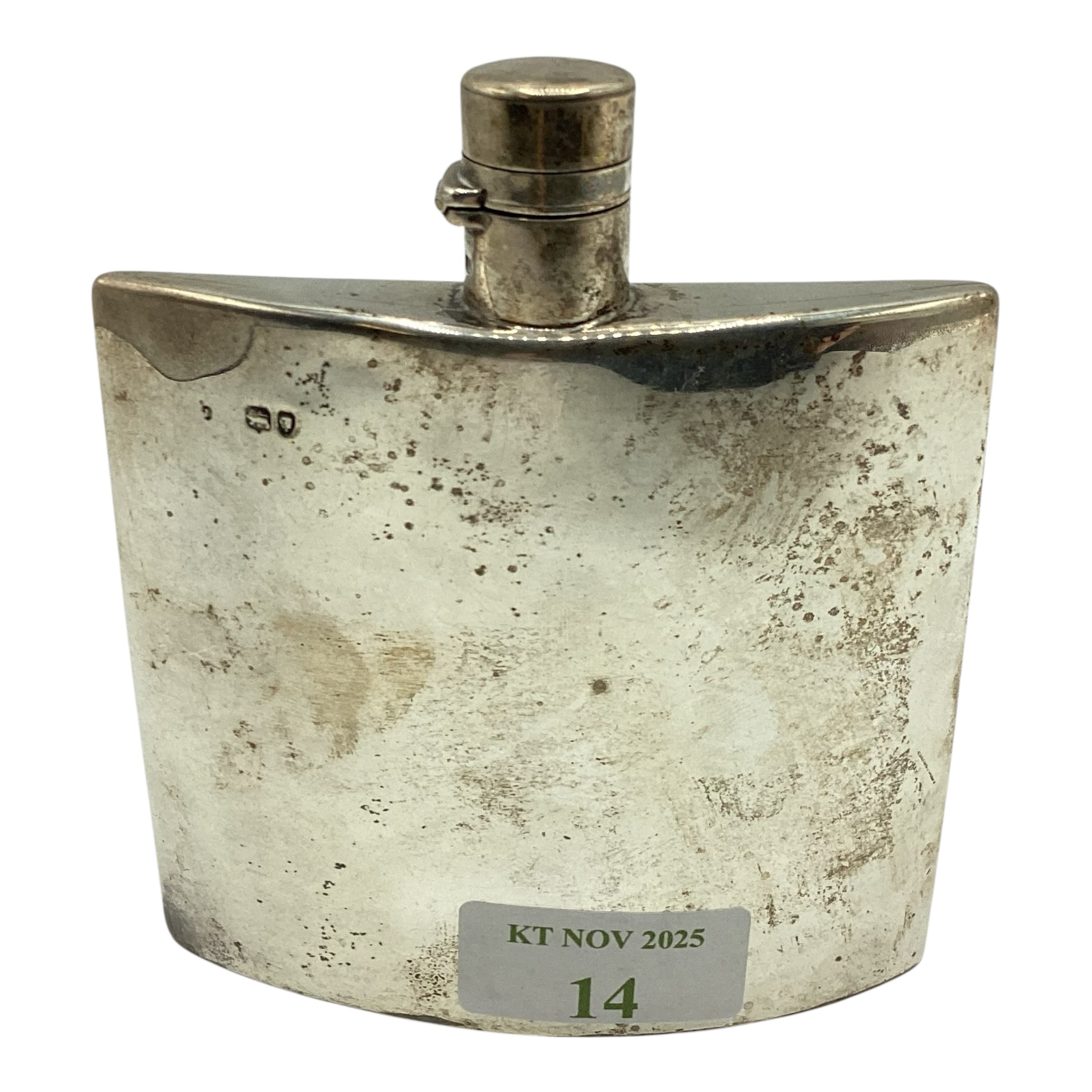 A Victorian sterling silver hip flask, marks worn. Gross weight 128g
