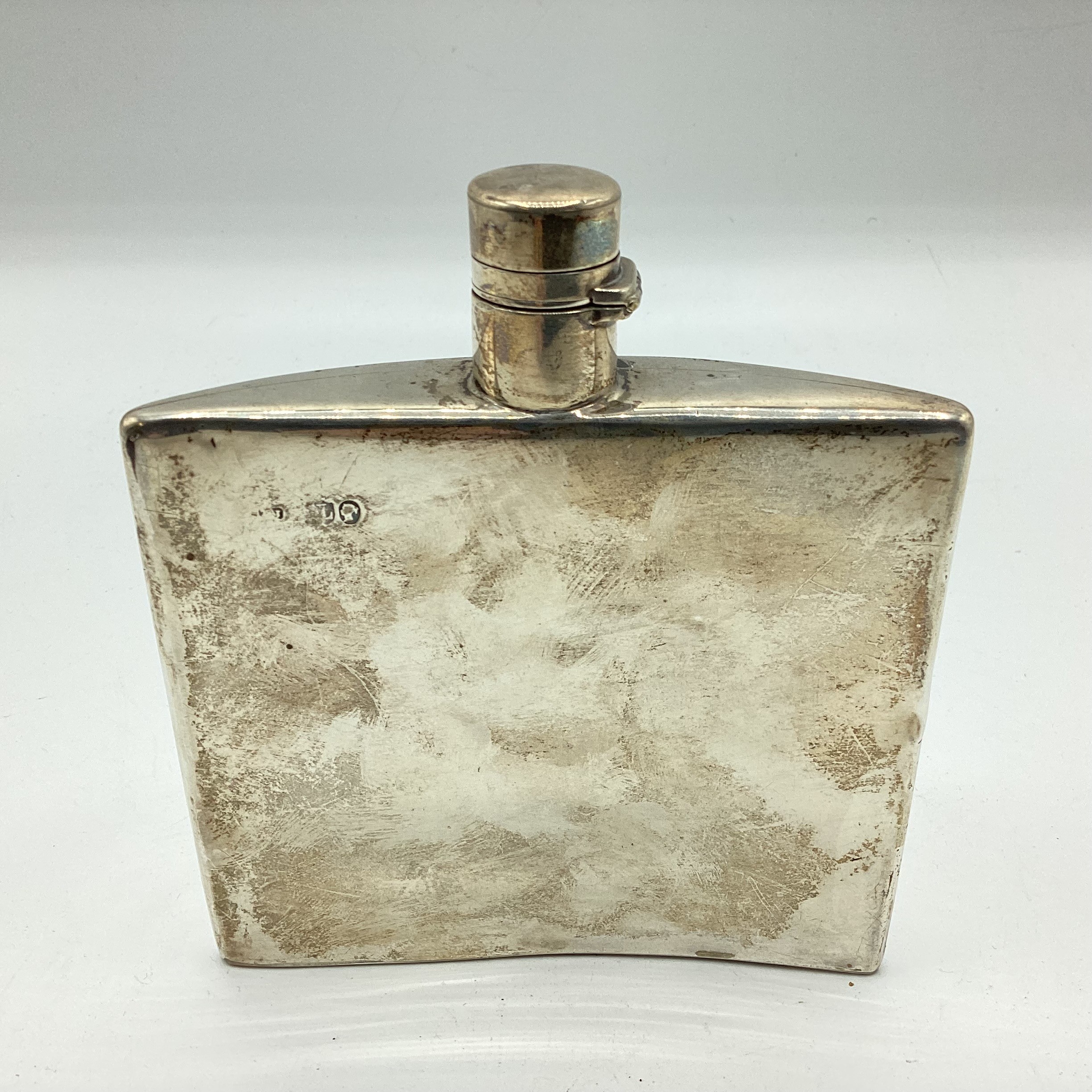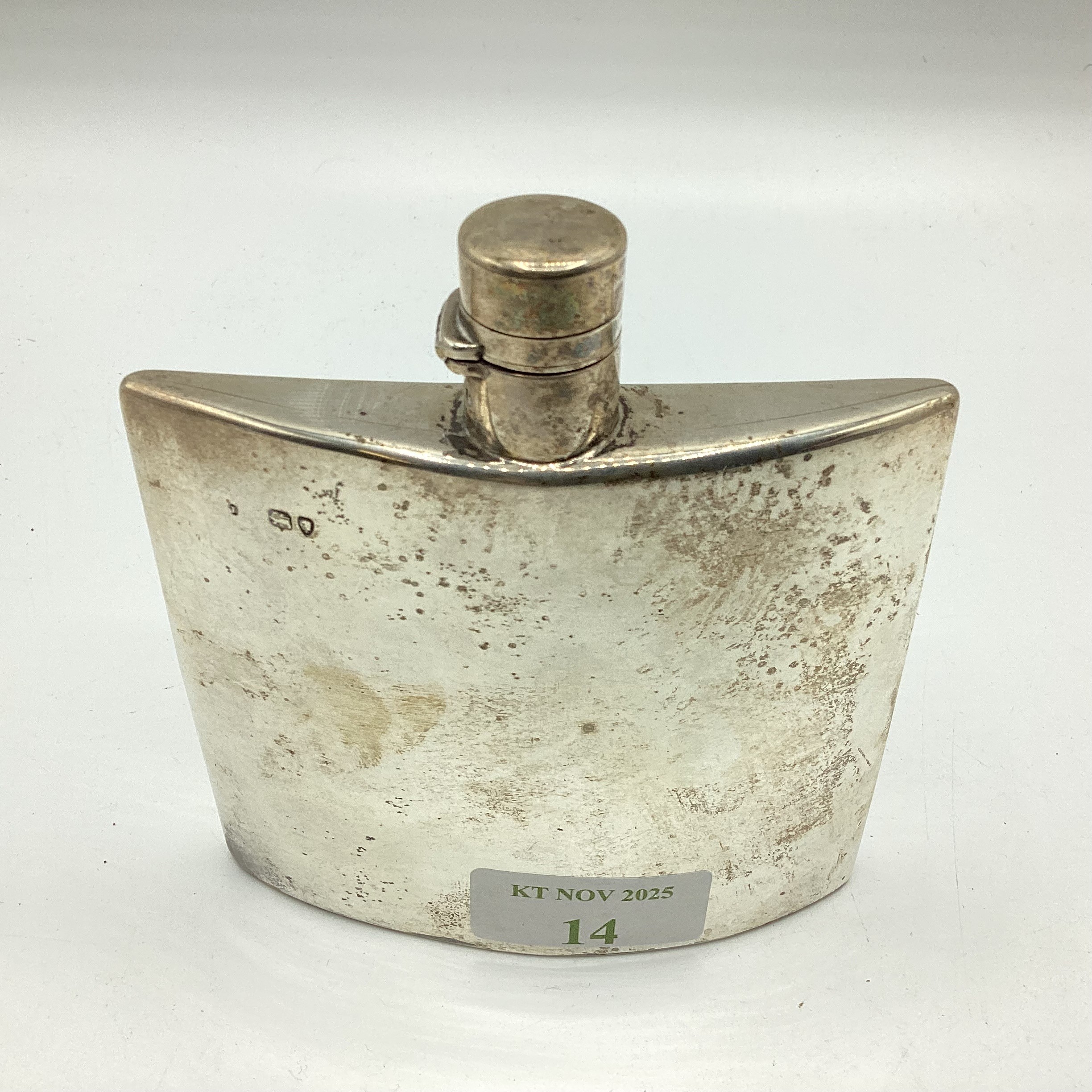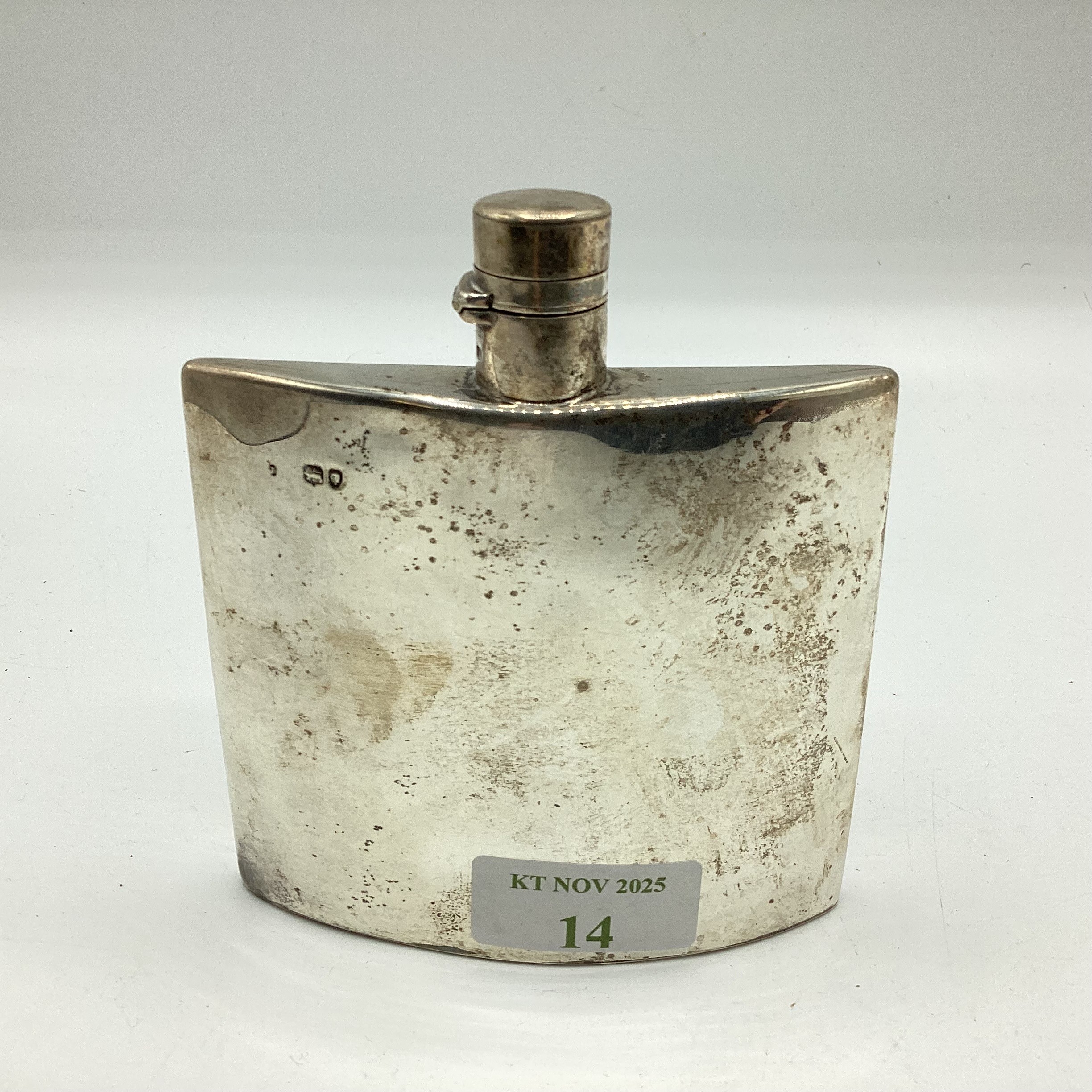 A Victorian sterling silver hip flask, marks worn. Gross weight 128g