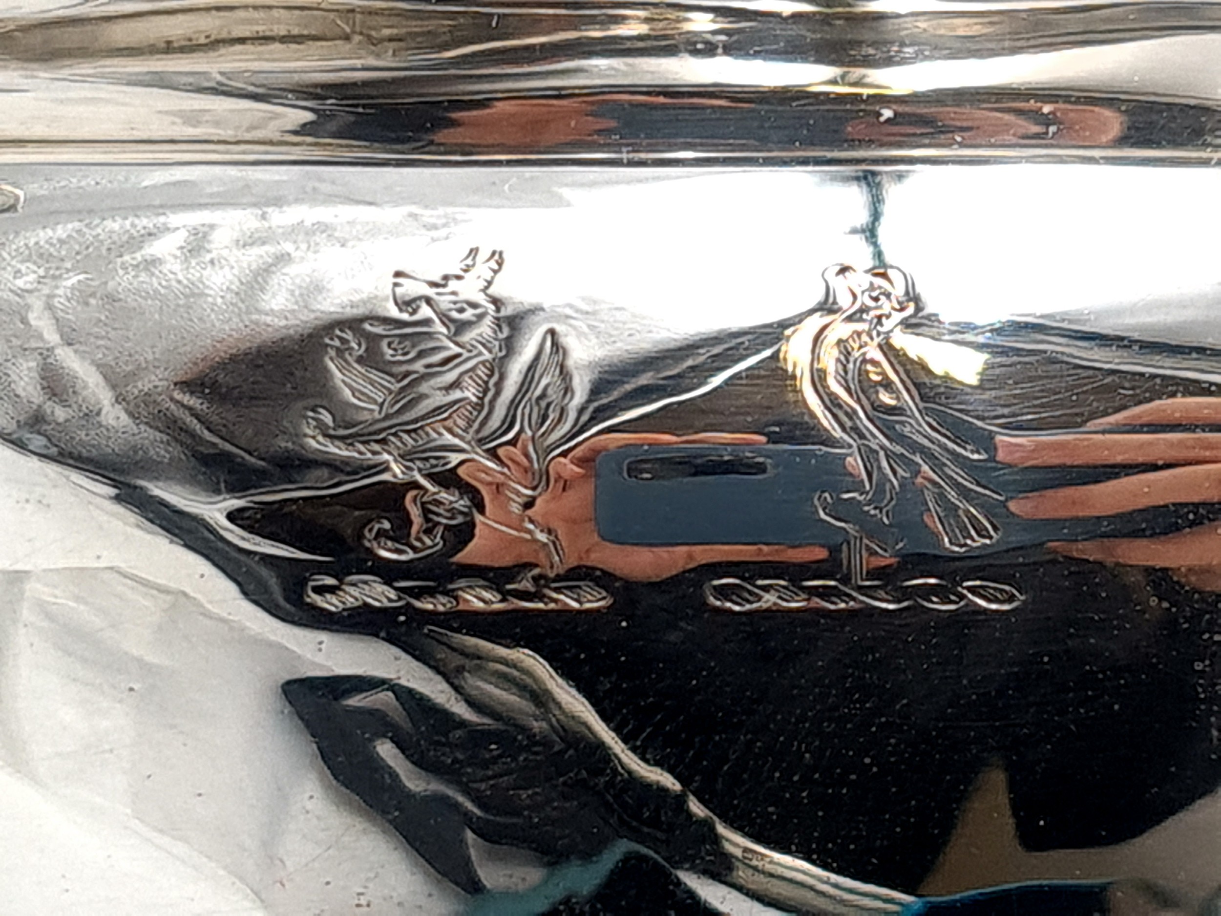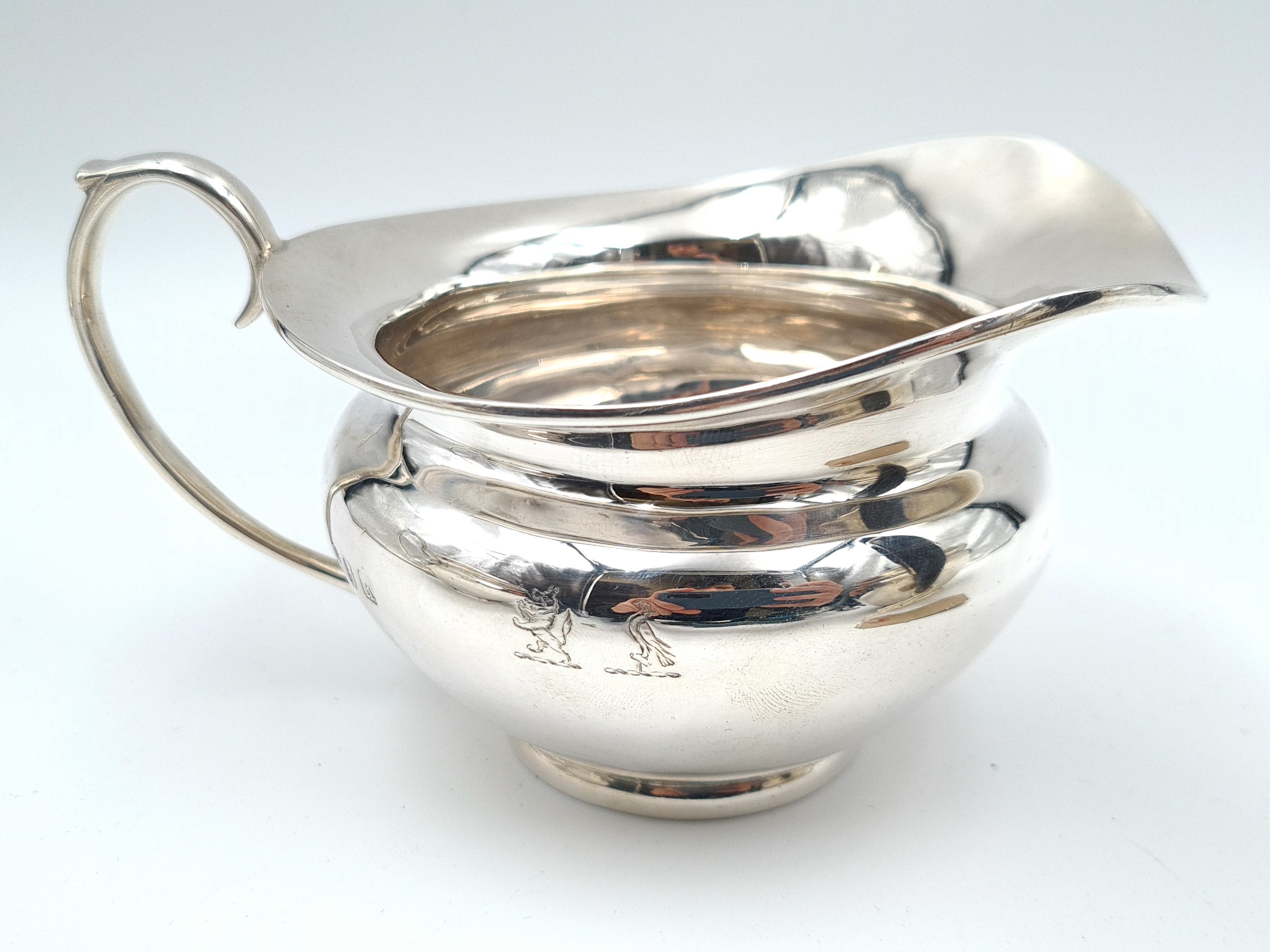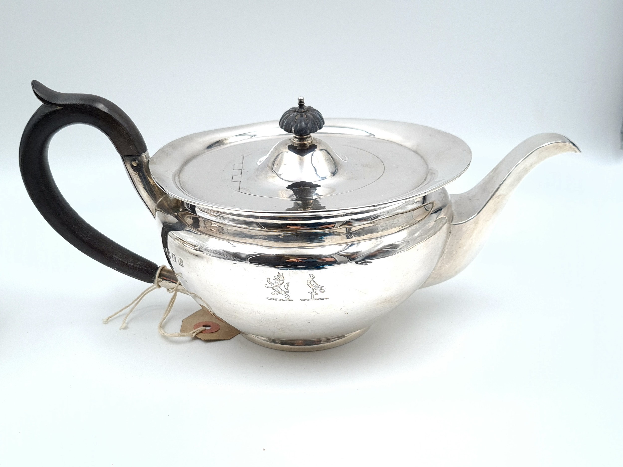 Super Star Lot: A brilliant and rare antique Irish silver three piece tea set by Thomas West of Dublin, circa 1912. This collection comprises of a very large circular bodied tea pot, with a prominent spout and ebonised "flying C" handle. Together with a dual handled large sugar bowl and a creamer jug with a scroll handle. These example each feature clean, clear hallmarks and are in excellent condition, Total weight of Irish silver: An outstanding 1230 grams. Tea set of exceptional quality. The following lots are is the remaining stock of notable antique jewellery dealer, Who retired during Covid, which we are delighted to bring to market. Fabulous items. The dealer price on this was €1495