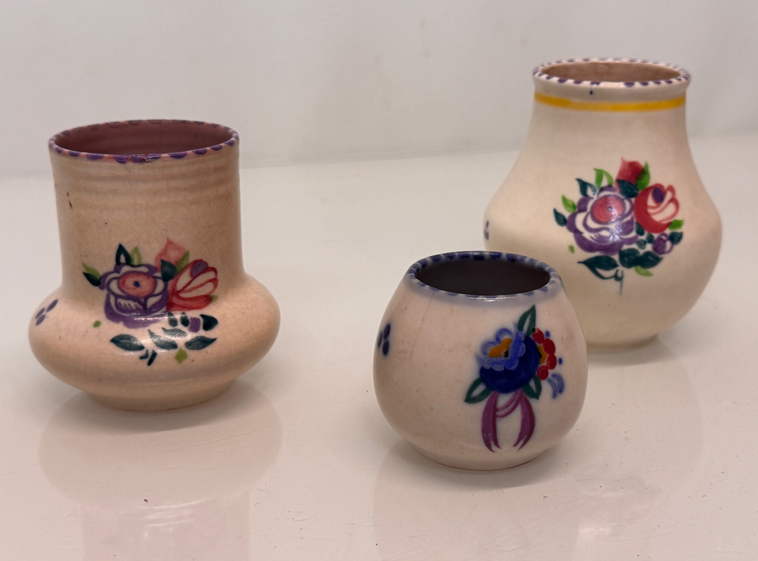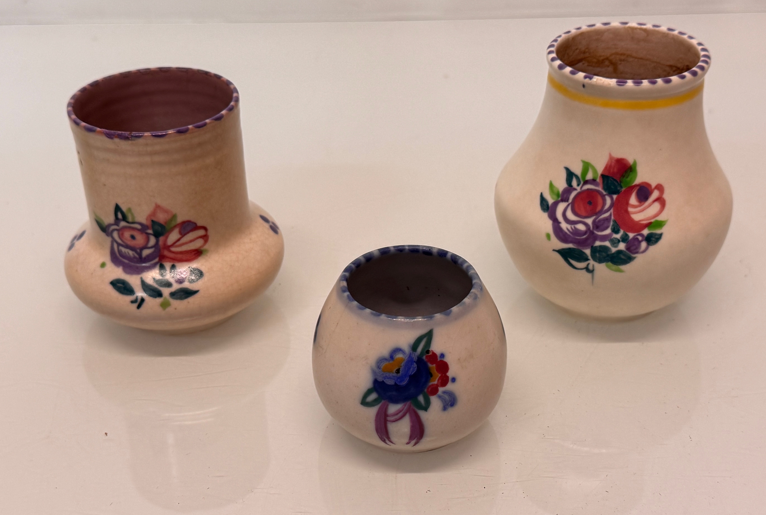 Mid century english designer ceramics, Poole pottery, three vases.This lot is available for in-house shipping