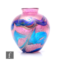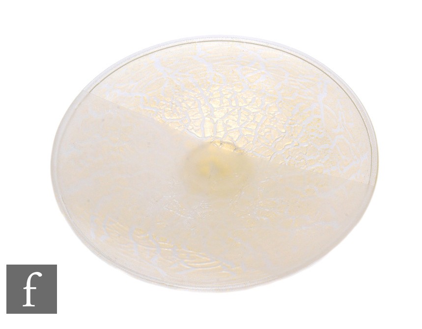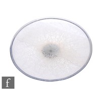Timothy Harris - Isle of Wight - A contemporary studio Crizzle & Cameo glass plate, of circular footed form, opaque lizard cut band of crizzled ground with silver foil inclusions within black border, engraved signature and dated 2005, diameter 27cm.