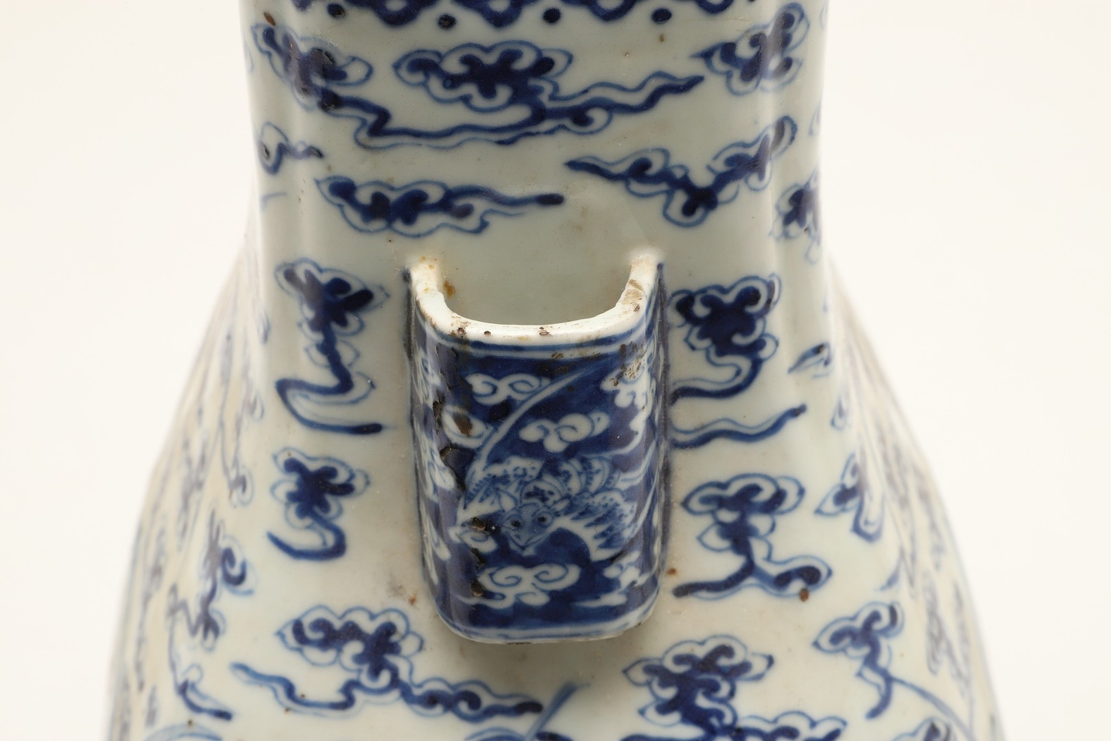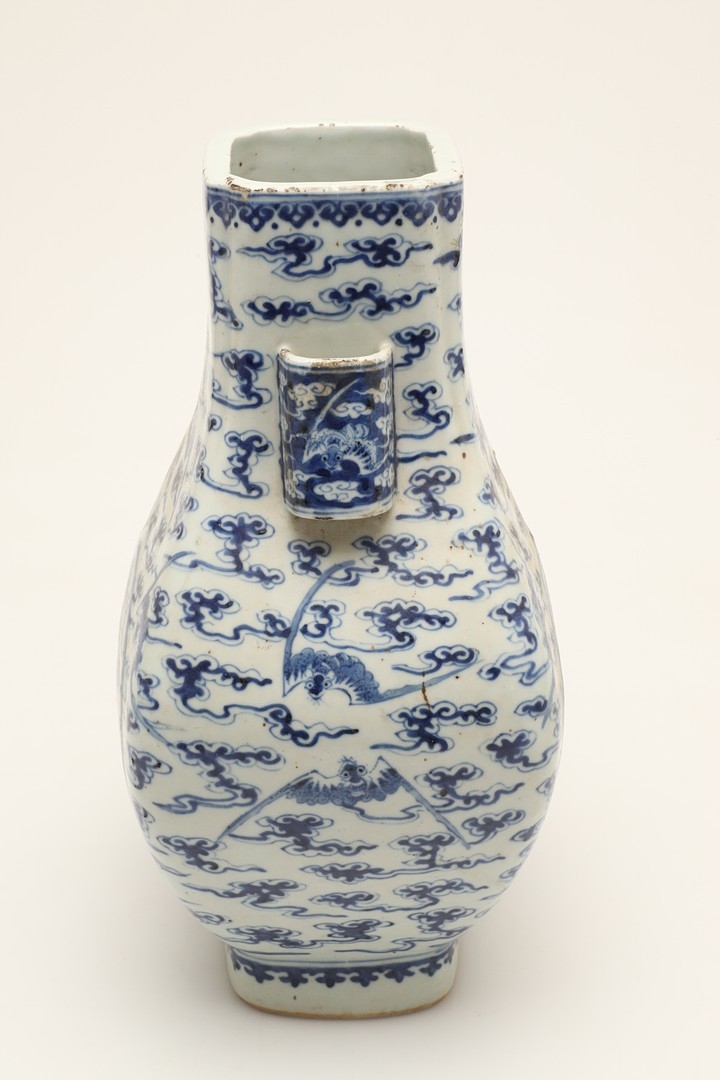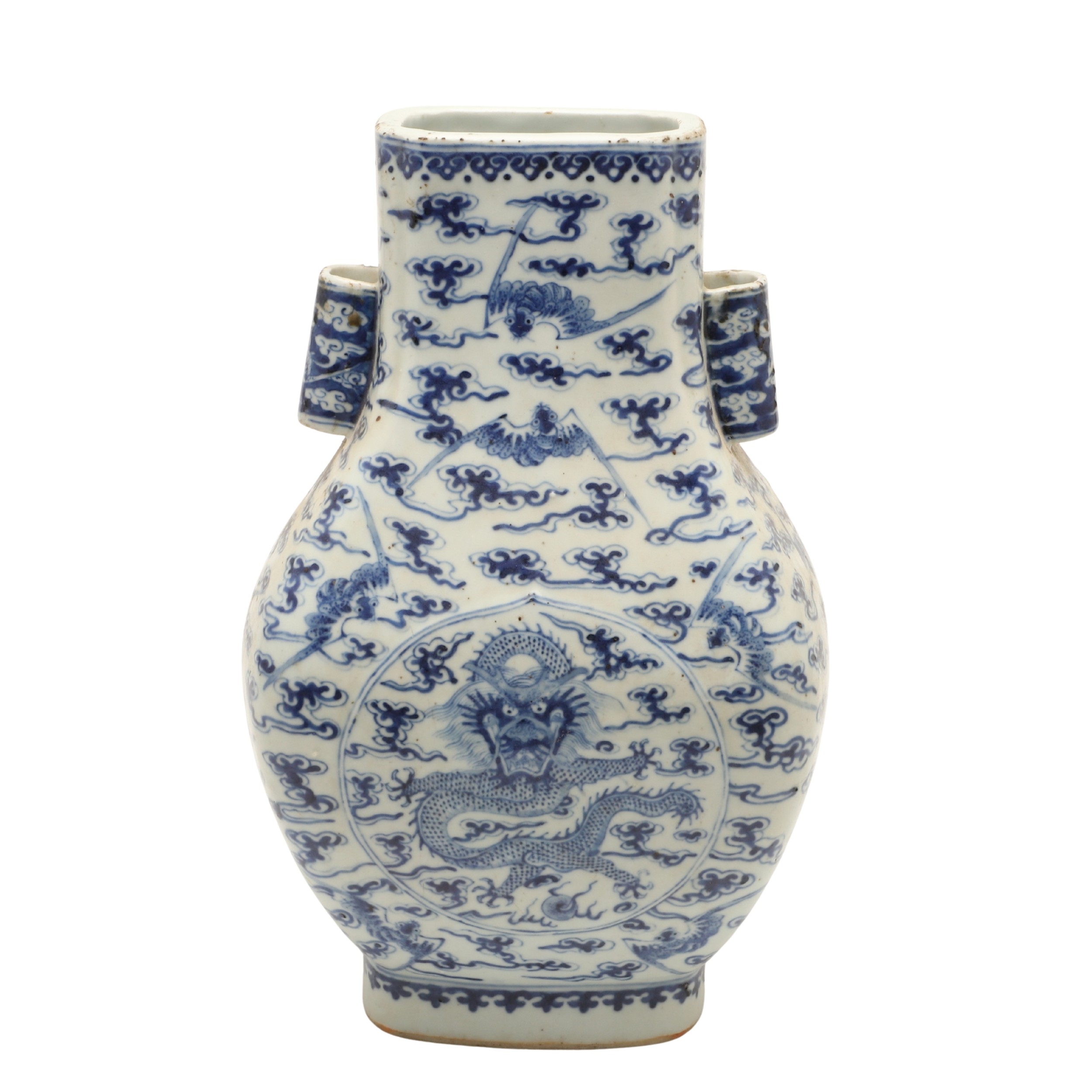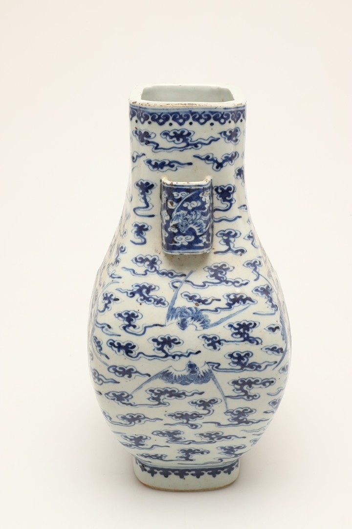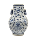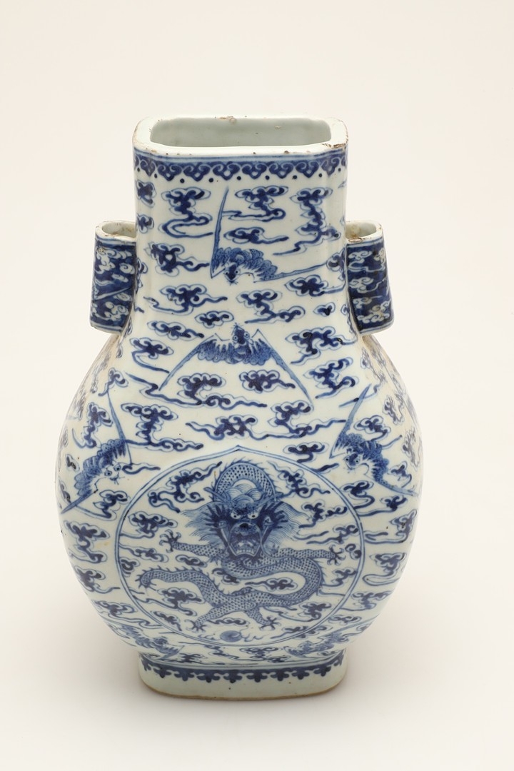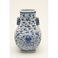 CHINESE BLUE & WHITE HU VASE - GUANGXU PERIOD. Guangxu mark and period, the Hu shaped vase painted with a Dragon and eight bat design. With character marks to the base, 32cms high.