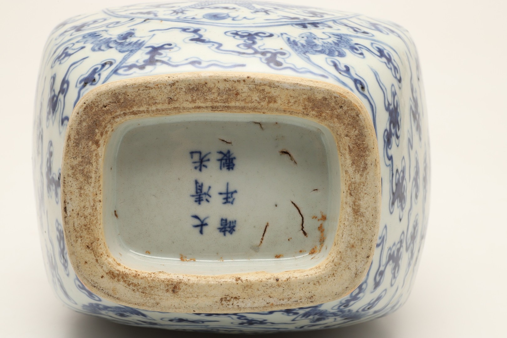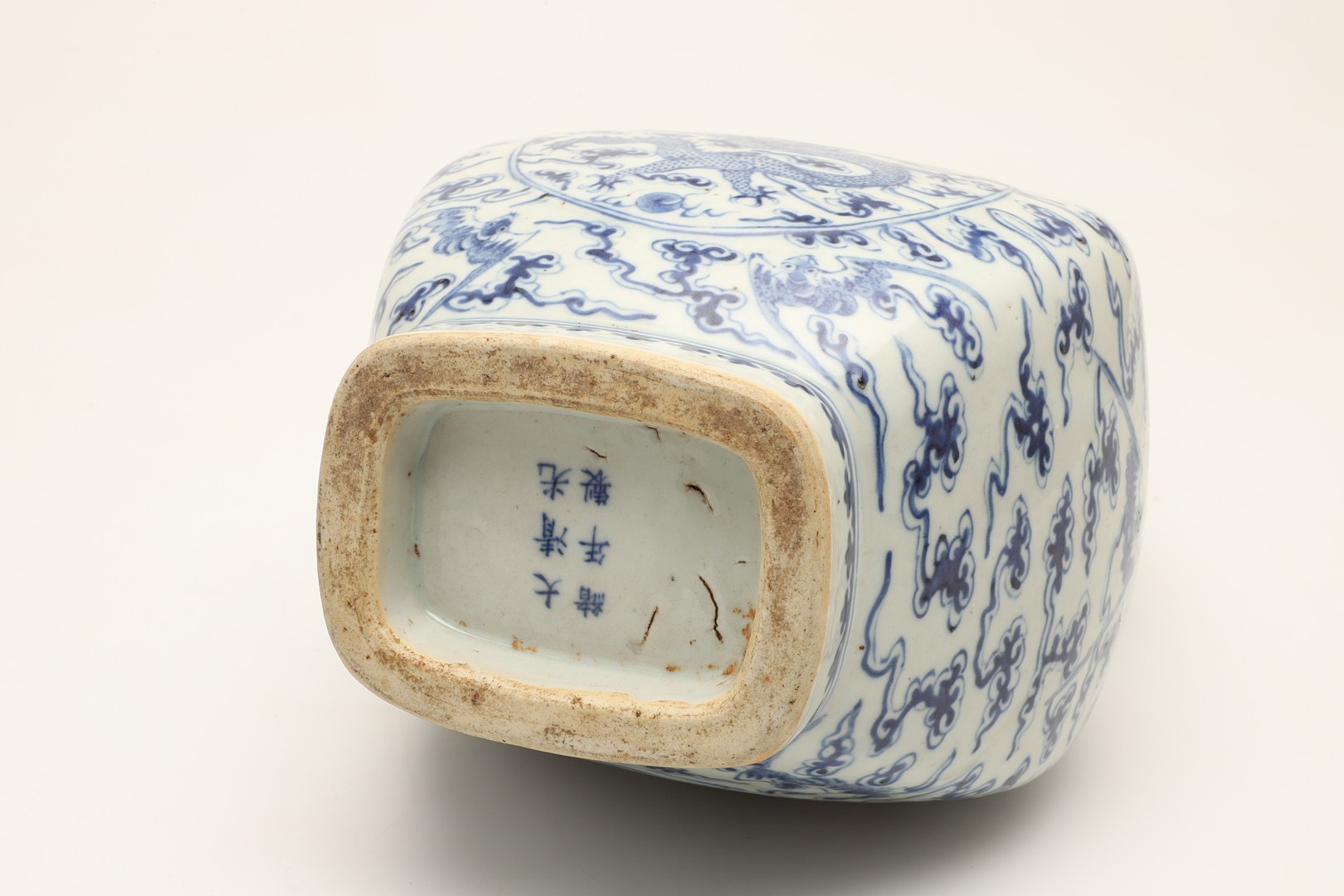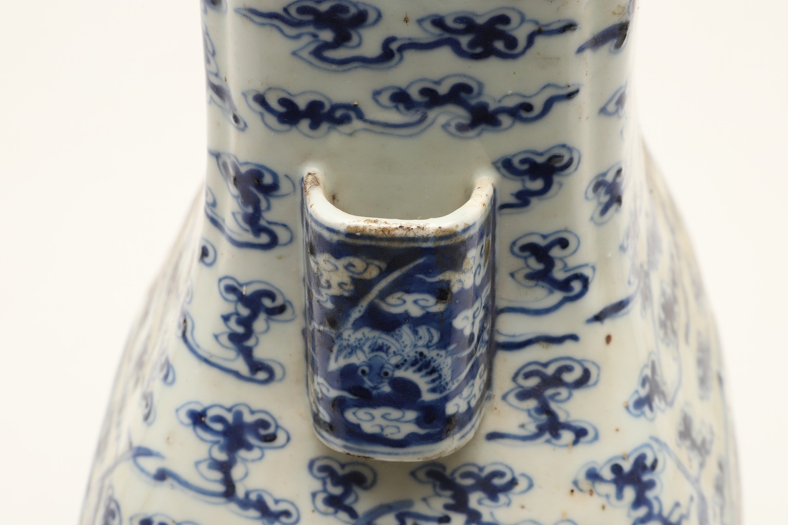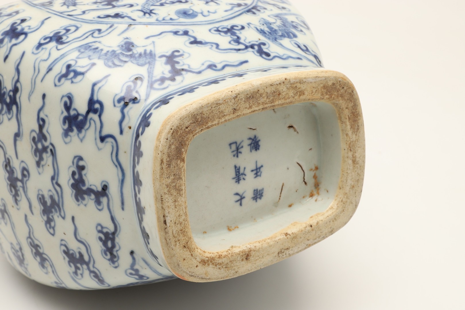 CHINESE BLUE & WHITE HU VASE - GUANGXU PERIOD. Guangxu mark and period, the Hu shaped vase painted with a Dragon and eight bat design. With character marks to the base, 32cms high.