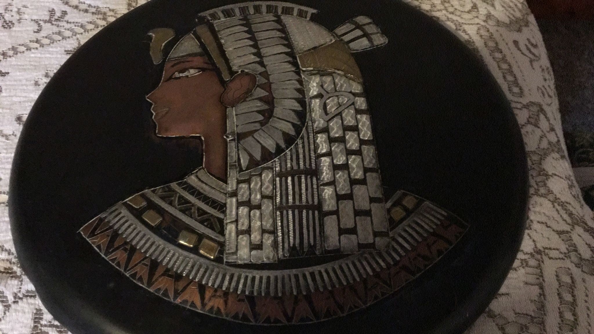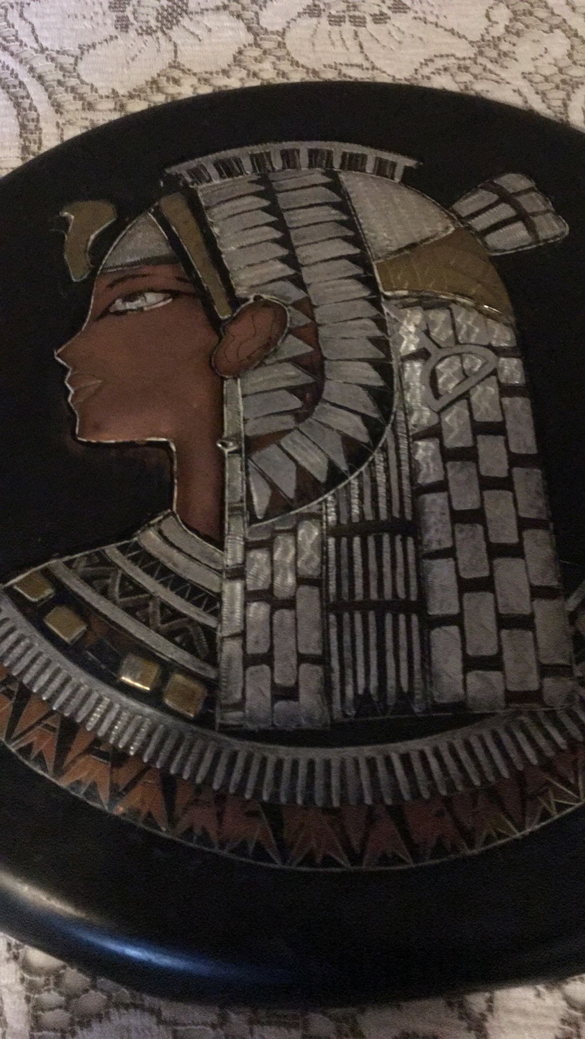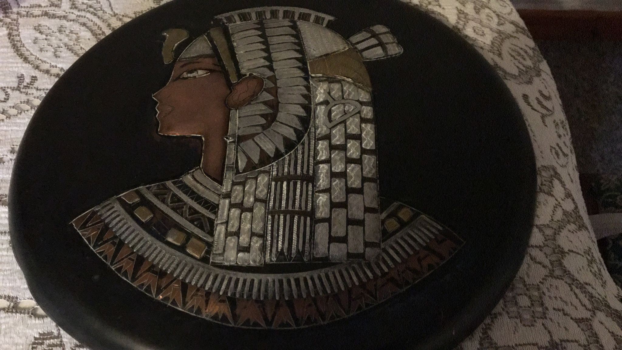 Unusual metal wall hanging plaque. Vintage Egyptian design, piece