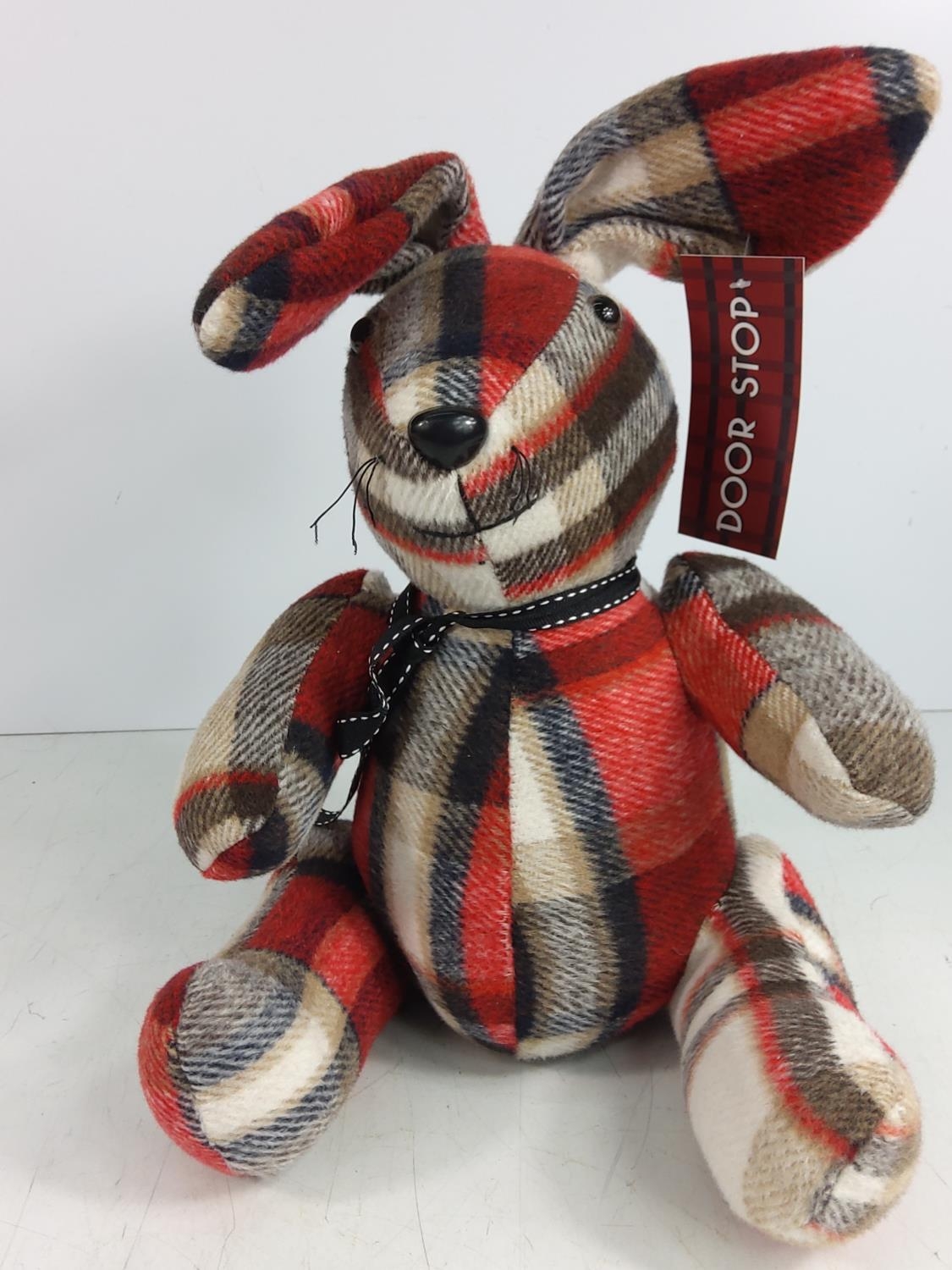 Plush tartan doorstop