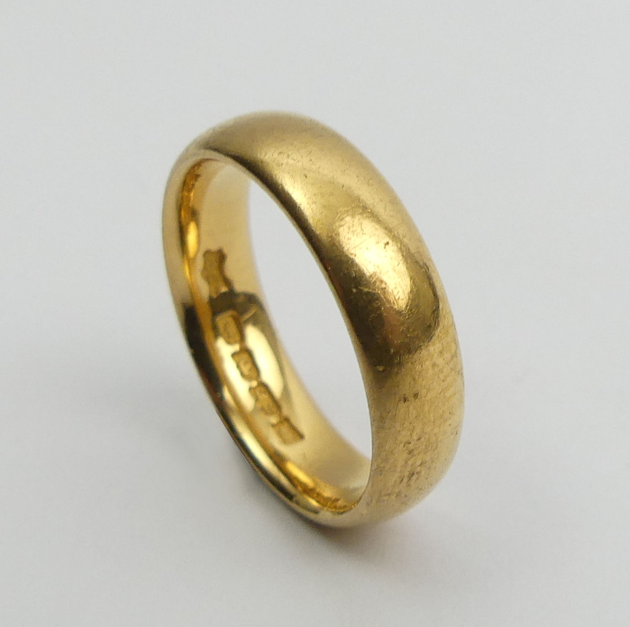 22ct gold wedding ring, London 1921, 7.8 grams, Size N, 5.1mm wide. UK Postage £12