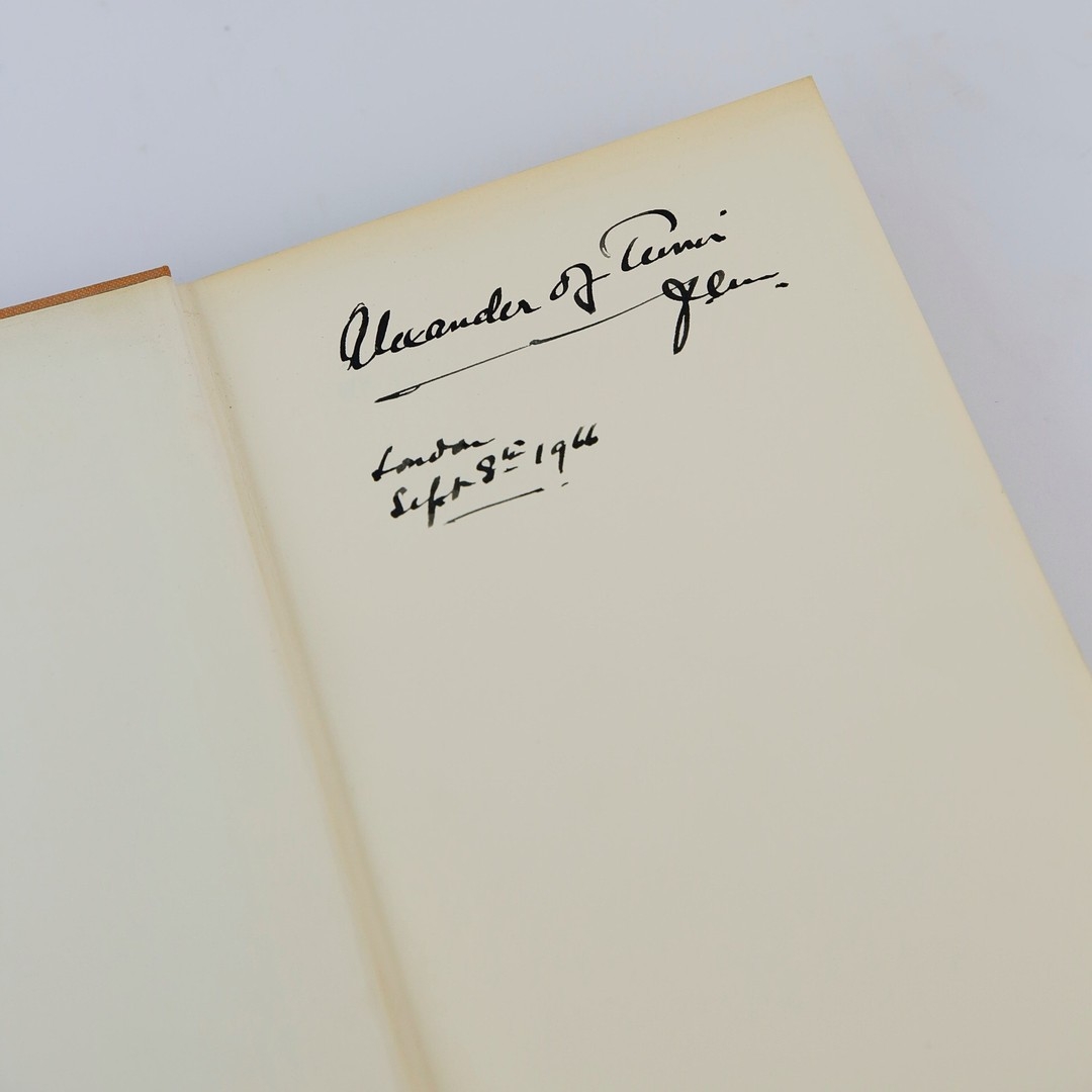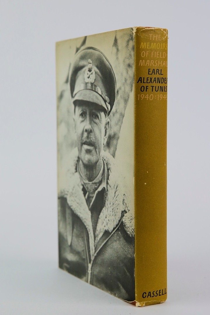 EARL ALEXANDER. THE MEMOIRS OF FIELD-MARSHAL EARL ALEXANDER OF TUNIS 1940-1945, SIGNED 1ST ED. London: Cassell, 1962. First edition. Signed and dated to front flyleaf: "Alexander of Tunis / London / Sept 8th 1966". Original unclipped dust jacket. Publisher's orange cloth boards, gilt lettering to spine. Previous owner's bookstamp to front pastedown.