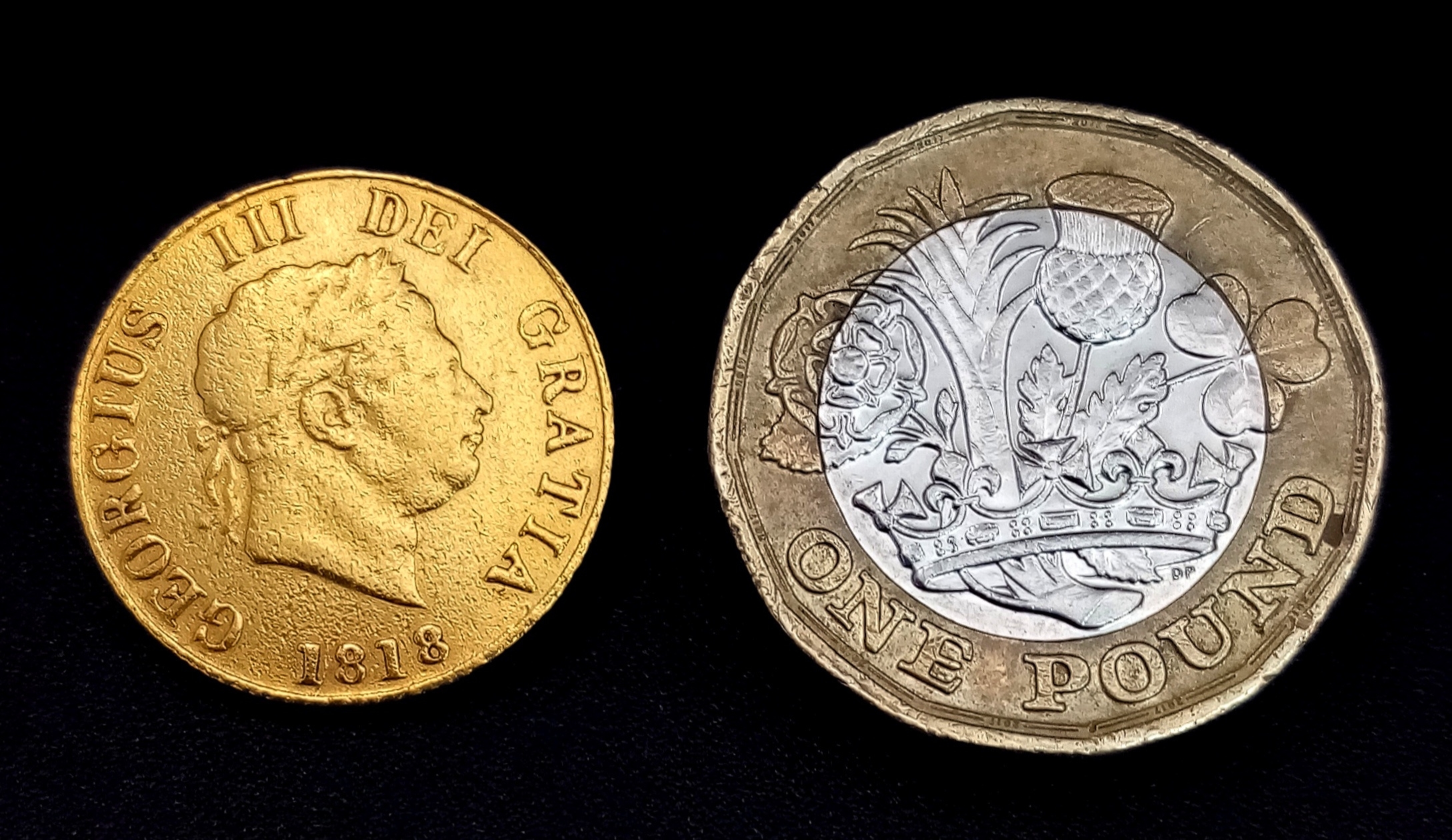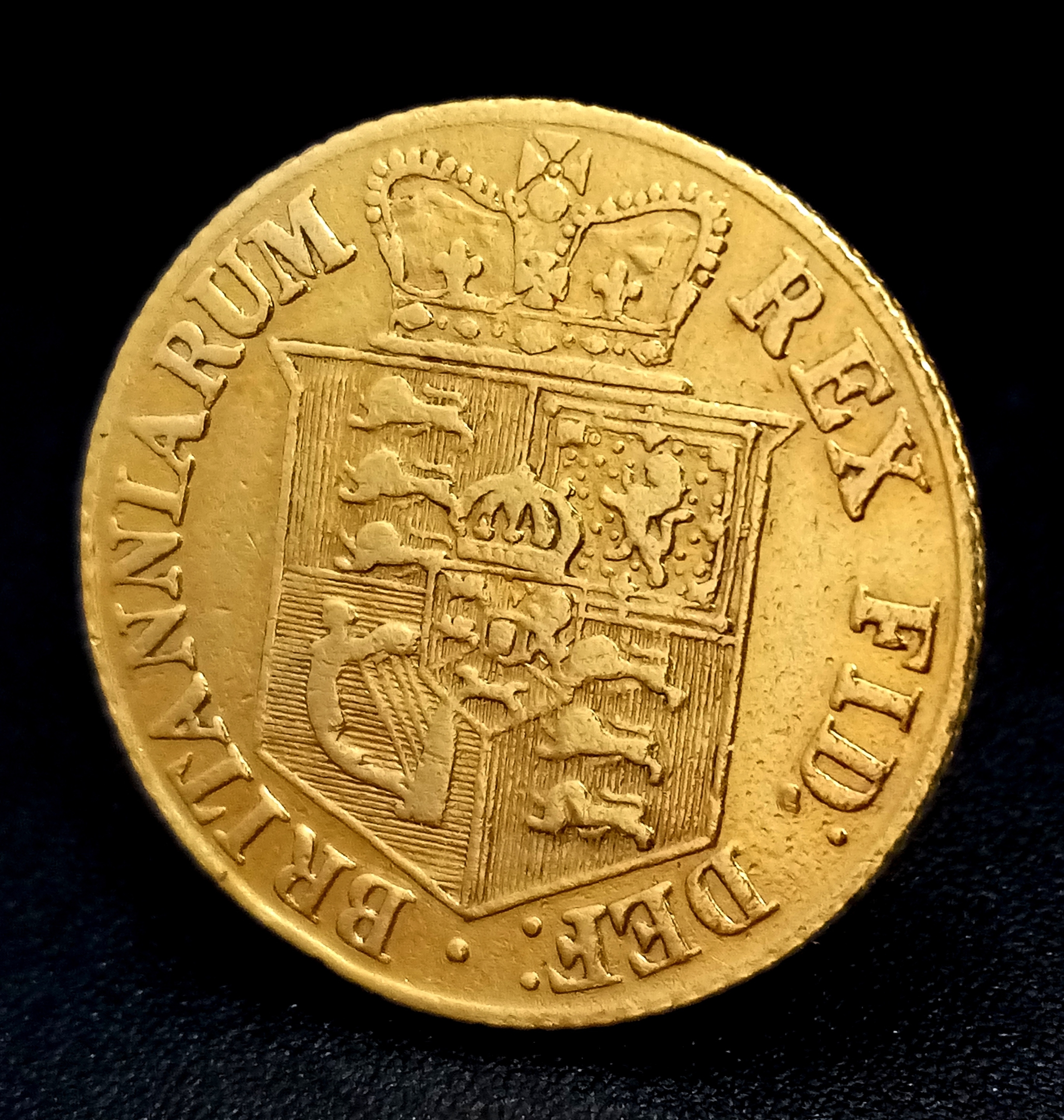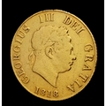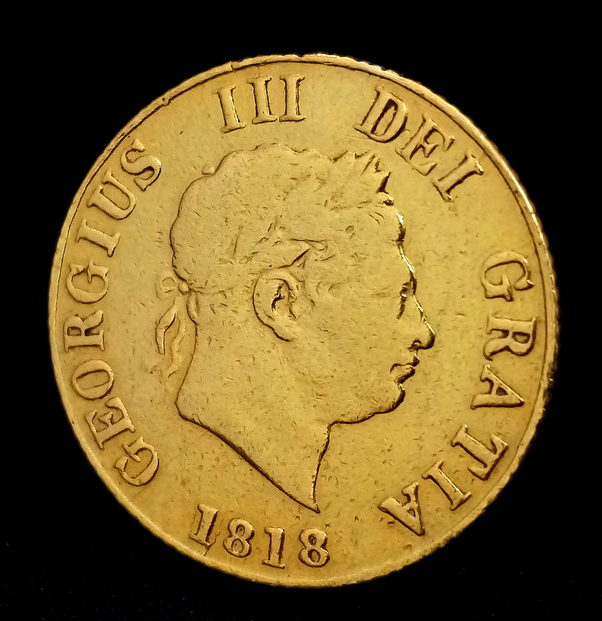 AN 1818, KING GEORGE III, LAUREATE HEAD, SHIELD BACK, HALF SOVEREIGN COIN. 22K Gold. EF. 9724 - 11