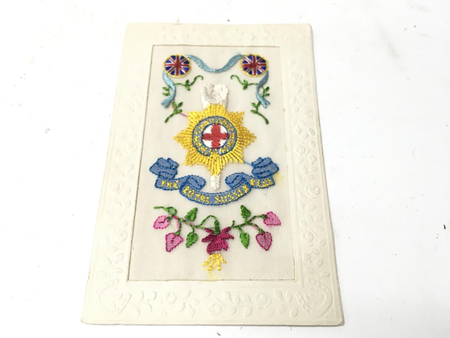 WW1 Hand Embroidered Card. The Royal Sussex Regiment.