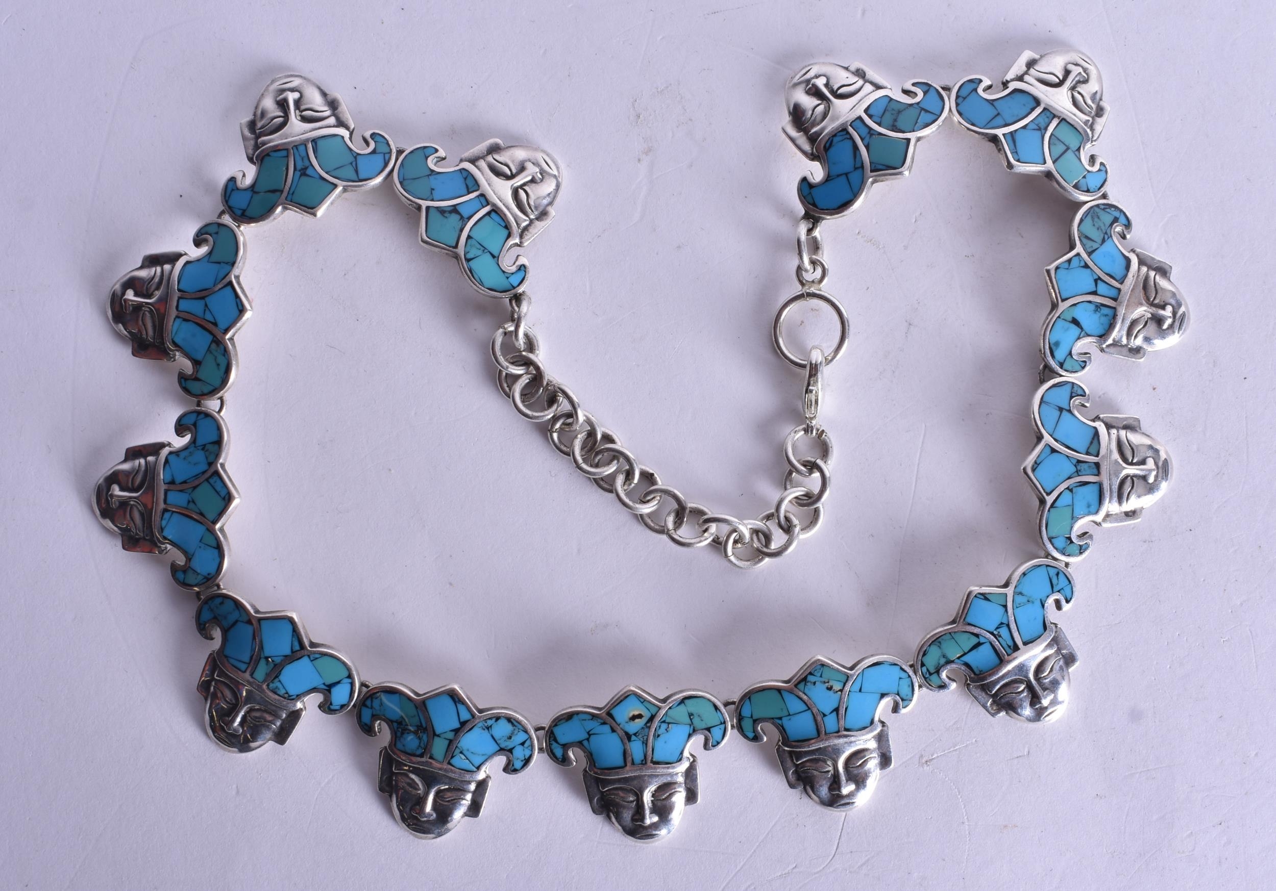 A SILVER AND TURQUOISE NECKLACE. 93 grams. 50 cm long.