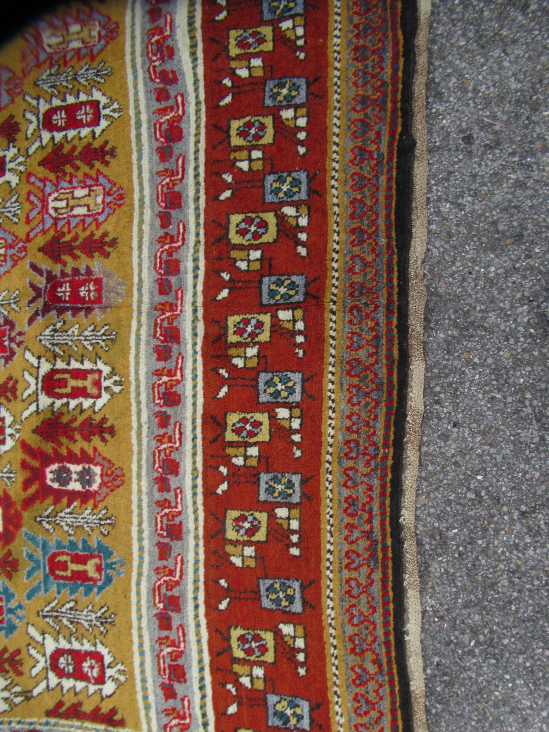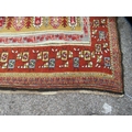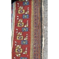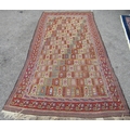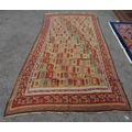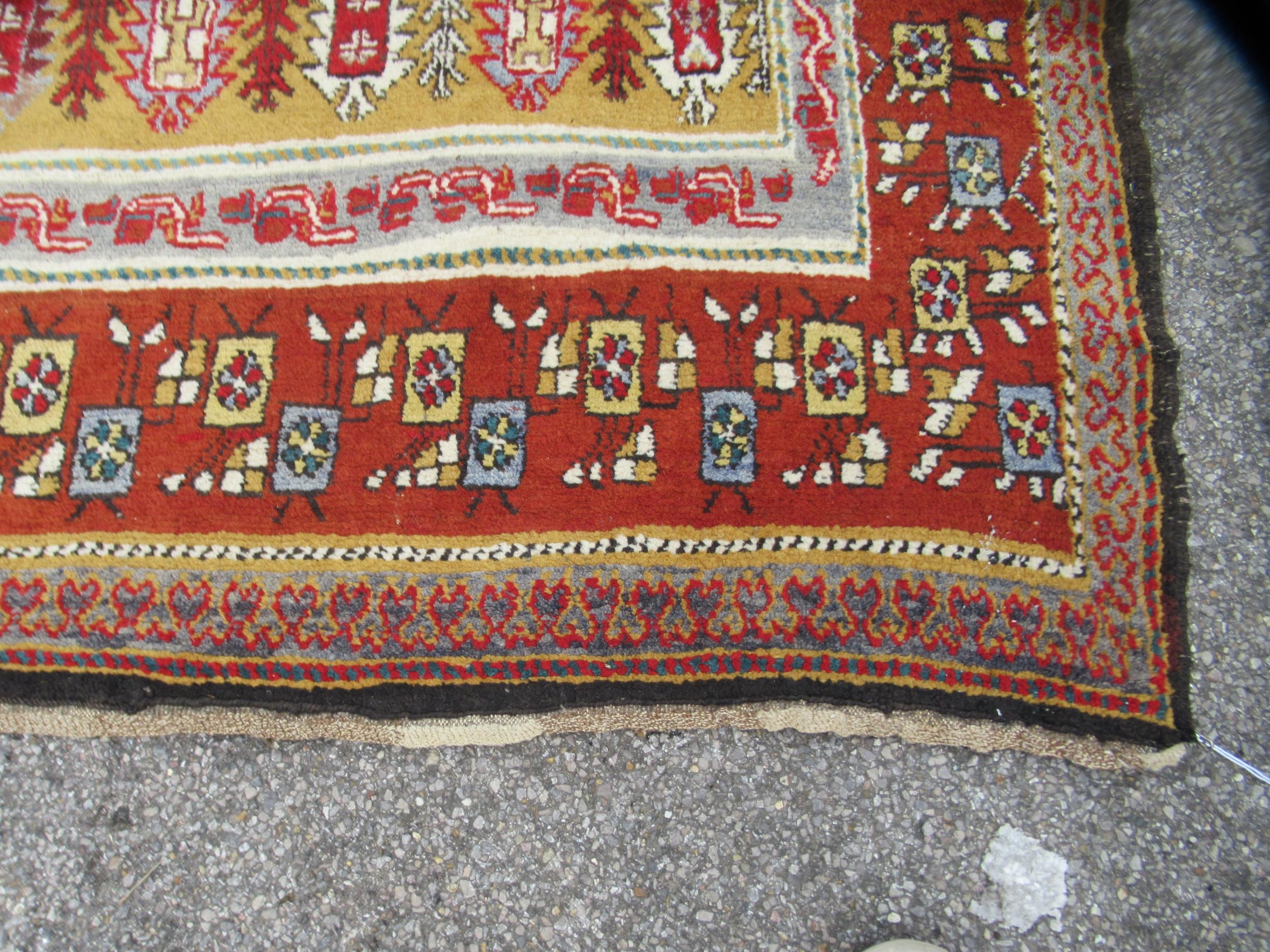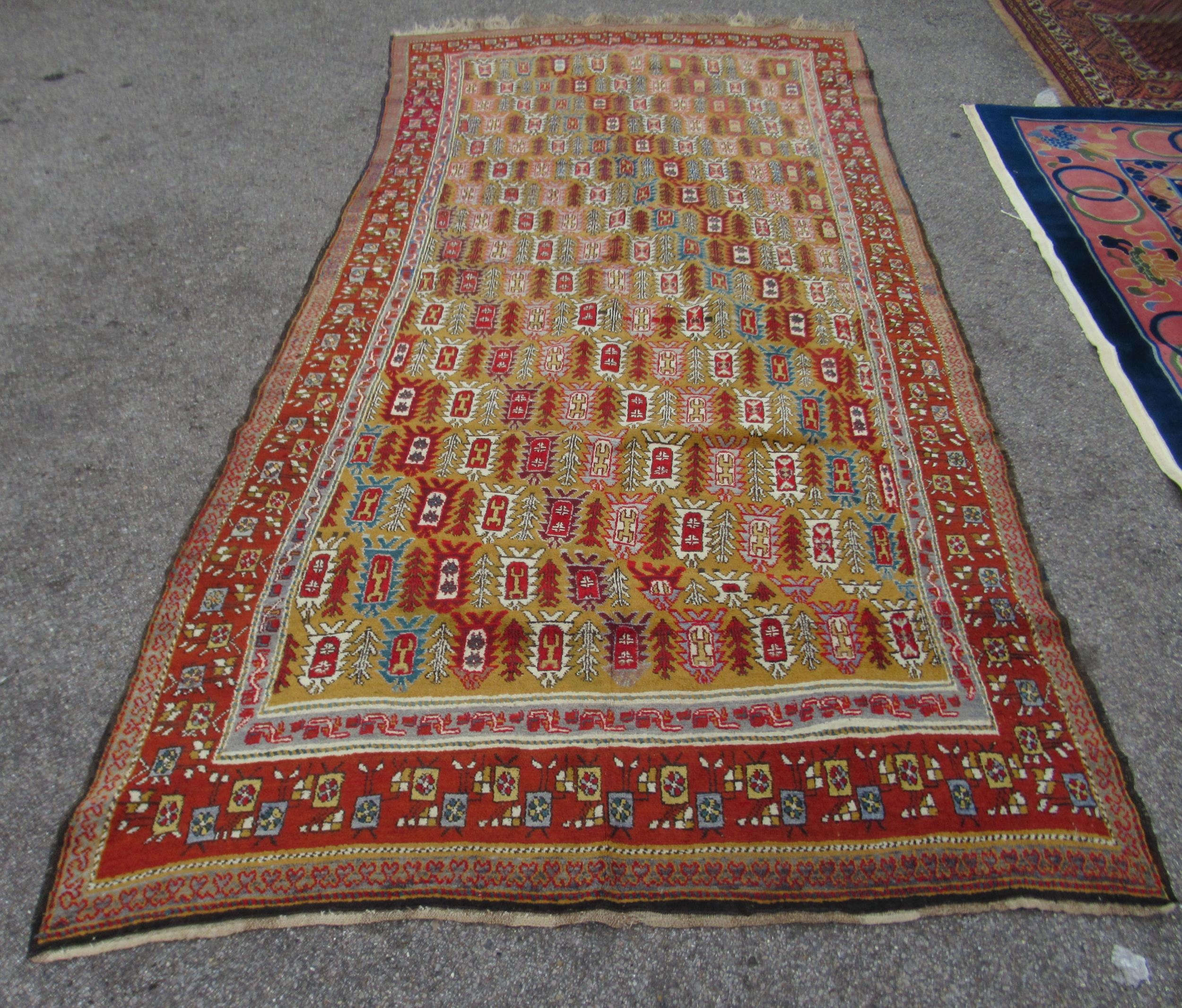A Persian rug, decorated with small tree inspired designs within a red border, on a multi-coloured ground 66" x 137"
