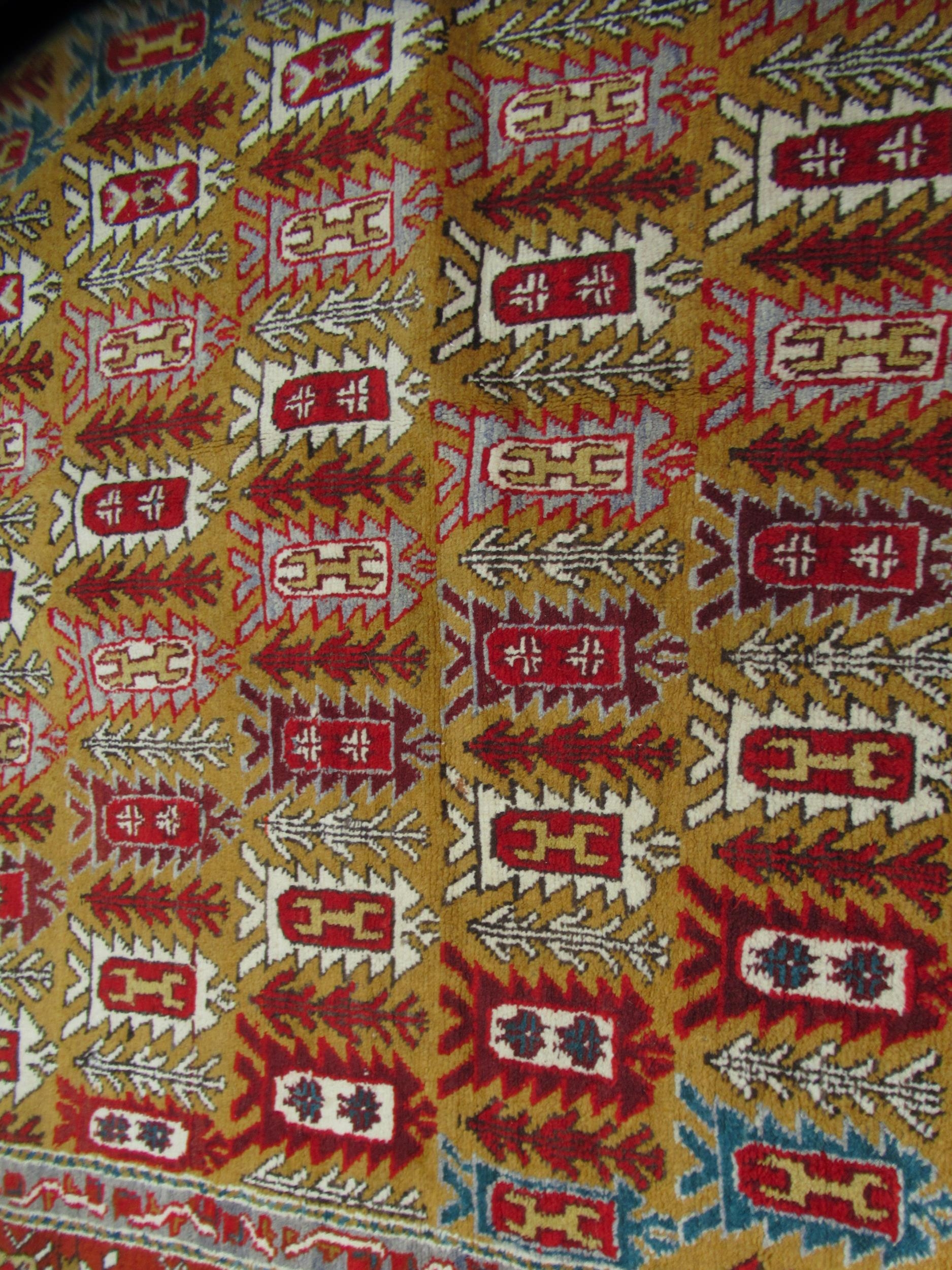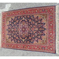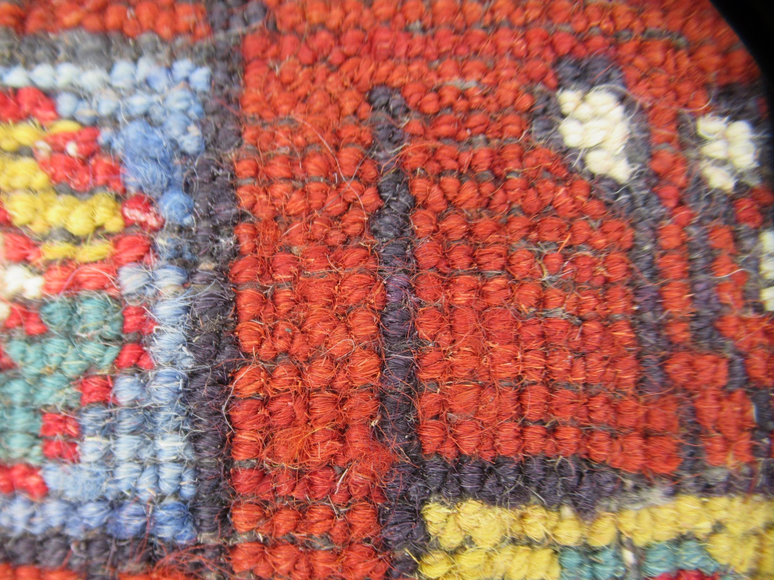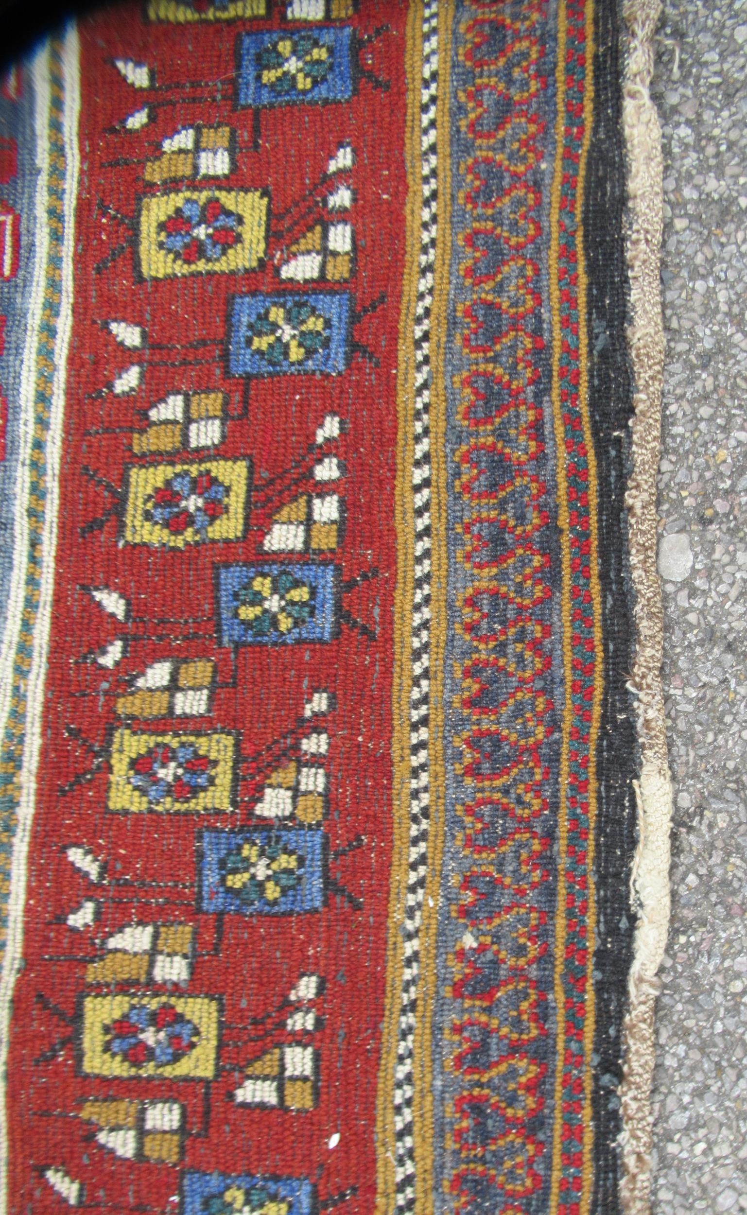 A Persian rug, decorated with small tree inspired designs within a red border, on a multi-coloured ground 66" x 137"