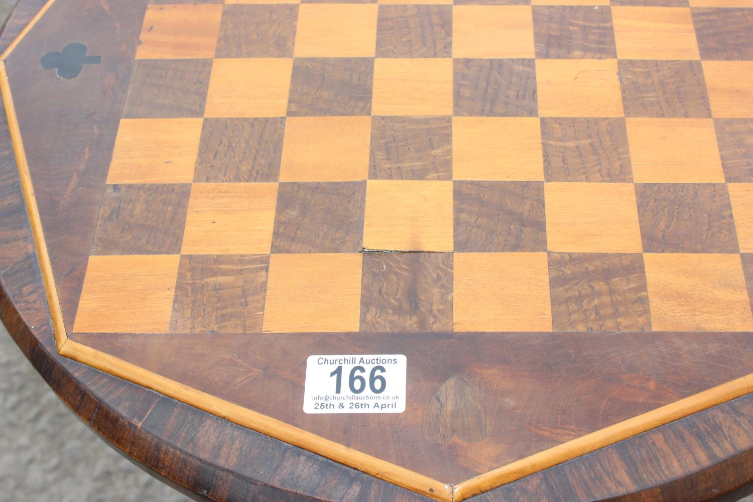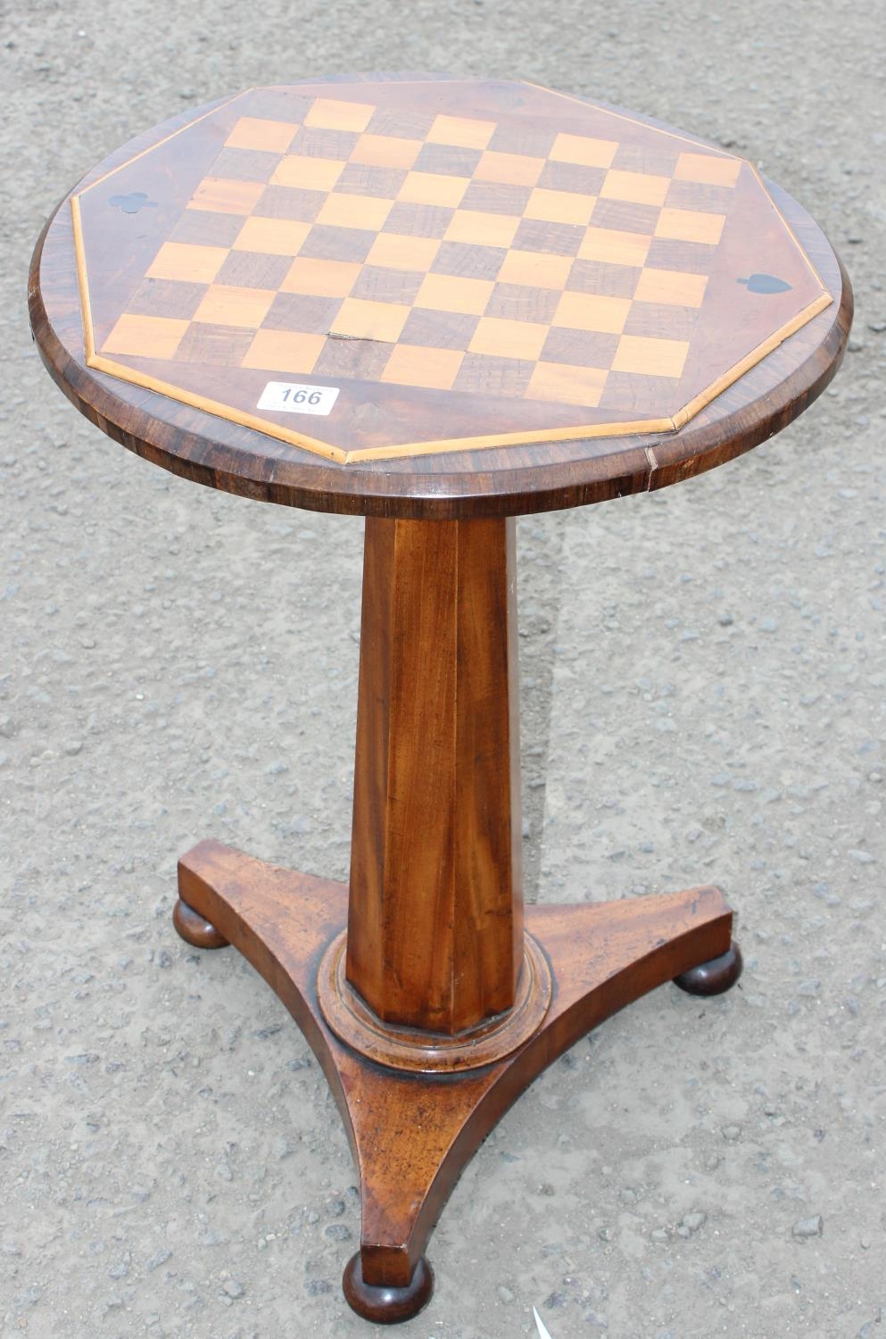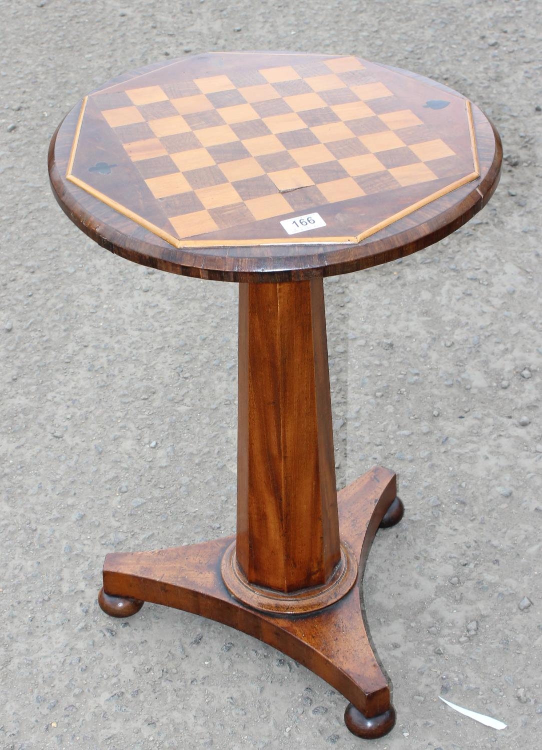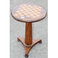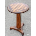Antique inlaid chess or games table on pedestal base