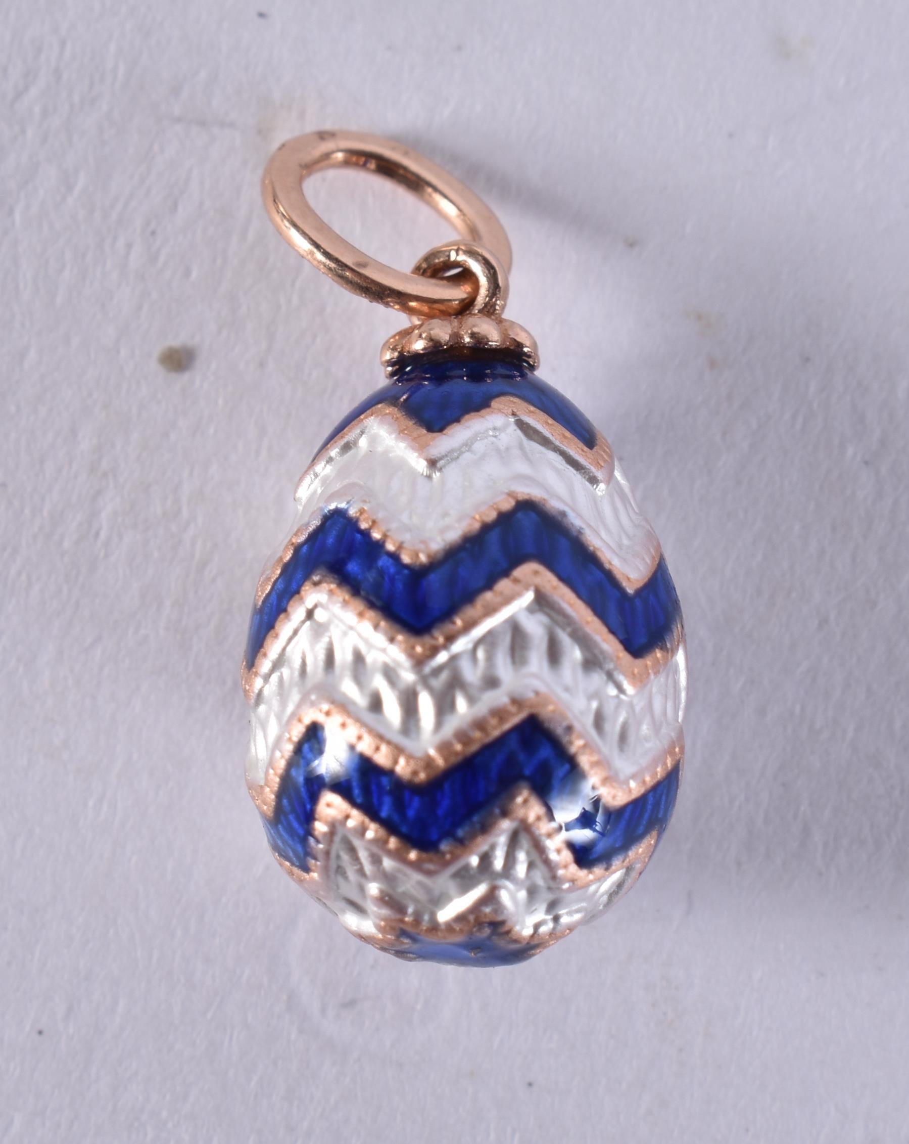 A 14CT GOLD EGG PENDANT. 2.6 grams. 2.25 cm x 1.25 cm.