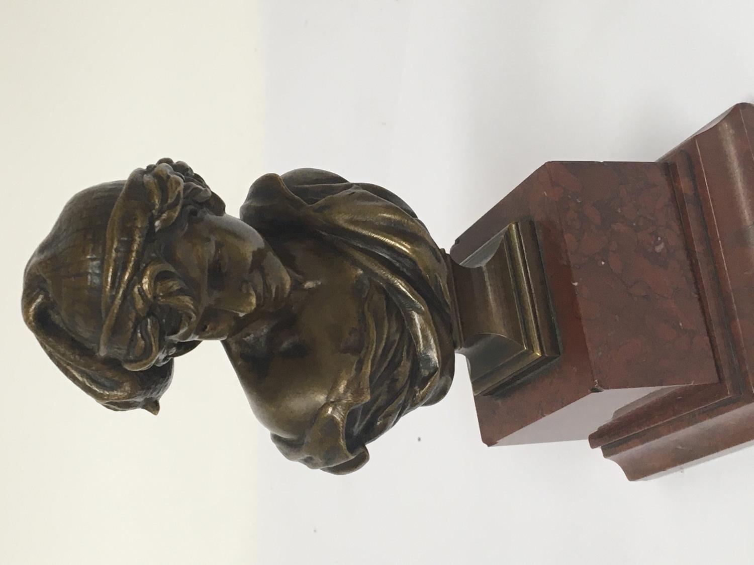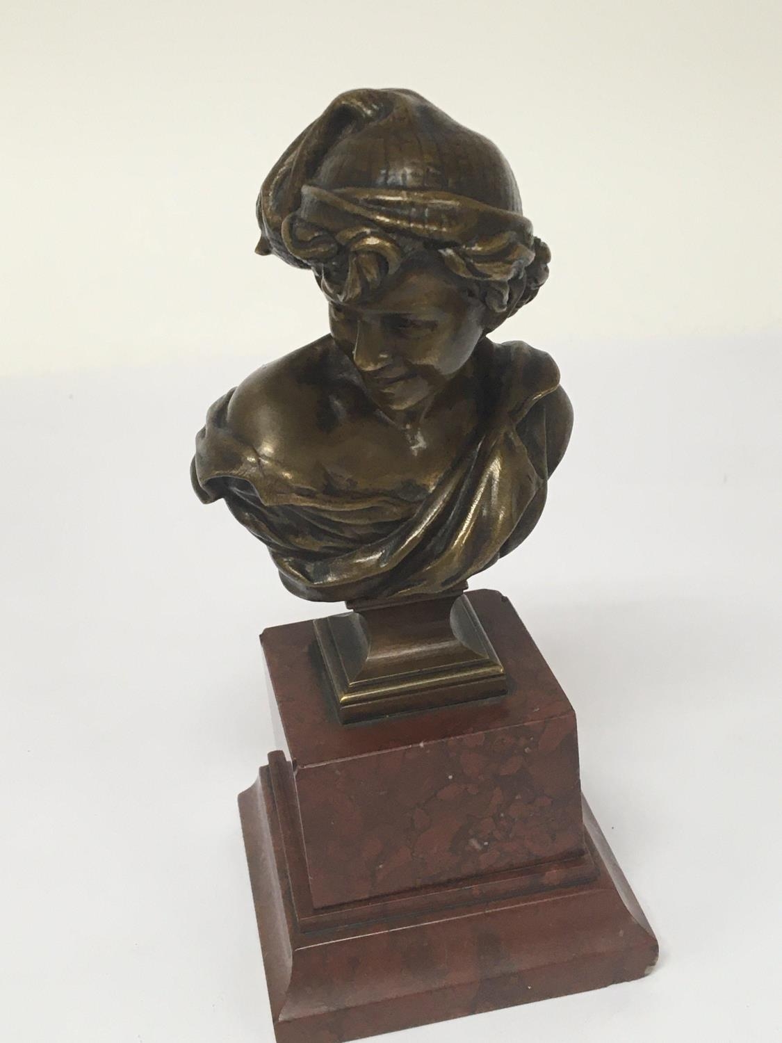 A small French bronze bust mounted on a marble plinth. Height 17cm